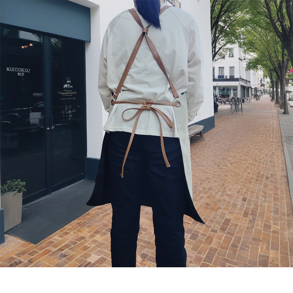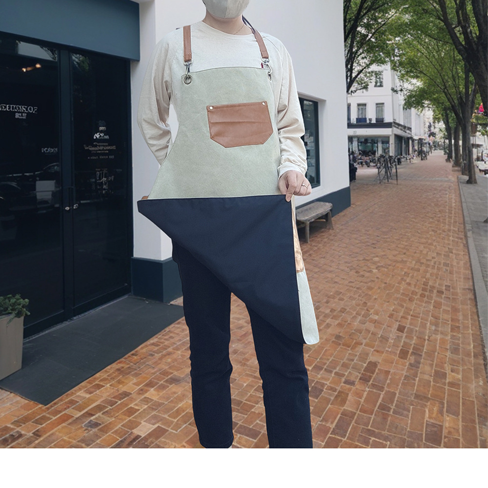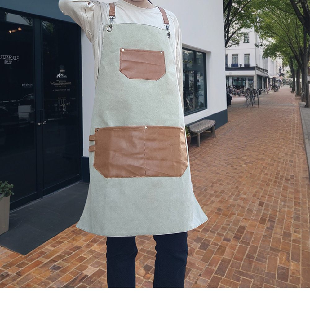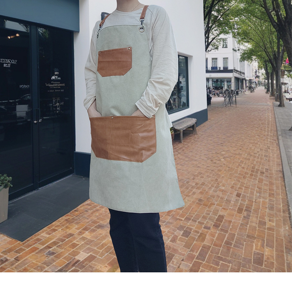 젊은 우유 차 커피 숍 두꺼운 캔버스 다크 브라운 PU 가죽 주머니 인쇄 새로운 우유 차 가게 맞춤 로고스토어 가기