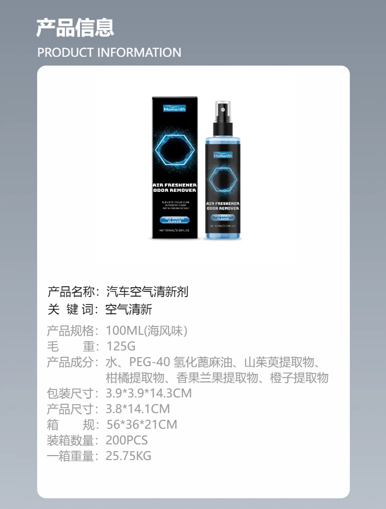 HOMONTH 자동차 공기 청정기 자동차 향수 탈취제 신선한 공기 화장실 탈취제 스프레이 가정용