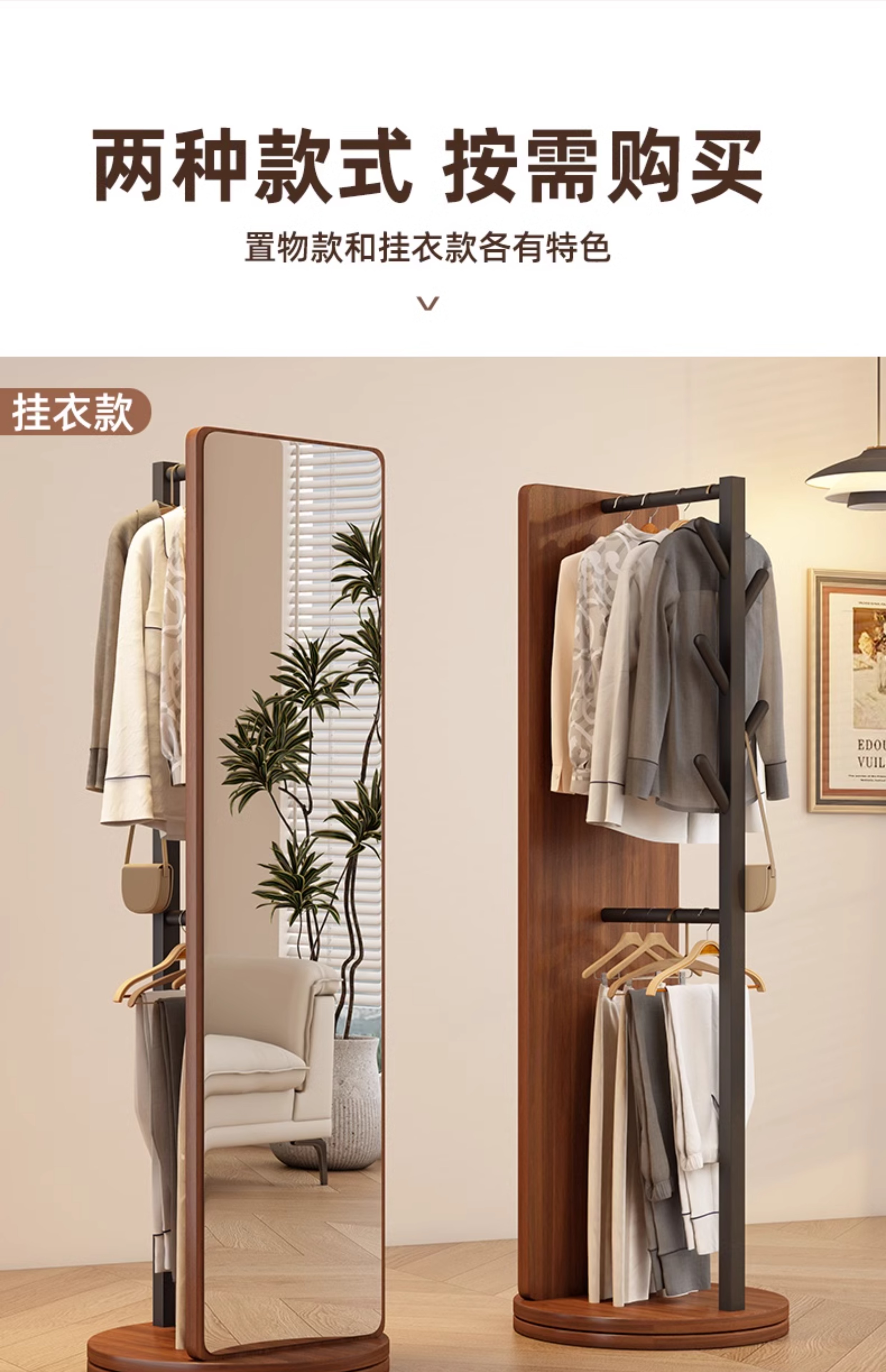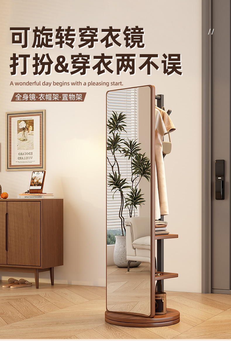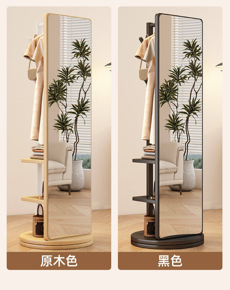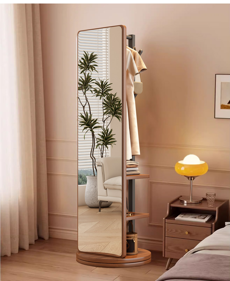 L * 단단한 나무 전체 길이 거울 홈 바닥 거울 침실 걸이 통합 피팅과 회전 가능한 모바일 드레싱 거울