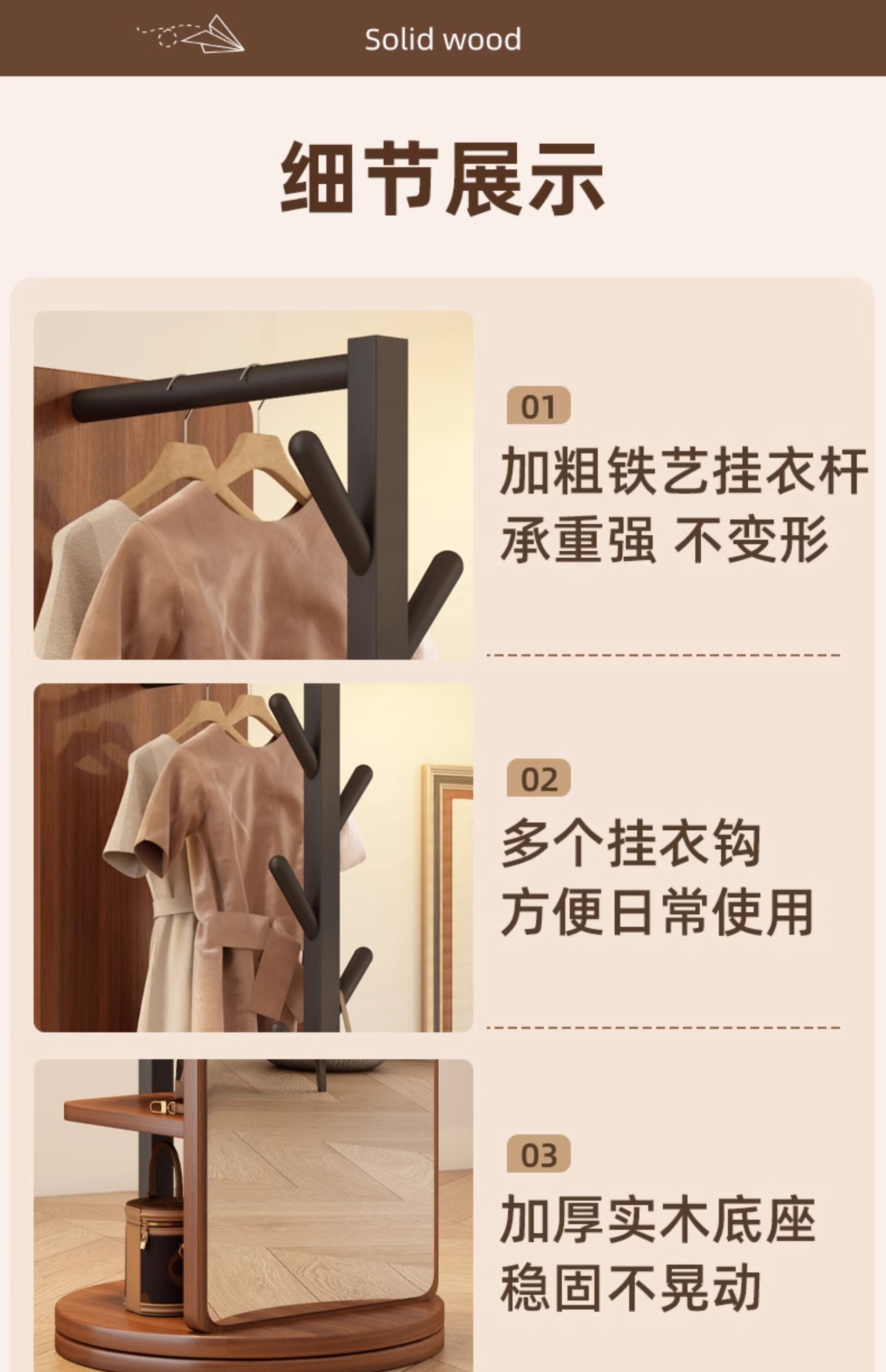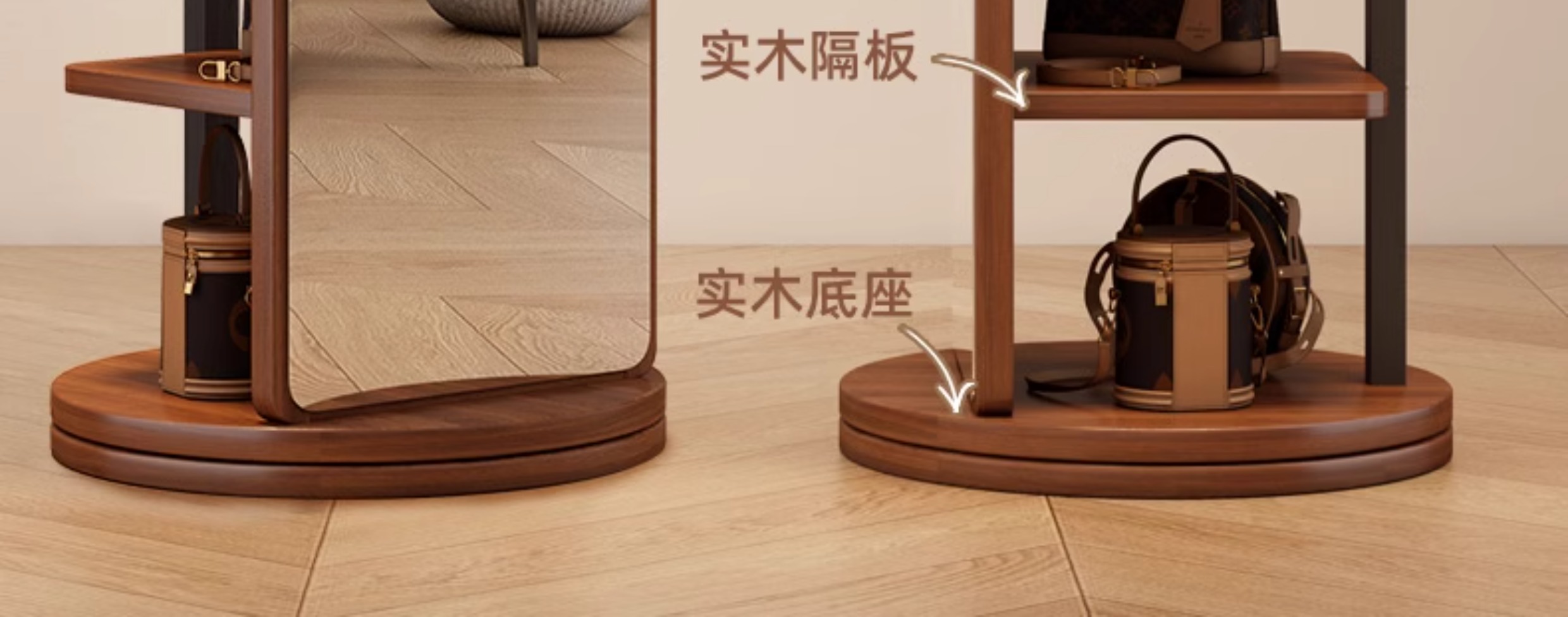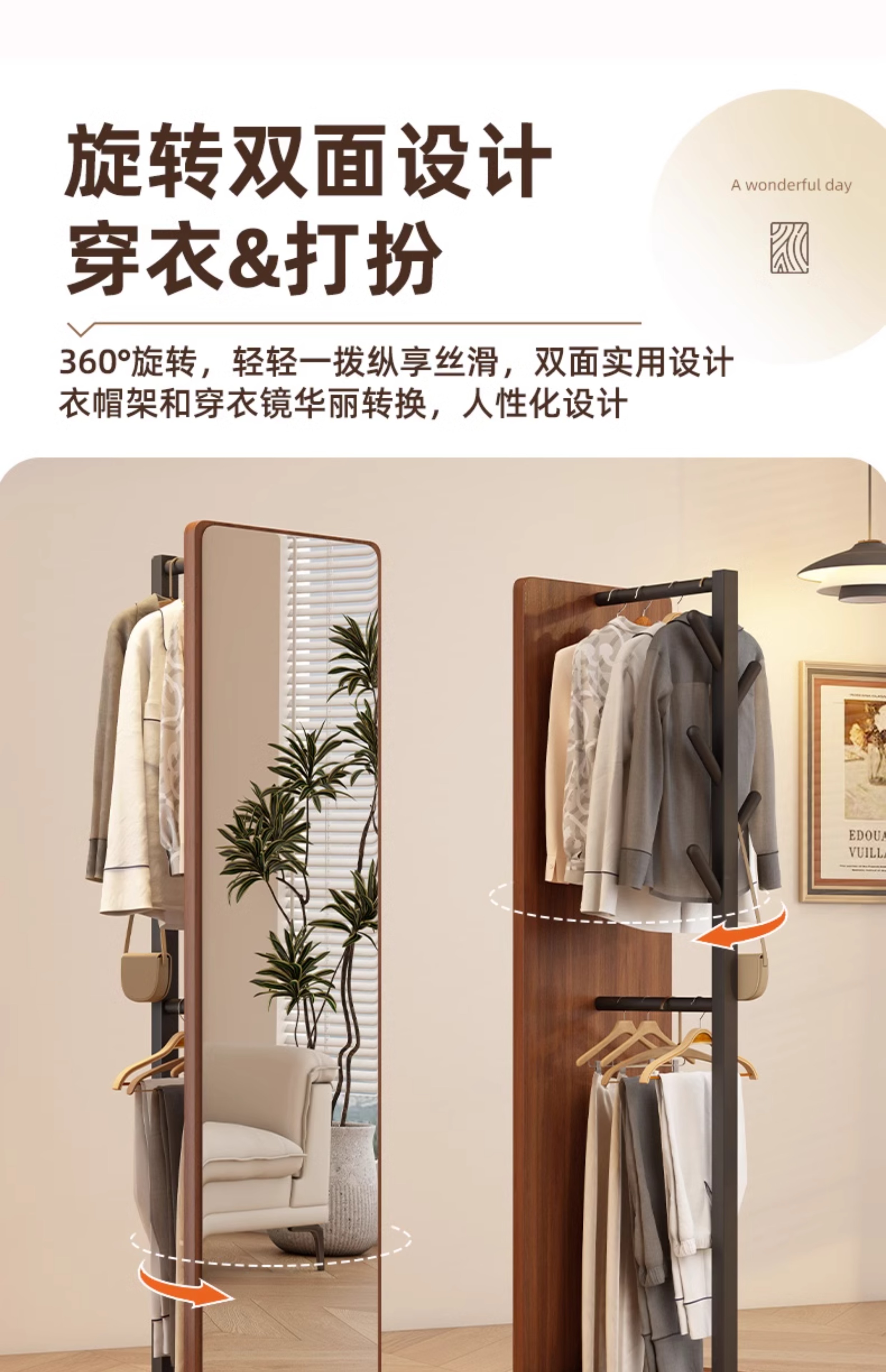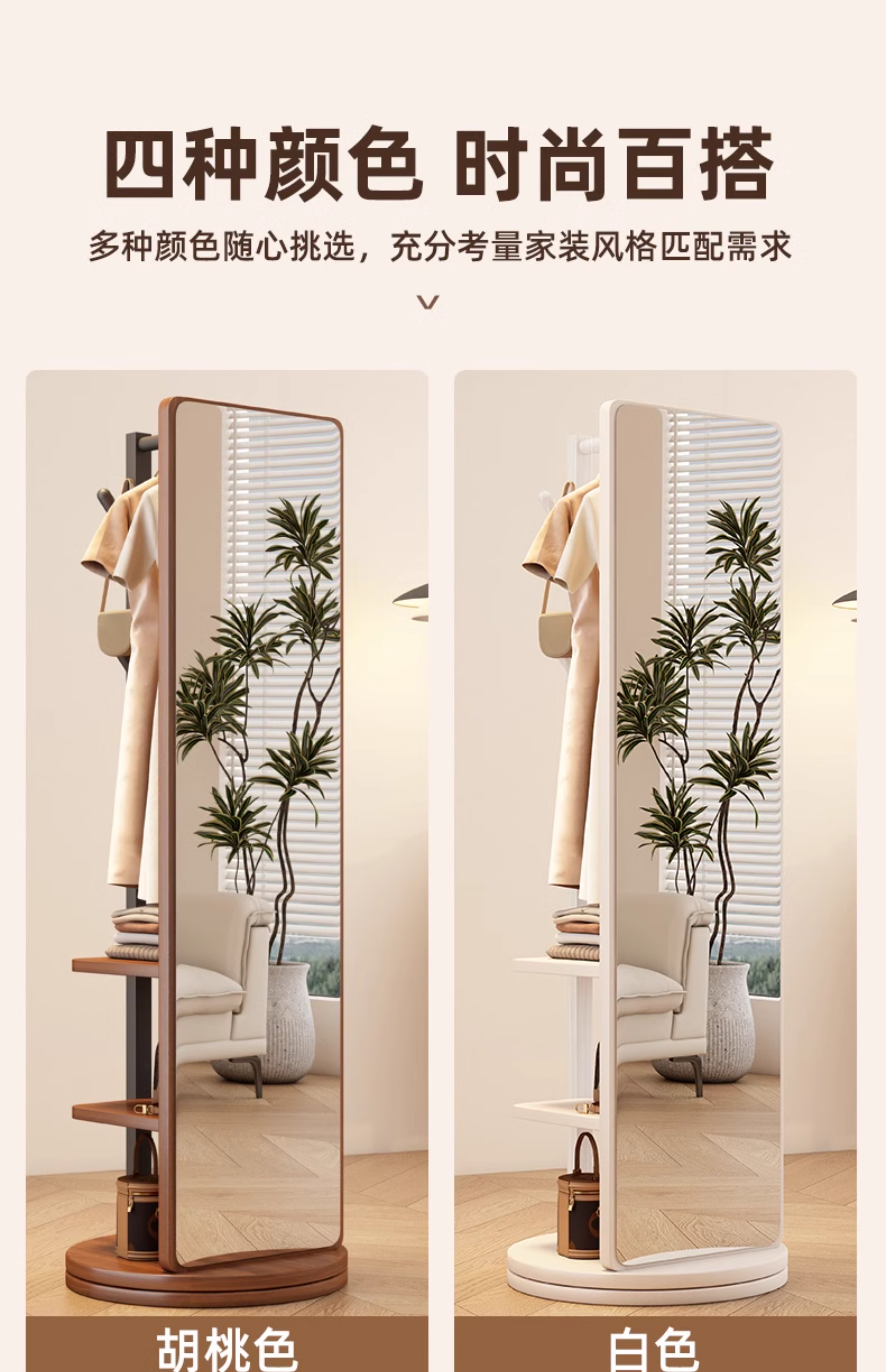 L * 단단한 나무 전체 길이 거울 홈 바닥 거울 침실 걸이 통합 피팅과 회전 가능한 모바일 드레싱 거울