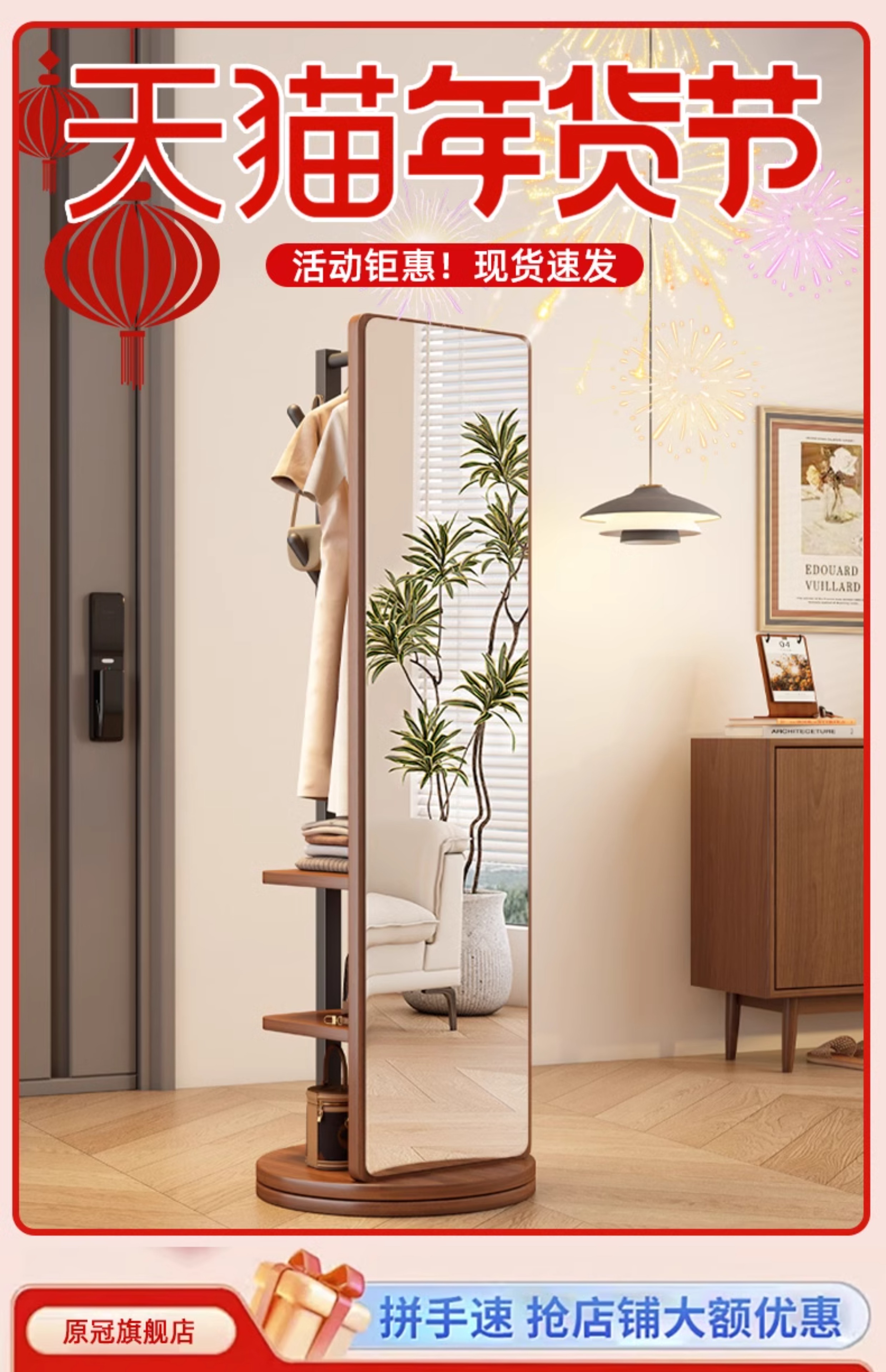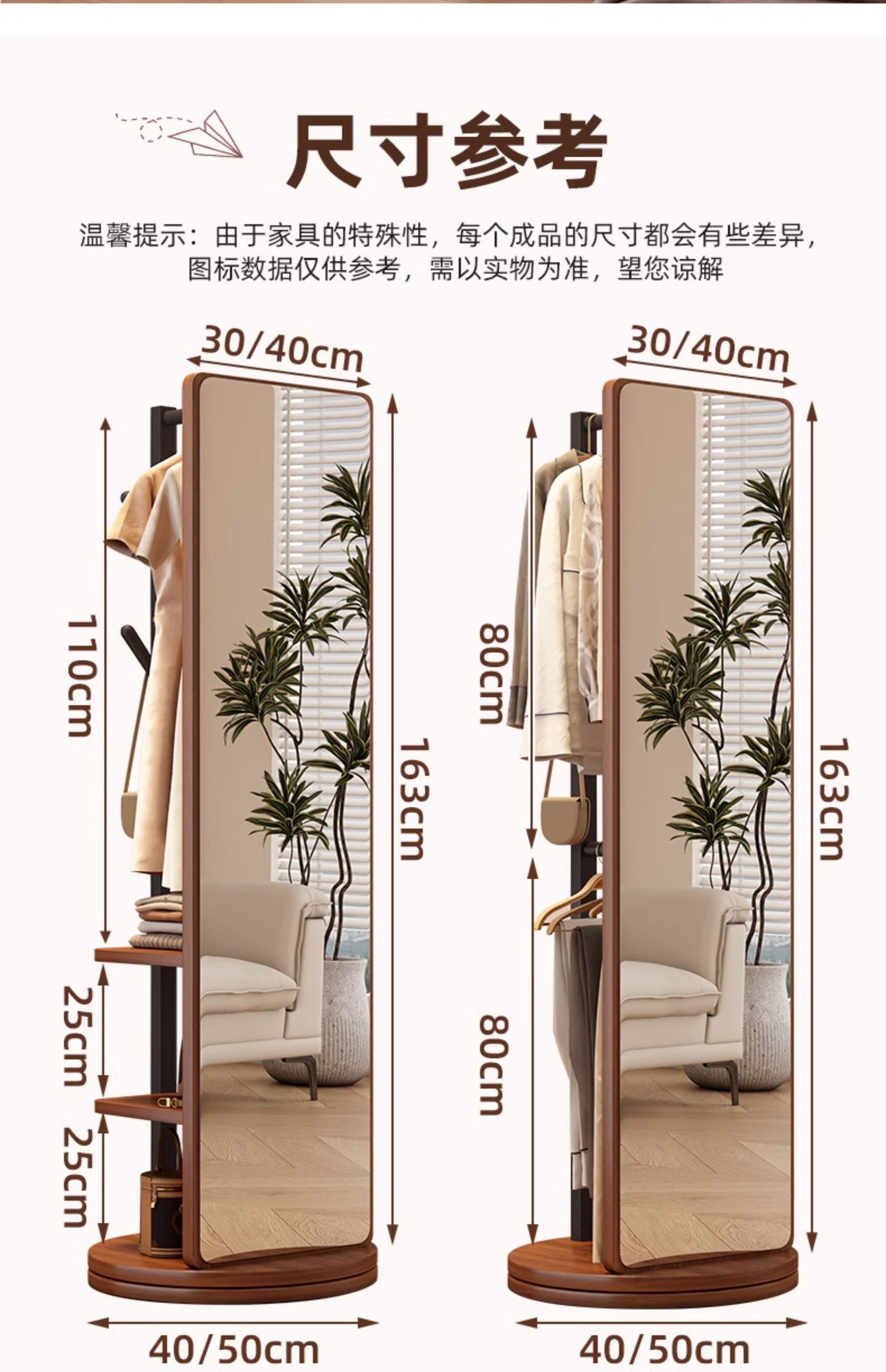 L * 단단한 나무 전체 길이 거울 홈 바닥 거울 침실 걸이 통합 피팅과 회전 가능한 모바일 드레싱 거울스토어 가기