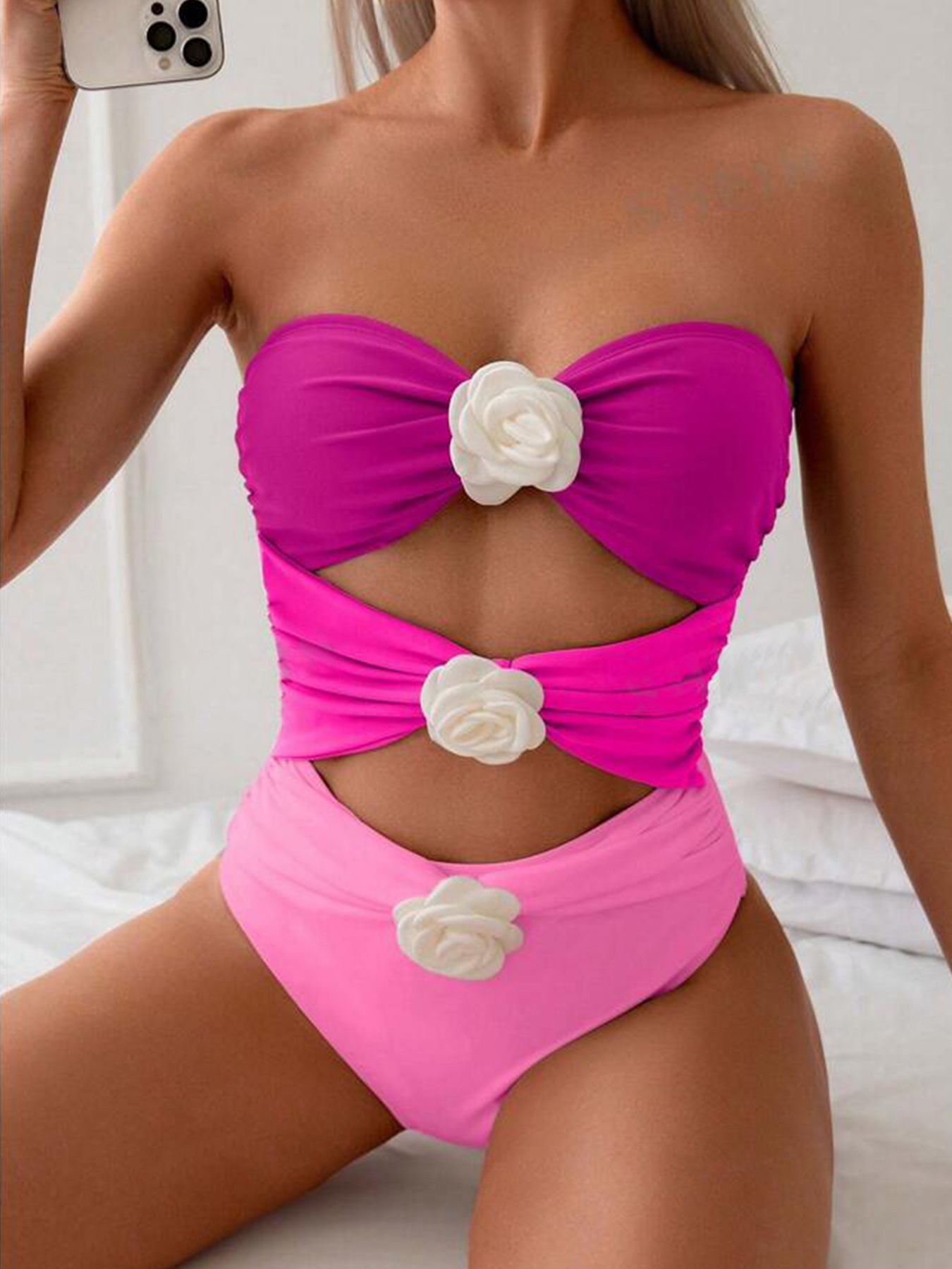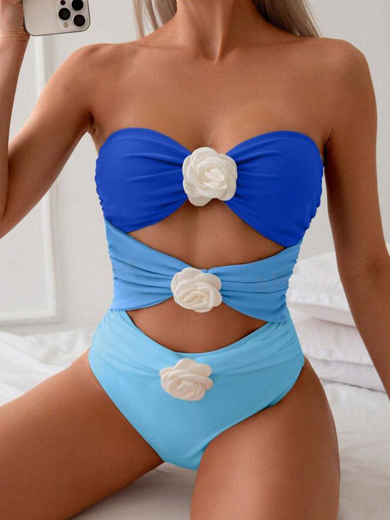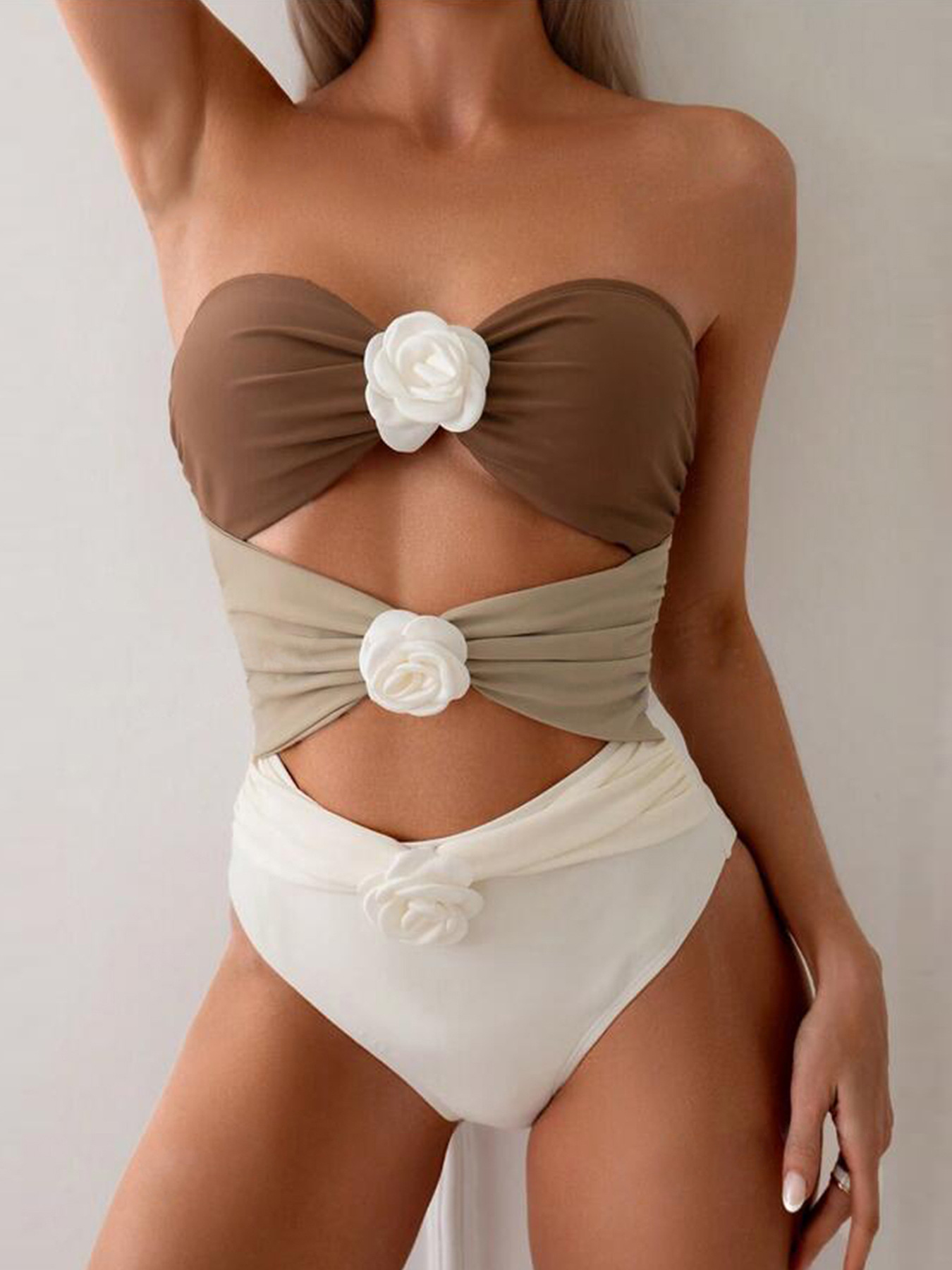 2025 아마존 국경 새로운 유럽과 미국의 컬러 매칭 디자인 패션 섹시한 튜브 모양의 원피스 여성용 수영복