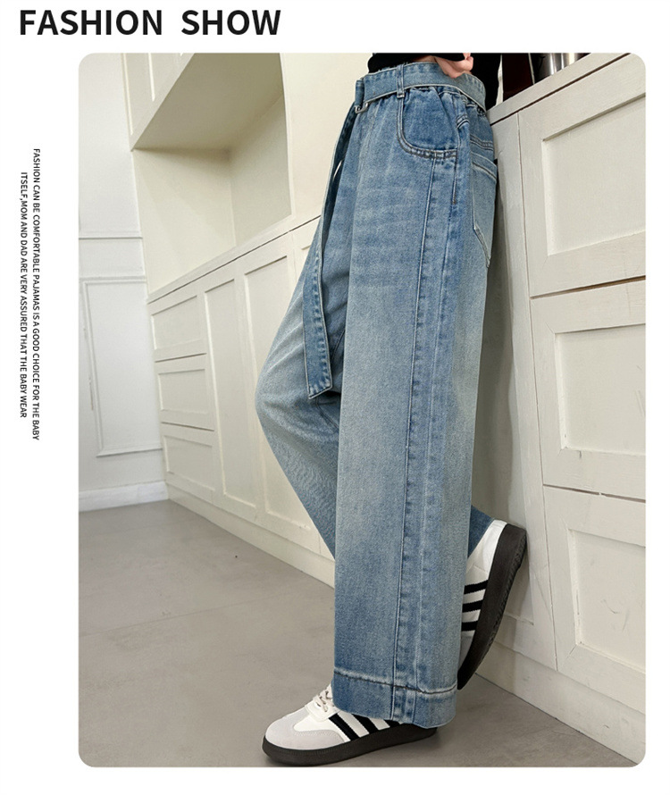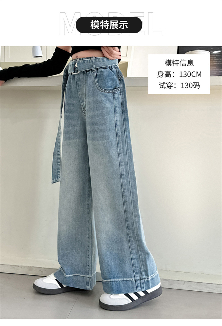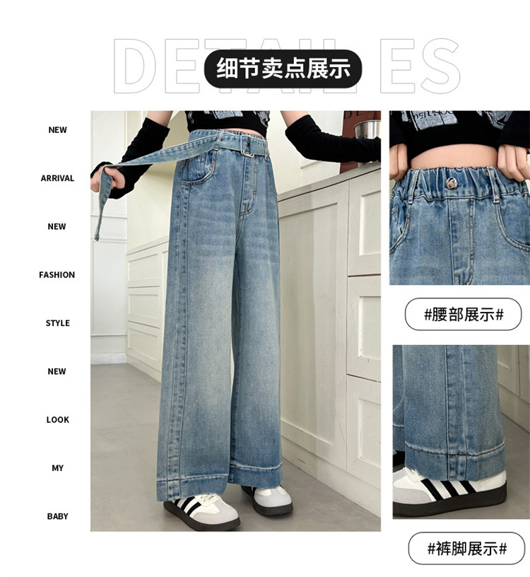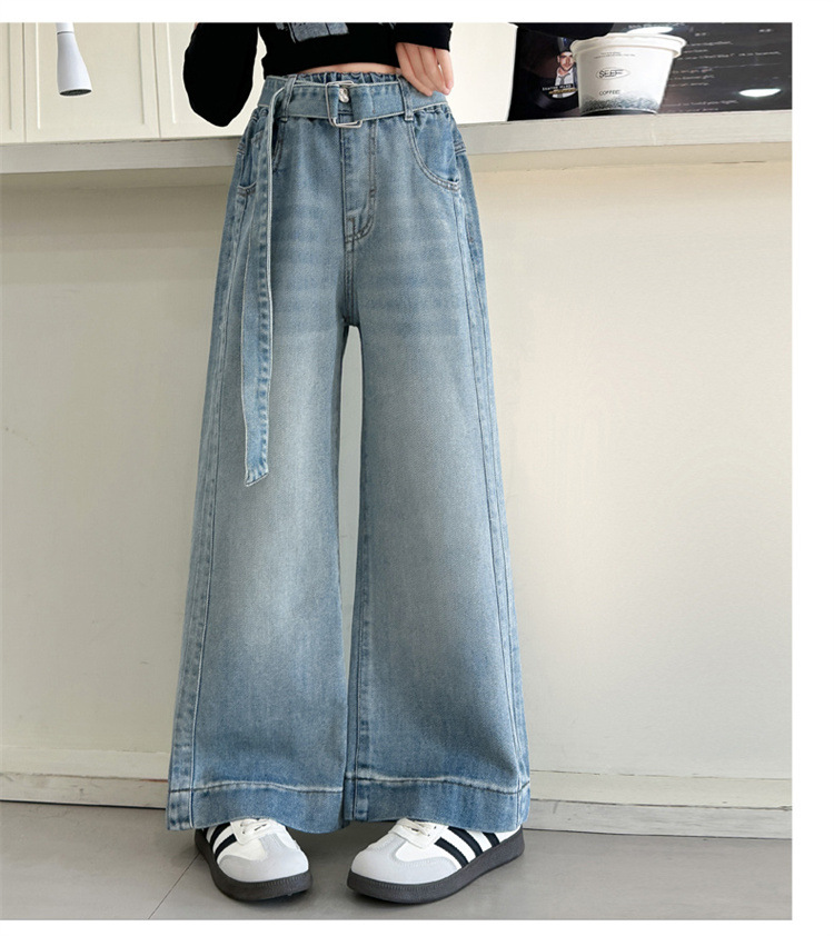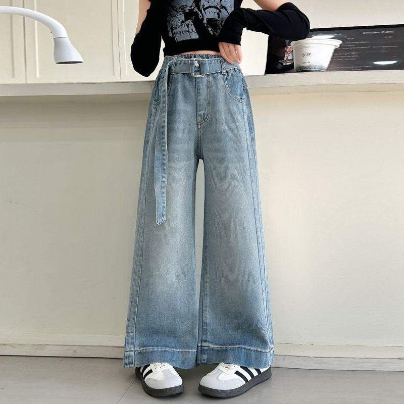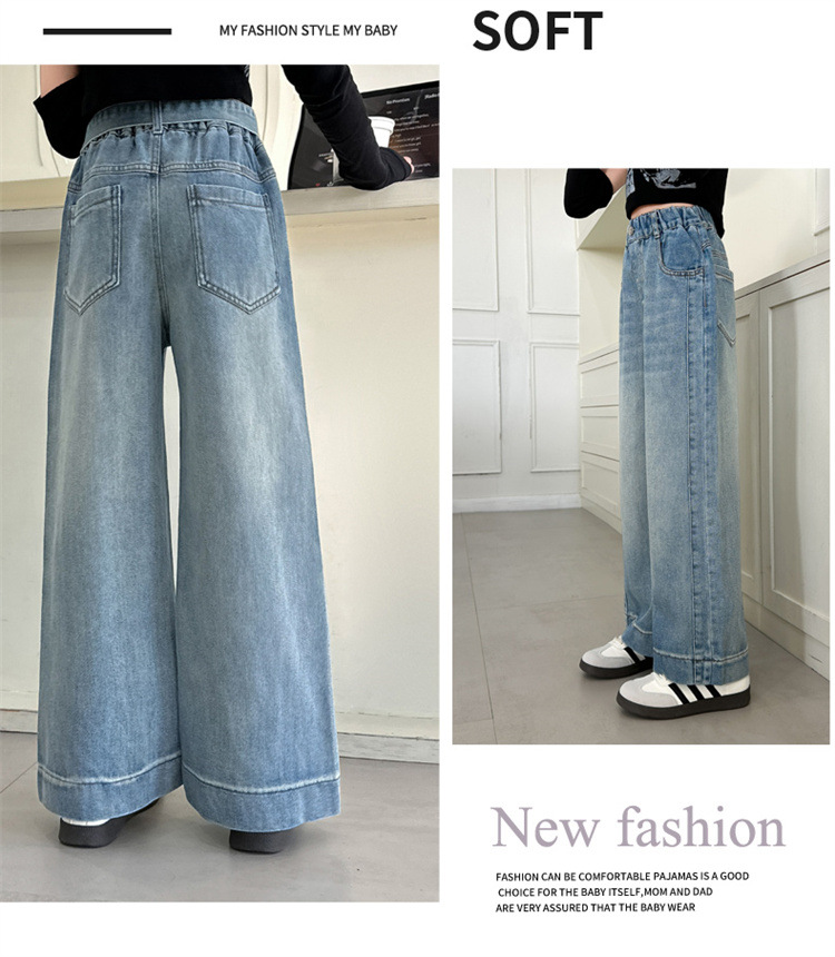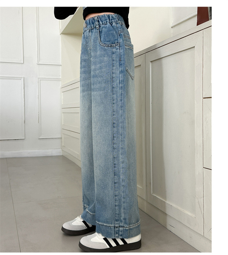 소녀 넓은 다리 청바지 봄과 가을 2025 새로운 어린이 봄 캐주얼 스트레이트 바지 소녀 느슨한 바지스토어 가기