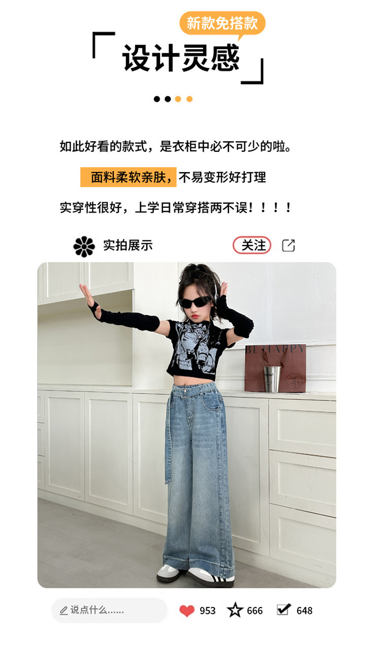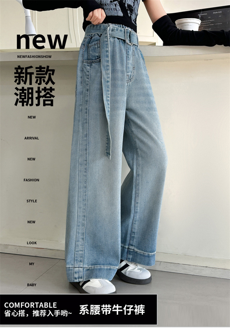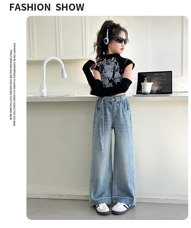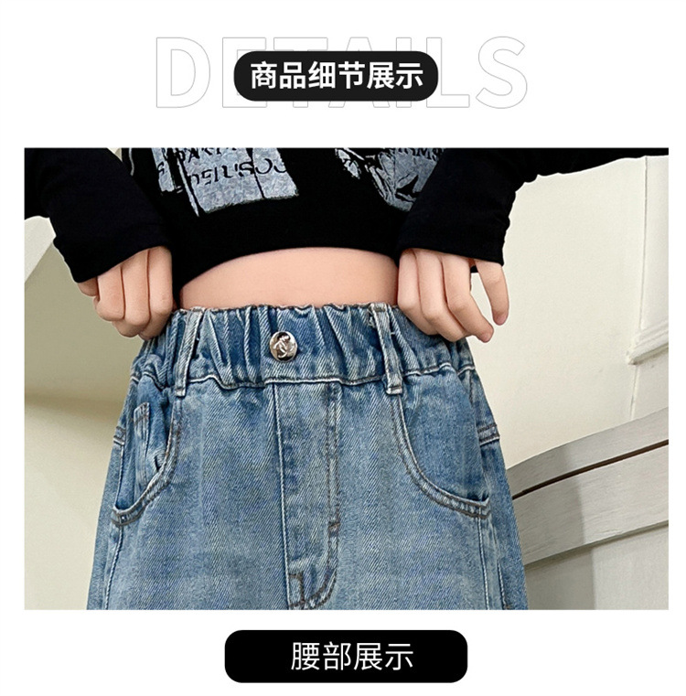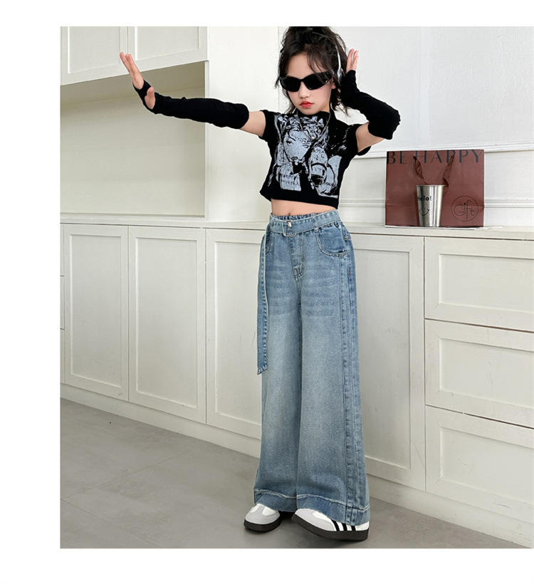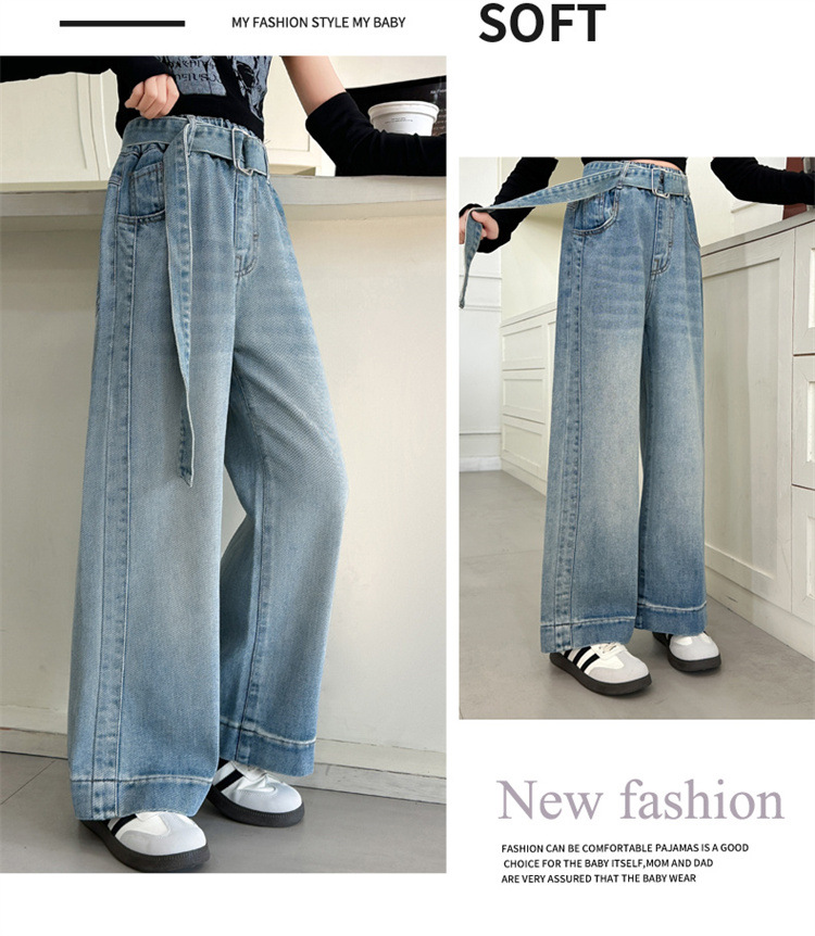 소녀 넓은 다리 청바지 봄과 가을 2025 새로운 어린이 봄 캐주얼 스트레이트 바지 소녀 느슨한 바지스토어 가기