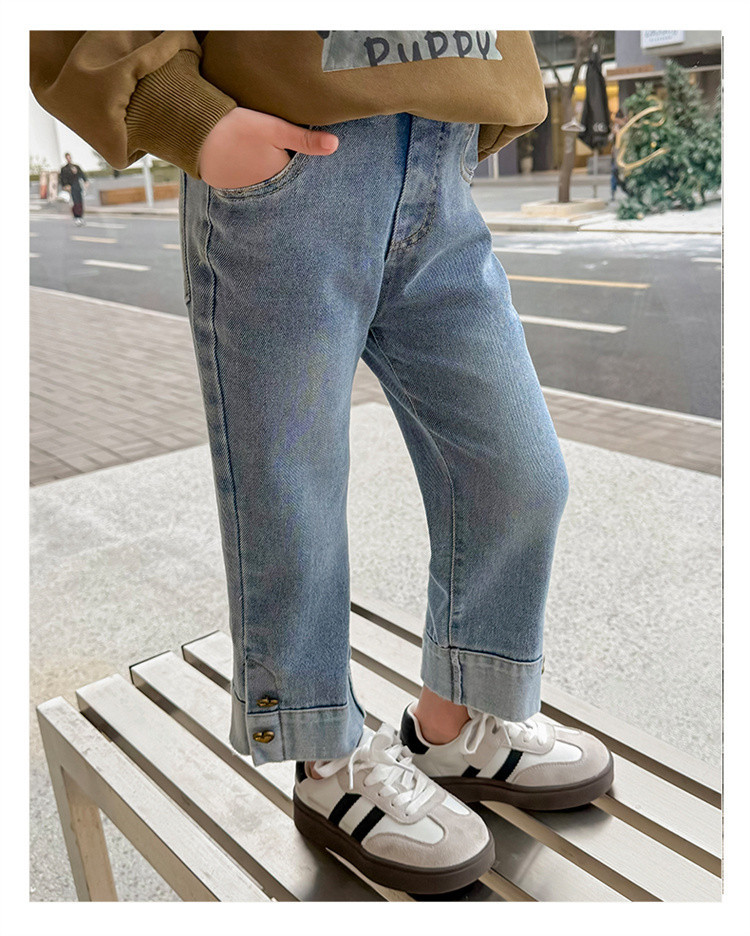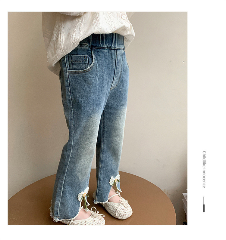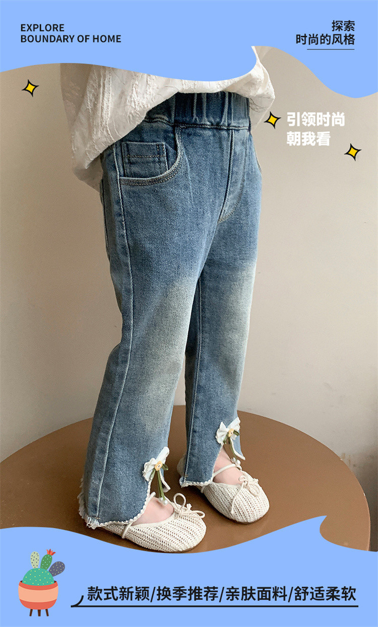소녀 청바지 2025 어린이 서양식 봄 활 레이스 소녀의 봄과 가을 바지스토어 가기