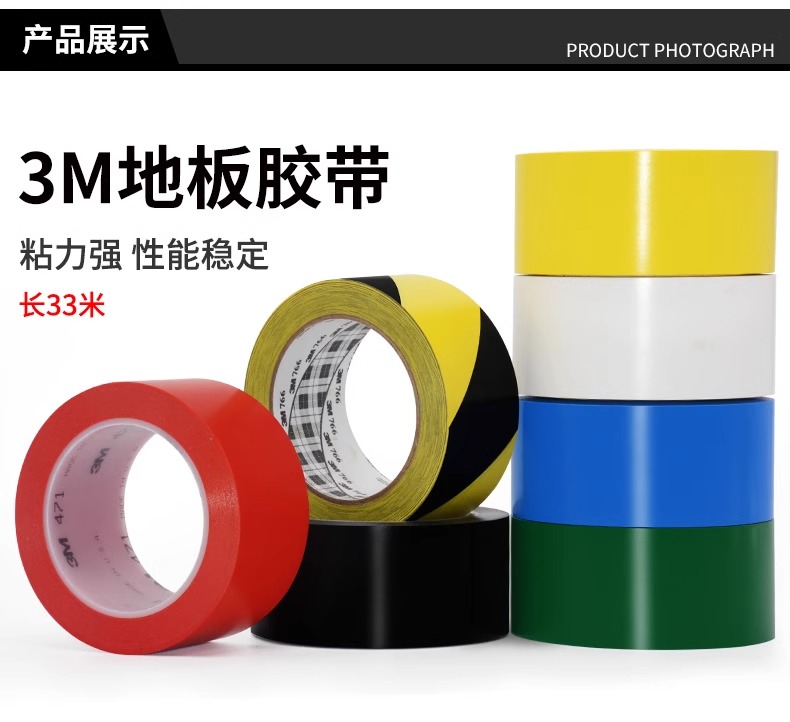 3M766 노란색과 검은 색 경고 테이프가 두껍게 끈적 끈적한 지상 경고 테이프 방수 내마모성 랜드 마크 로고 파티션 pvc 테이프스토어 가기