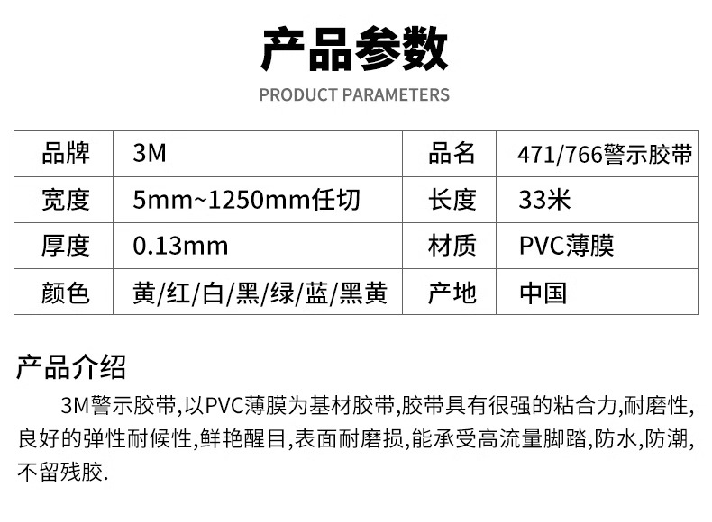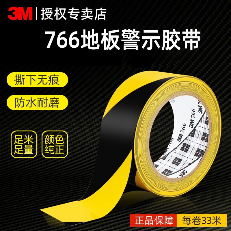 3M766 노란색과 검은 색 경고 테이프가 두껍게 끈적 끈적한 지상 경고 테이프 방수 내마모성 랜드 마크 로고 파티션 pvc 테이프