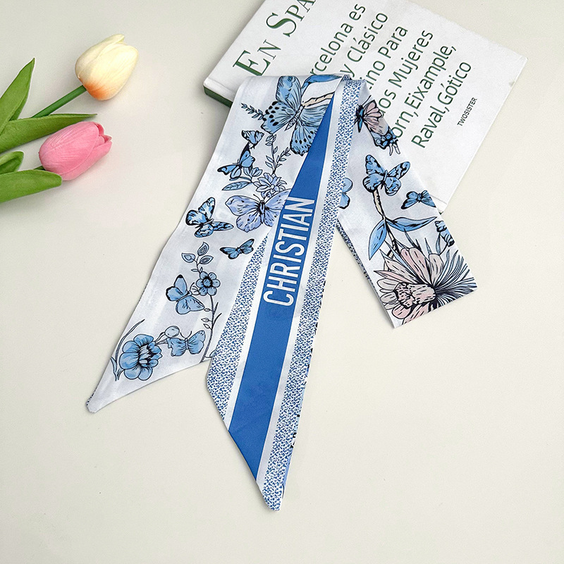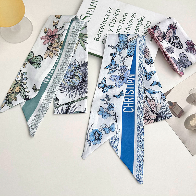 봄과 여름 새로운 프랑스 스타일 나비 스카프 고급 꽃 머리 넥타이 가방 리본 여성을위한 우아한 올 매치 장식 스카프