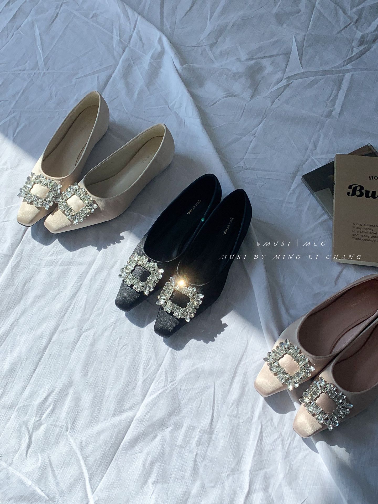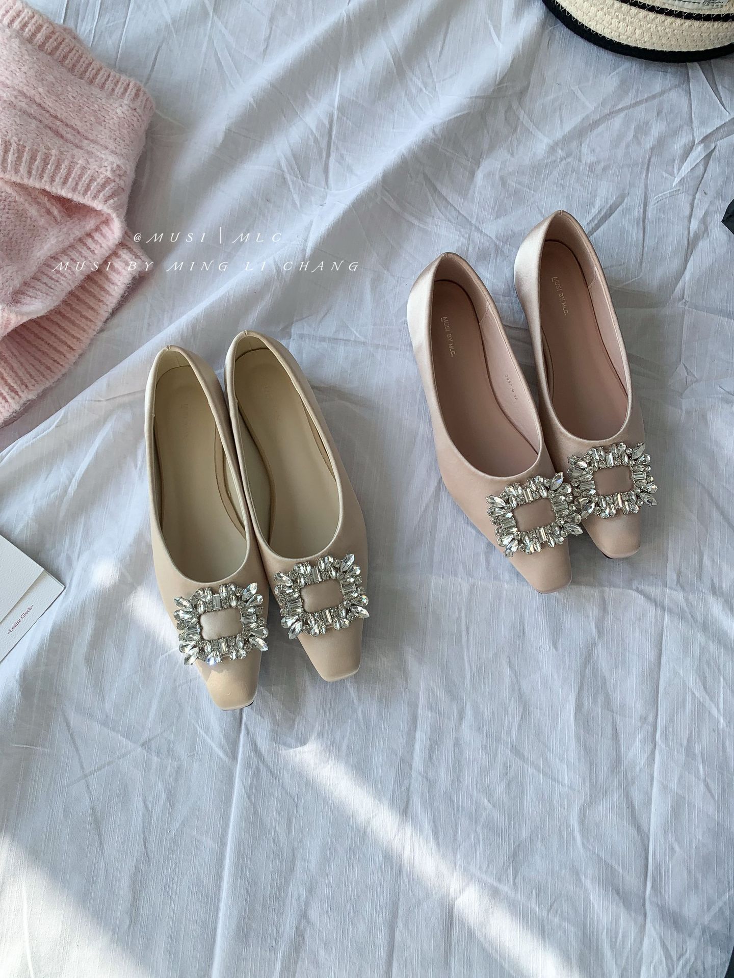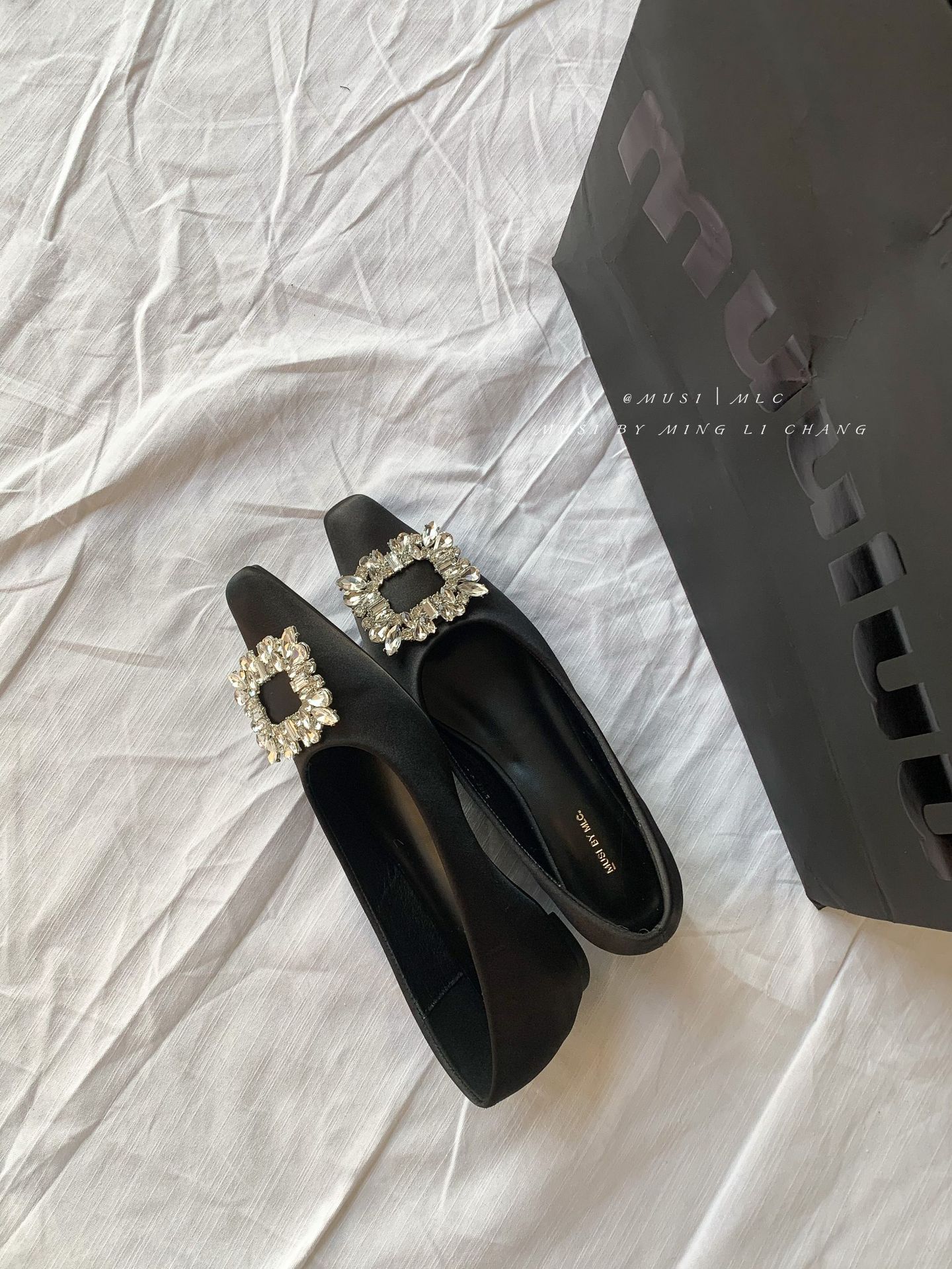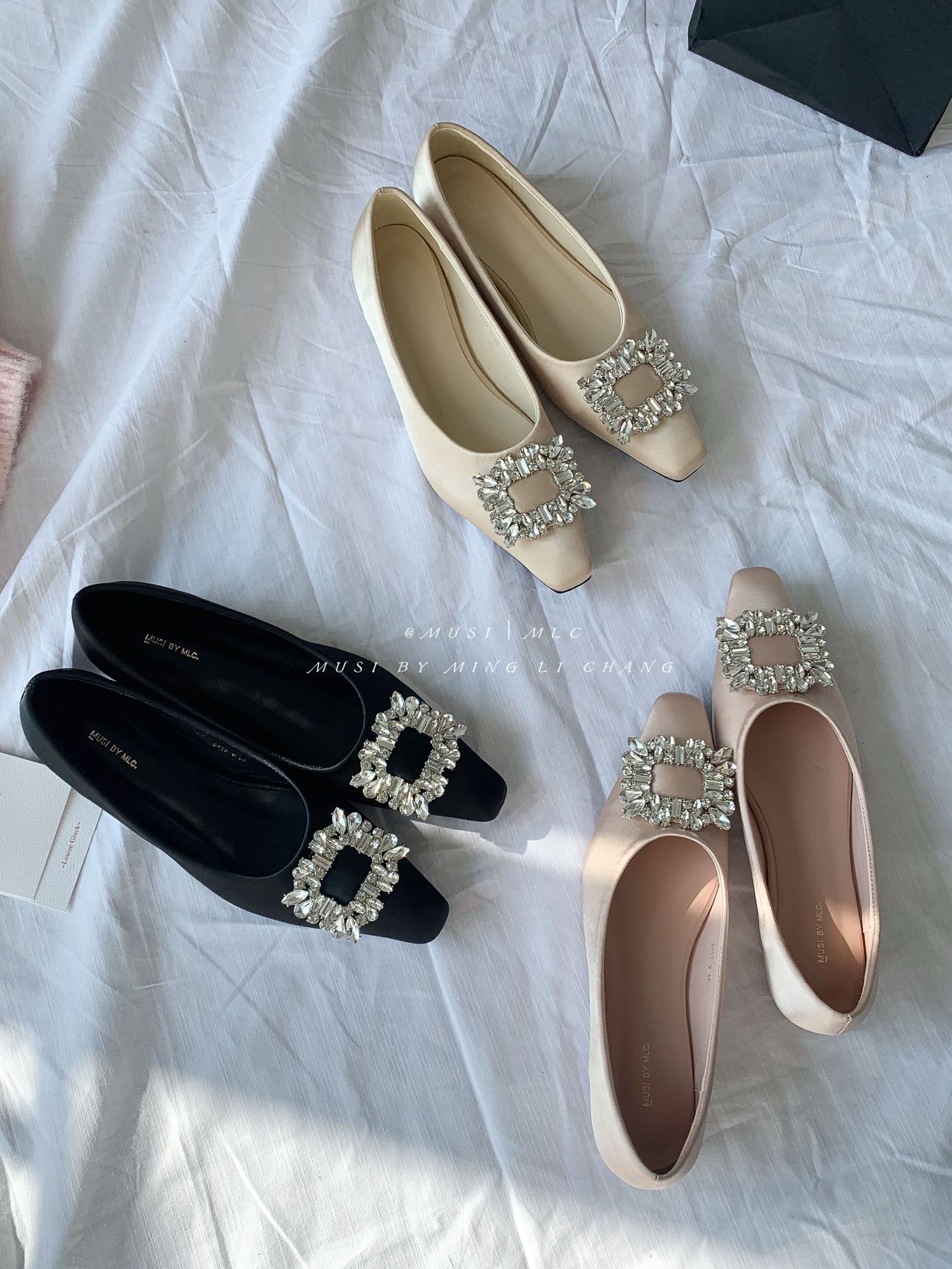 2025 봄과 가을 새로운 통근 올 매치 싱글 슈즈 라인 스톤 스퀘어 버클 얕은 입 플랫 슈즈 슬립 온 여성용 프렌치 레이디 슈즈스토어 가기
