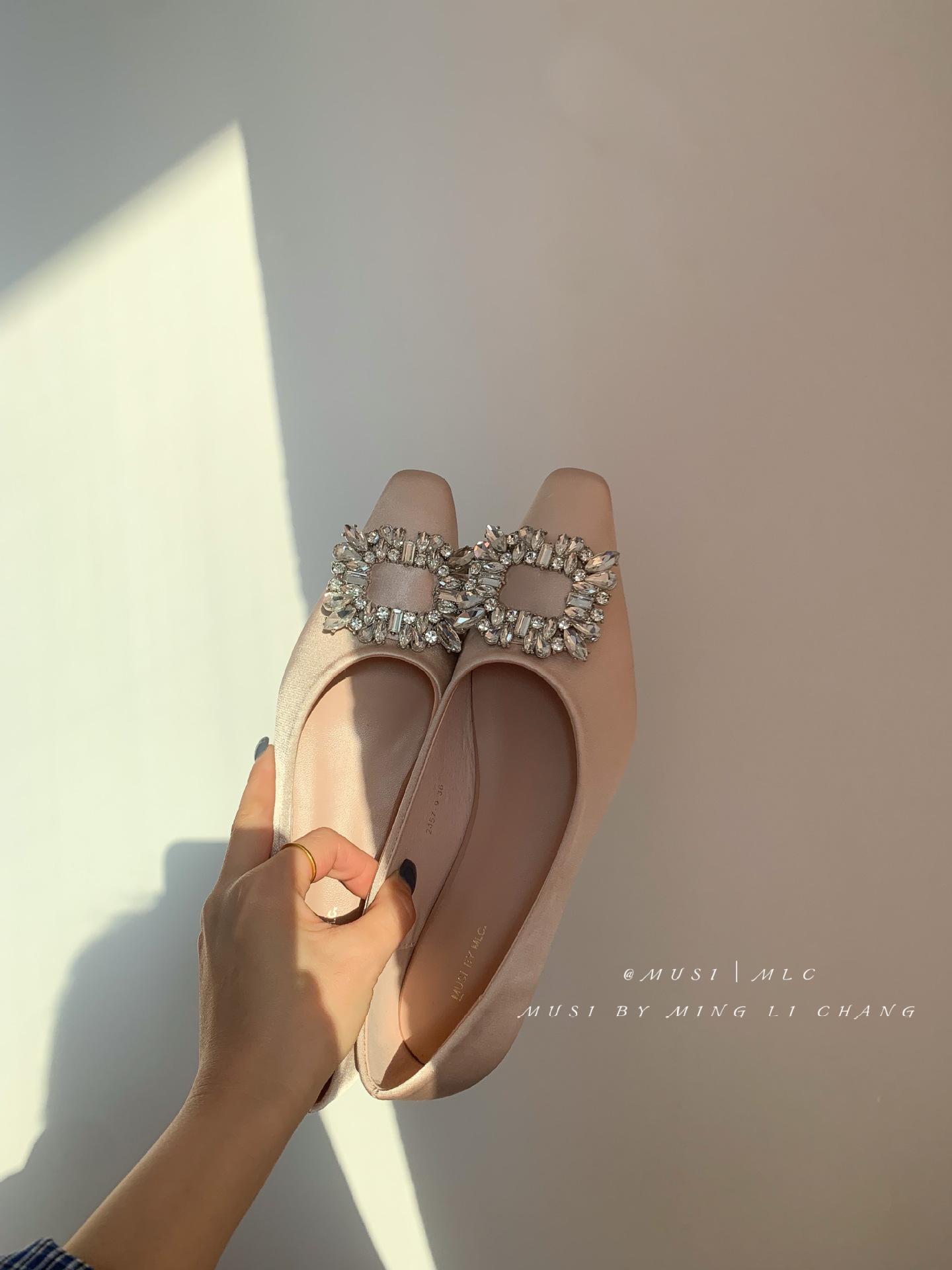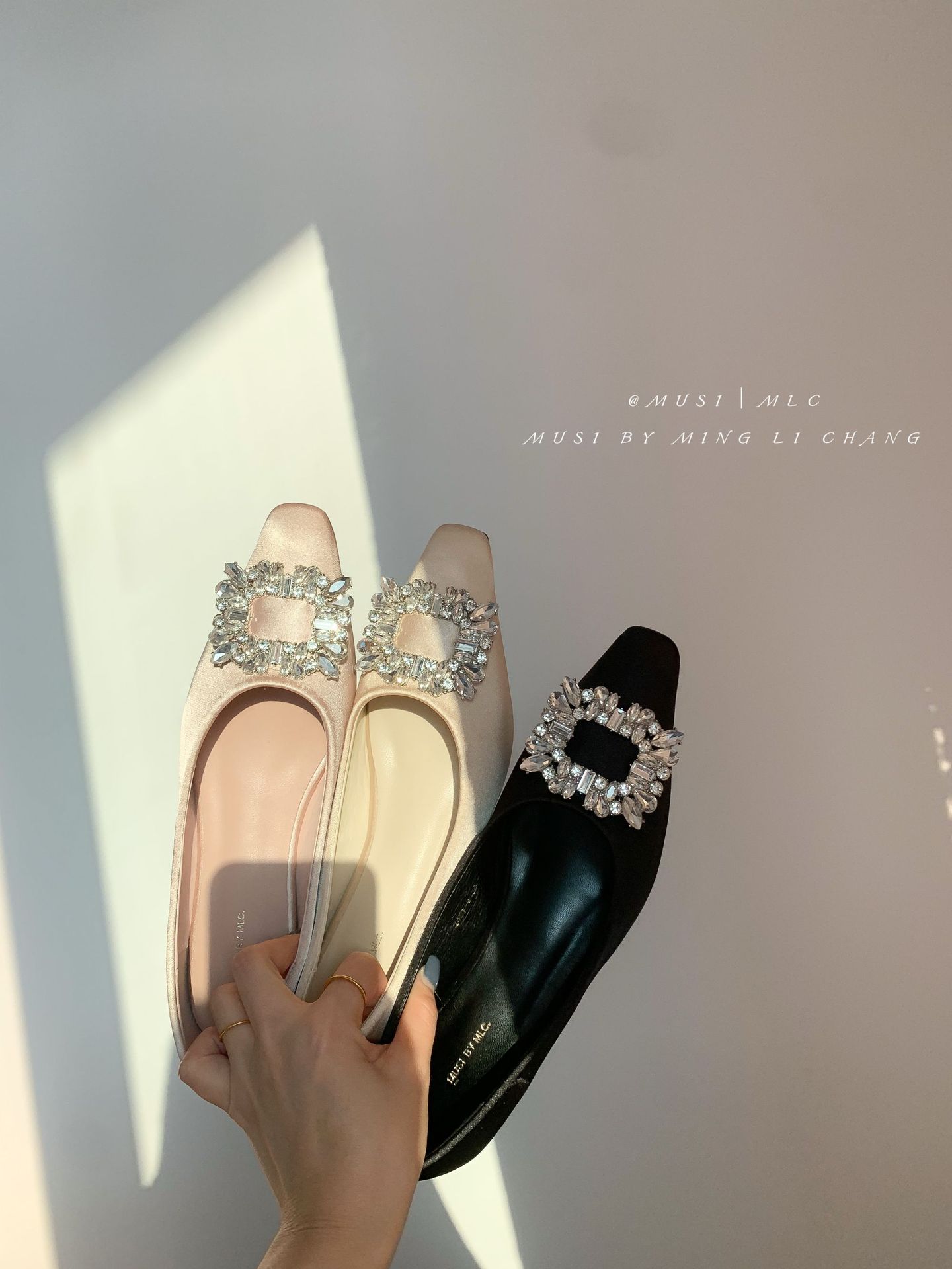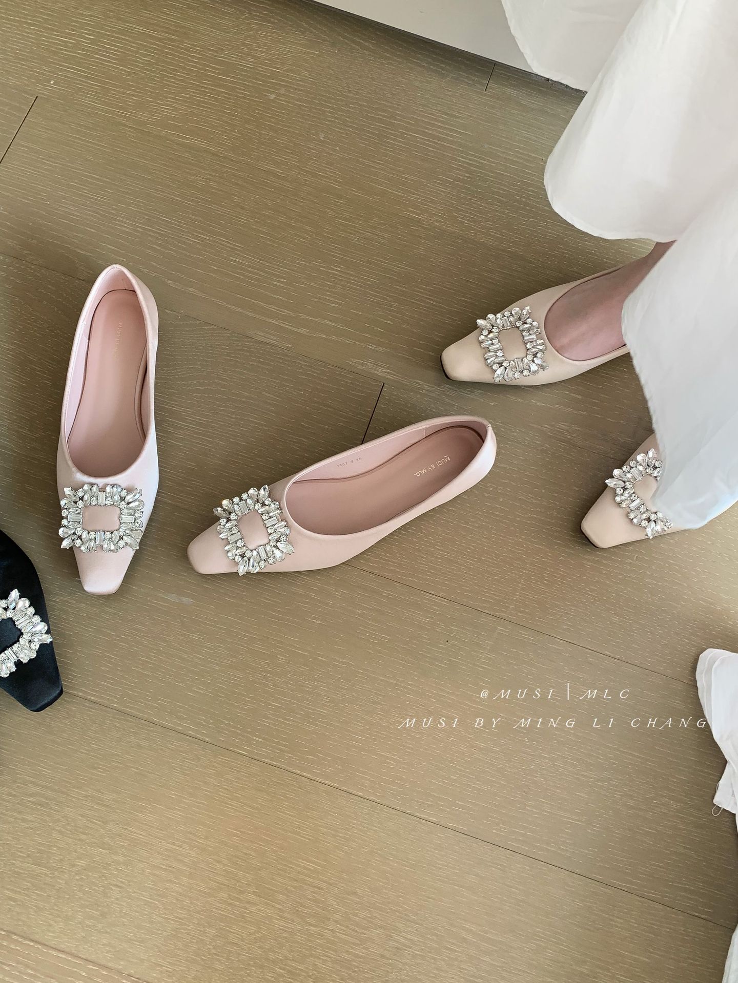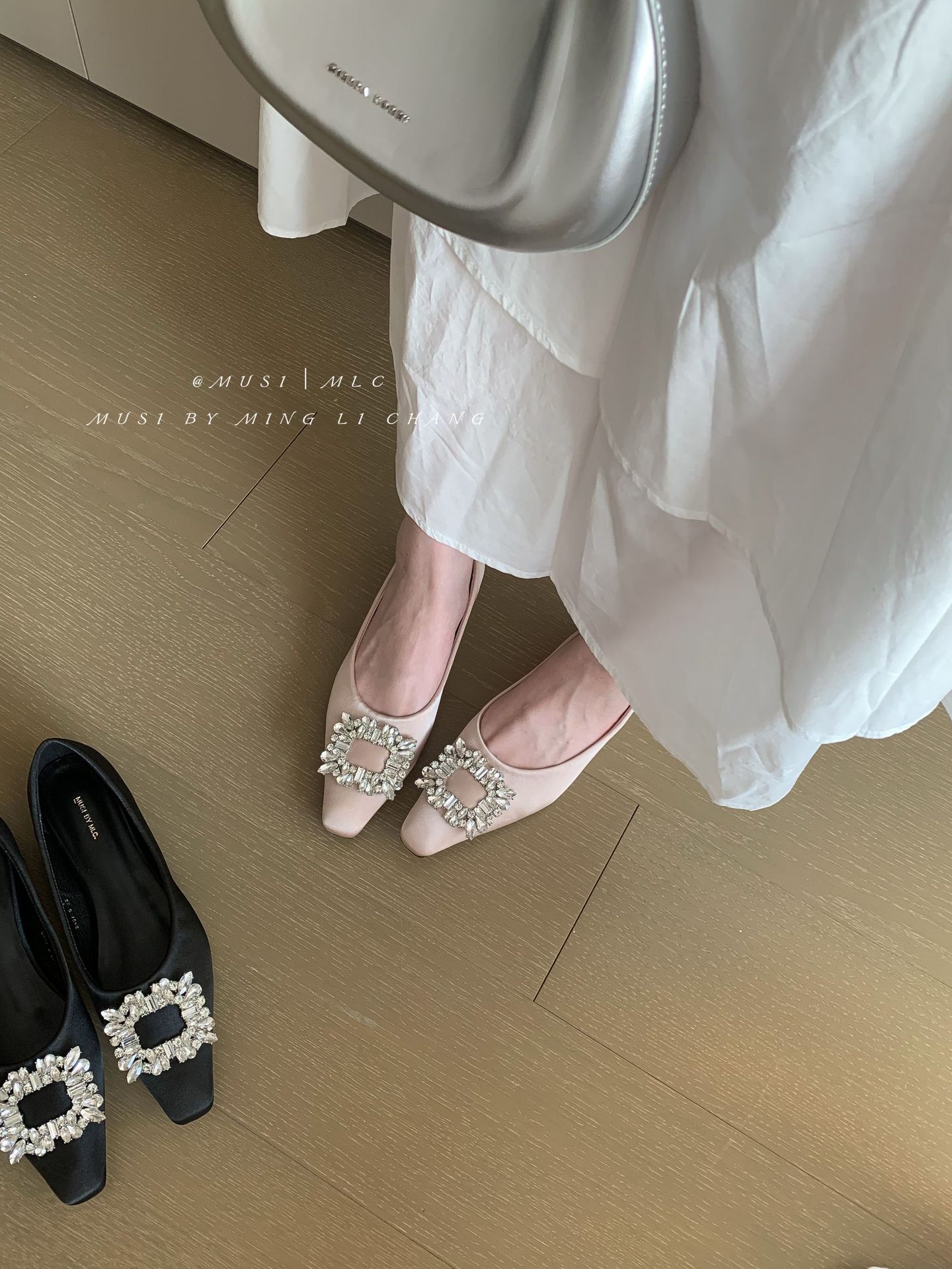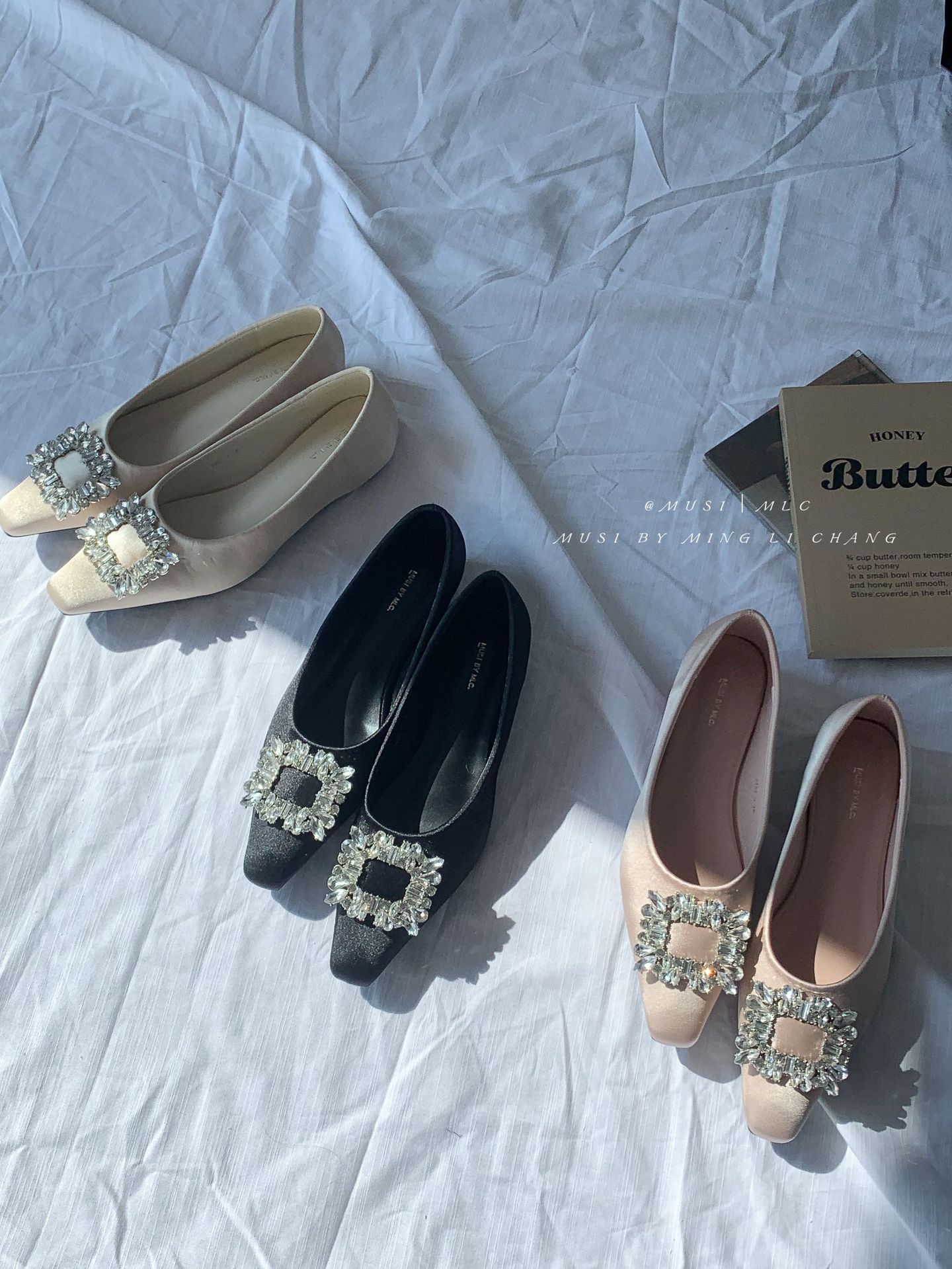 2025 봄과 가을 새로운 통근 올 매치 싱글 슈즈 라인 스톤 스퀘어 버클 얕은 입 플랫 슈즈 슬립 온 여성용 프렌치 레이디 슈즈스토어 가기