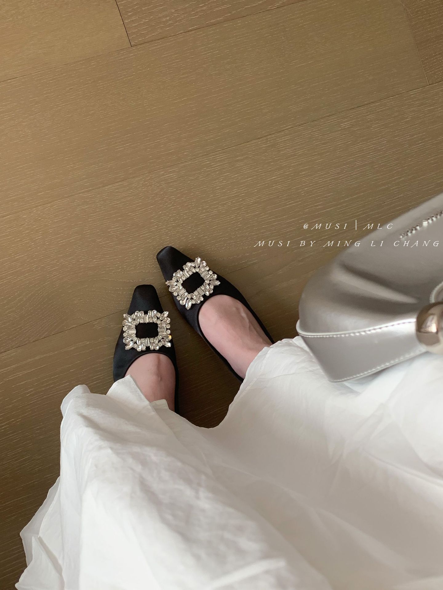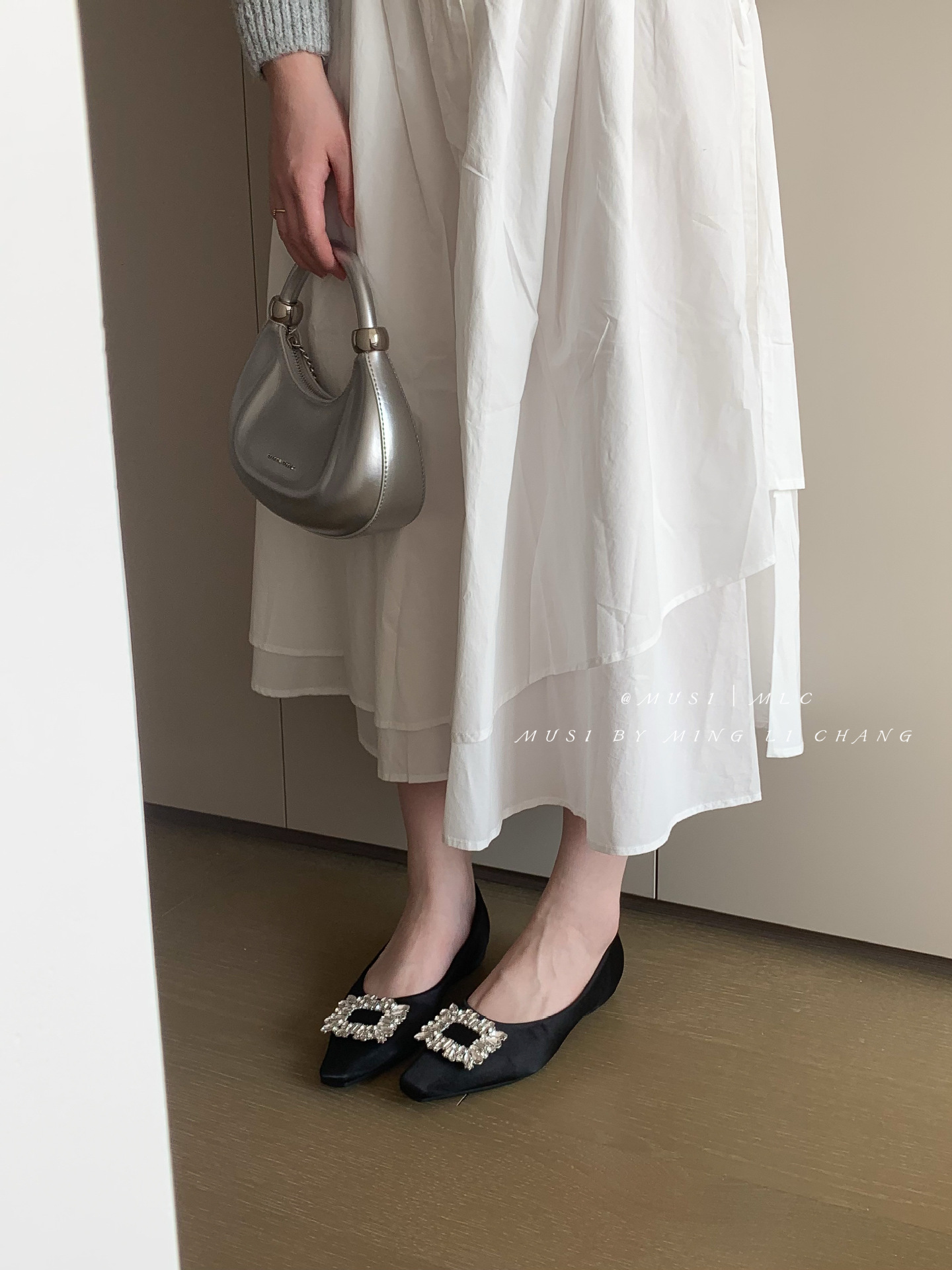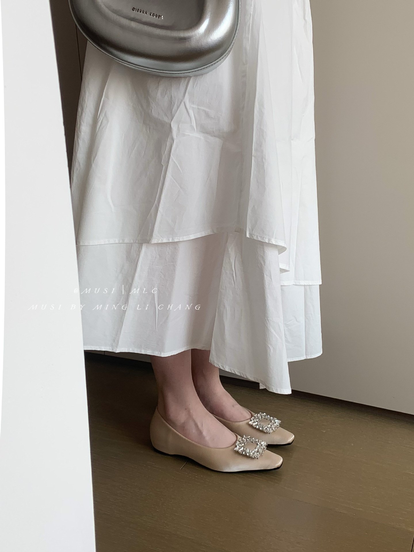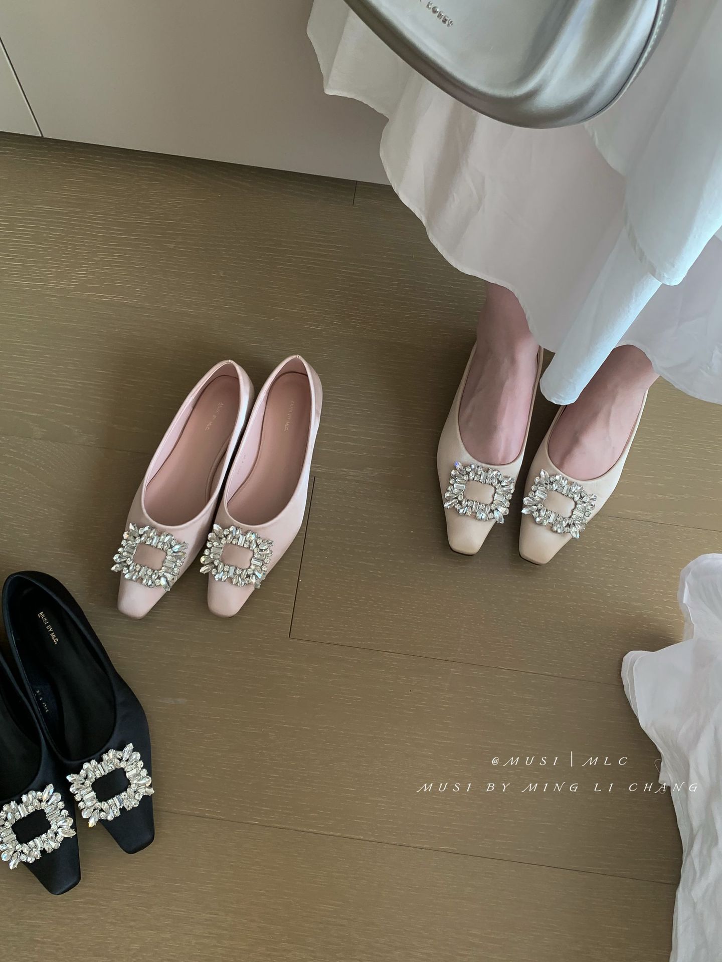 2025 봄과 가을 새로운 통근 올 매치 싱글 슈즈 라인 스톤 스퀘어 버클 얕은 입 플랫 슈즈 슬립 온 여성용 프렌치 레이디 슈즈스토어 가기