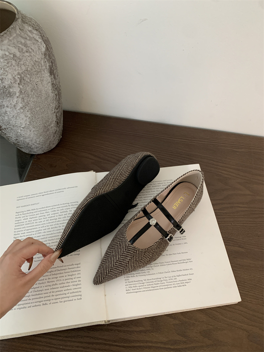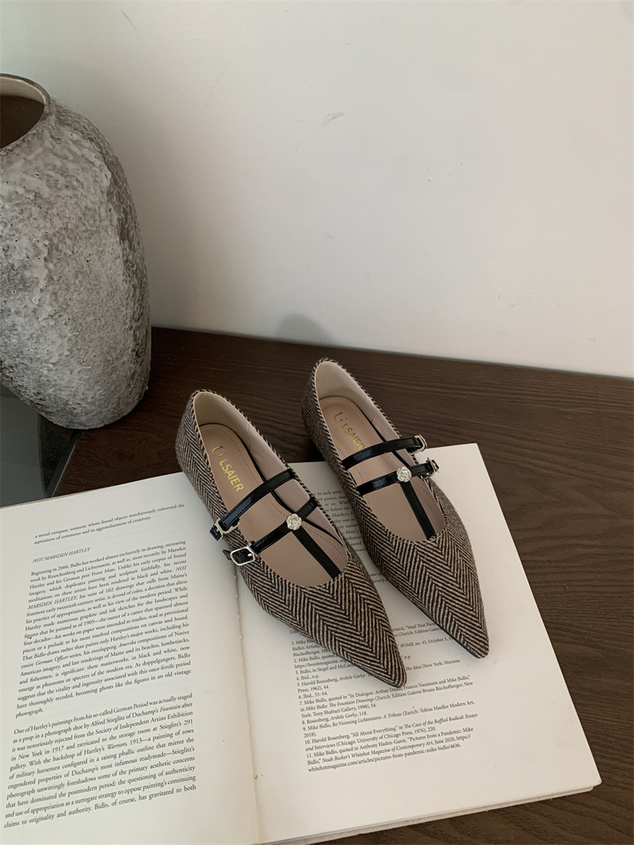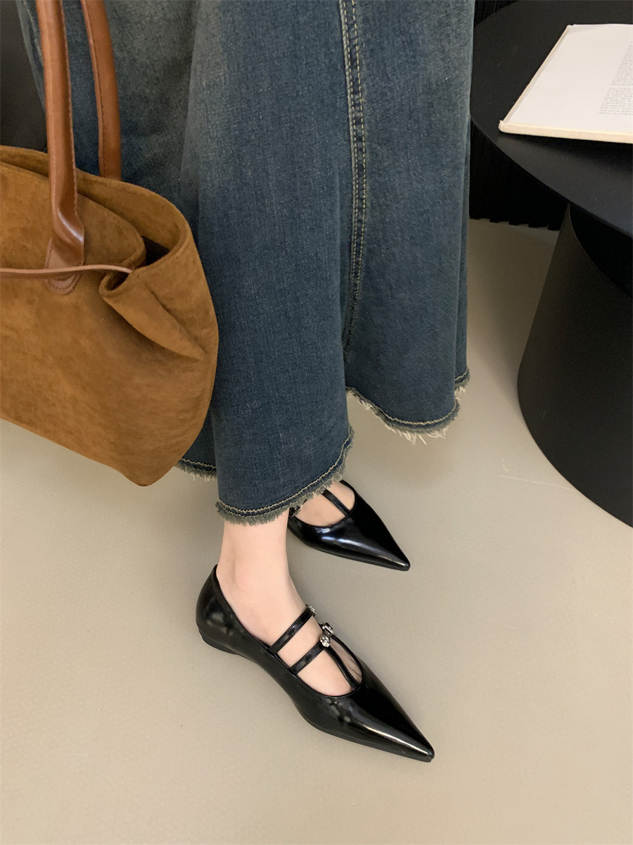 뾰족한 청키 힐 특허 메리 제인 여성의 봄/여름 2025 새로운 부드러운 가죽 하이힐과 가죽 블랙 라인스톤 신발스토어 가기