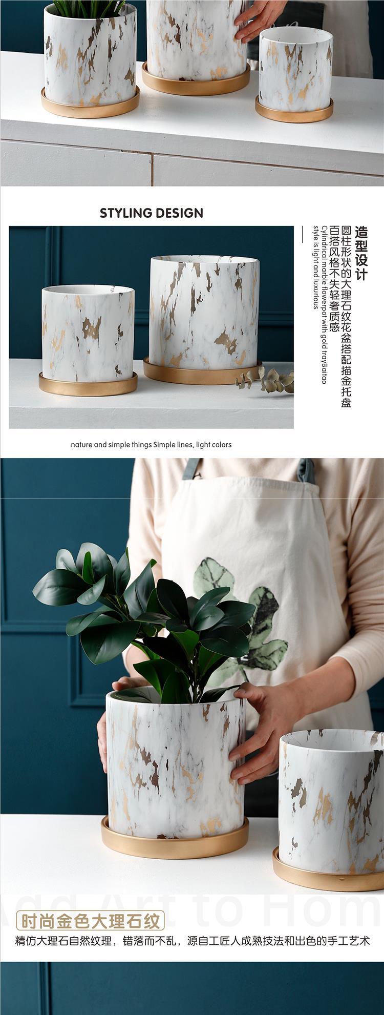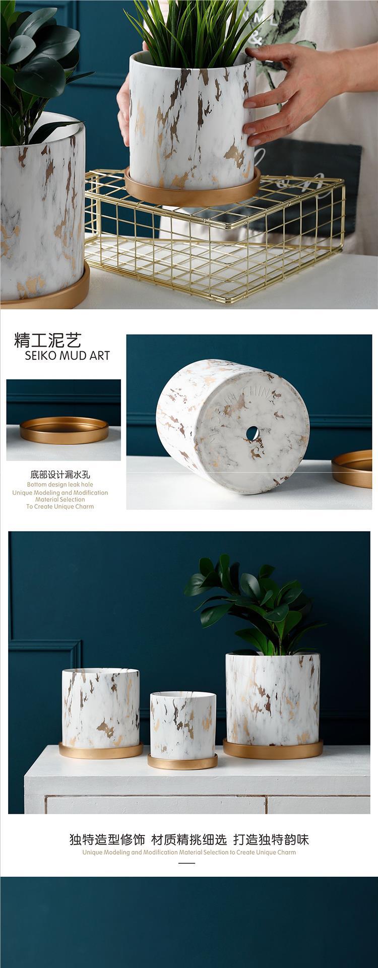 골드 아트 꽃 냄비 현대 간단한 다발 꽃가루 튤립 북유럽 스타일의 세라믹 대리석 패턴