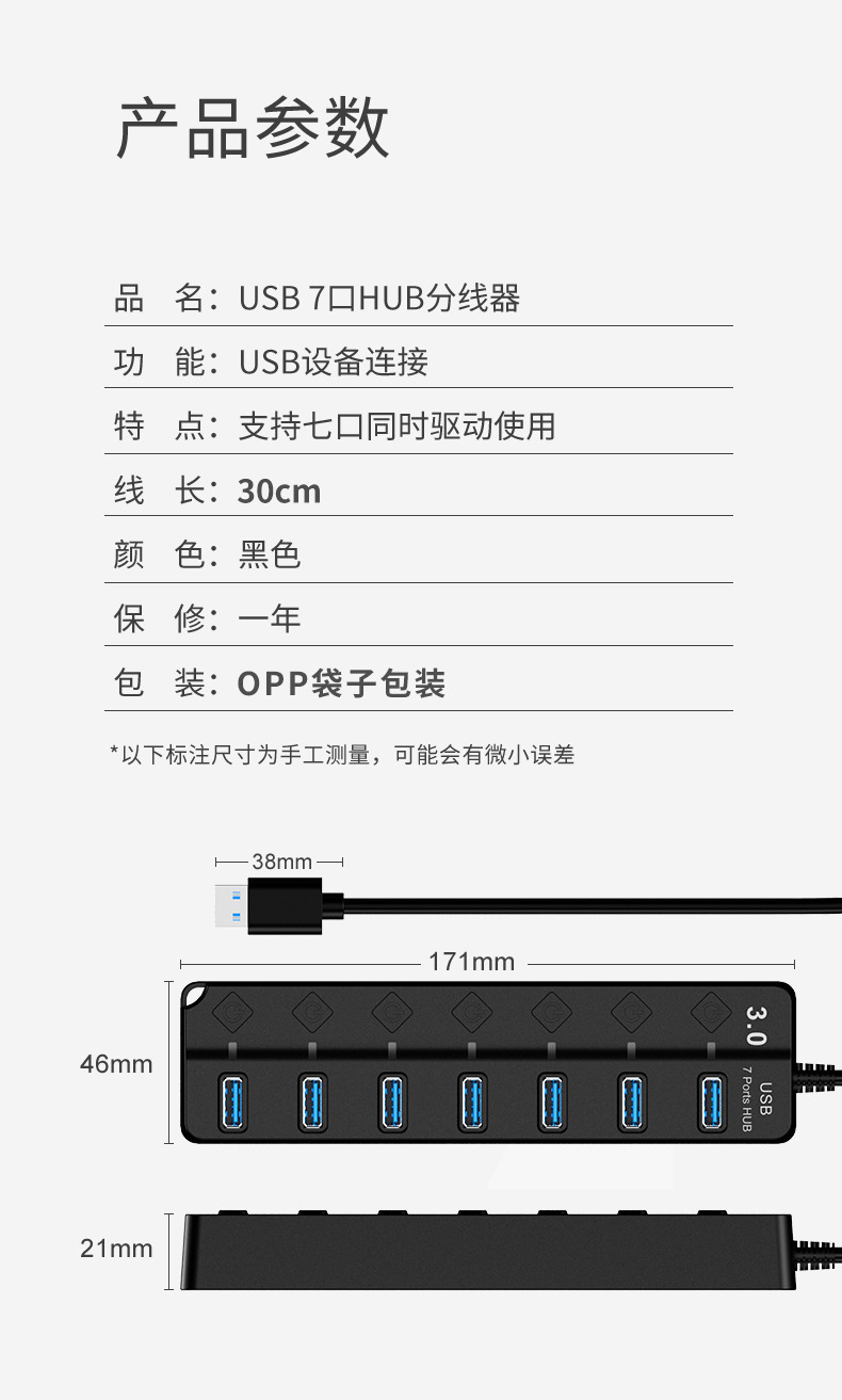 7포트 리얼 3.0 허브 확장 도크 스위치 허브 고속 전송 멀티 인터페이스스토어 가기