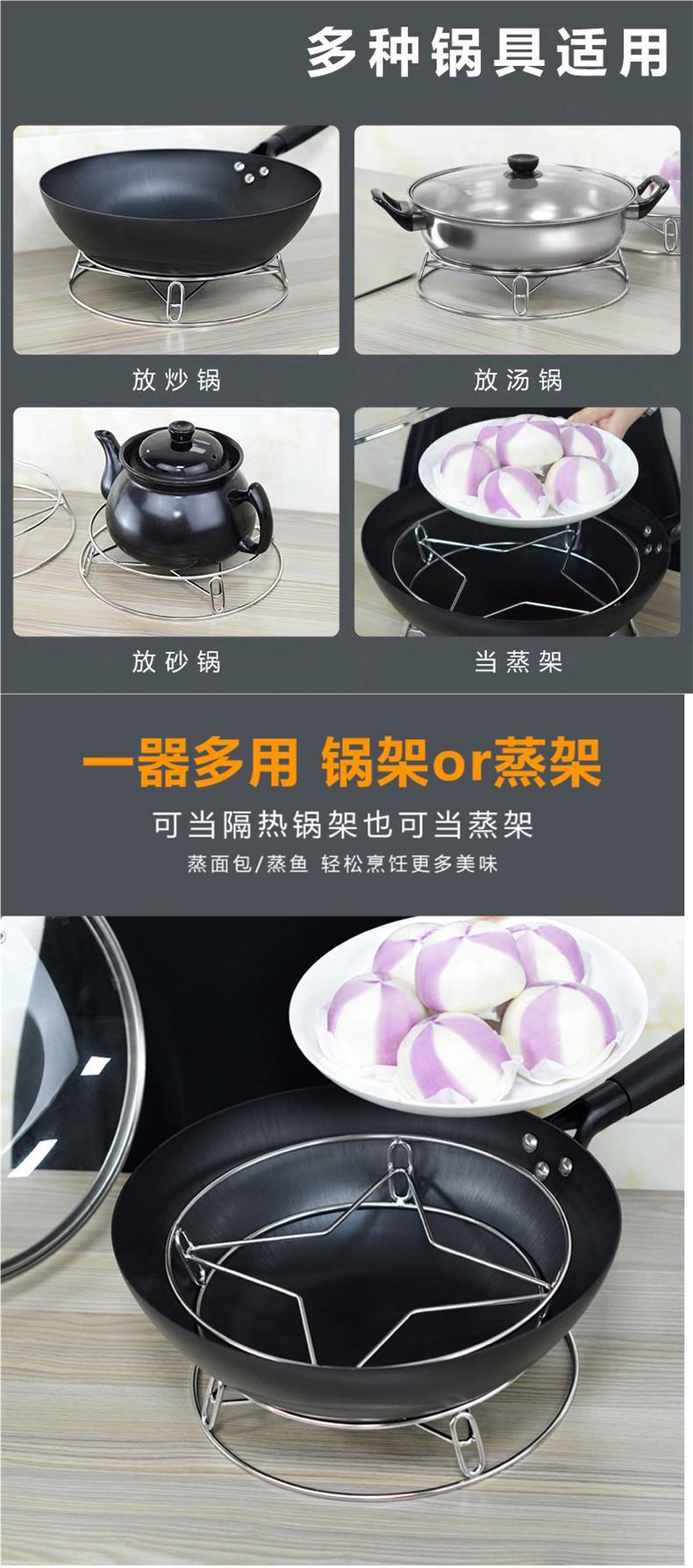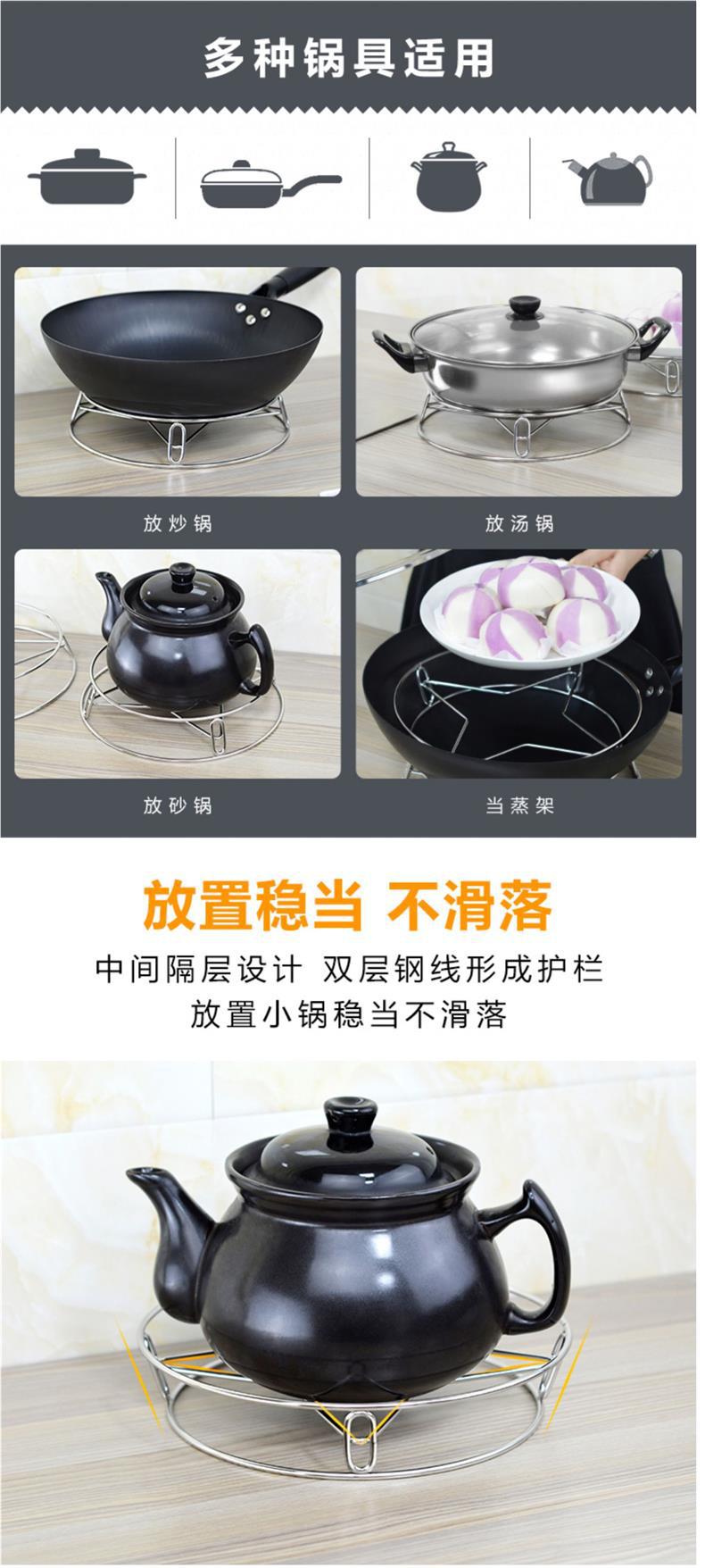 두꺼운 스테인레스 스틸 라운드 튜브 포트 랙 플레이트 팟 랙 워크 랙 열 절연 방지 스토리지 랙이있는 더블 레이어 팟 쿠션스토어 가기