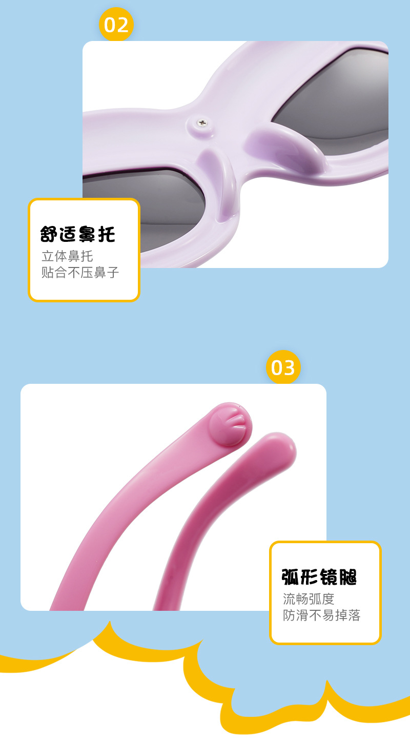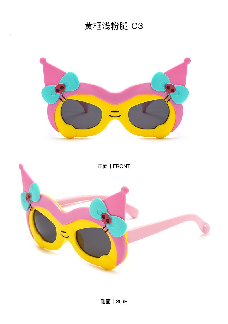 2025 어린이 실리콘 만화 선글라스 여성 패션 스타일 유치한 선글라스 높은 감각 남성 아기 차양 안경 도매