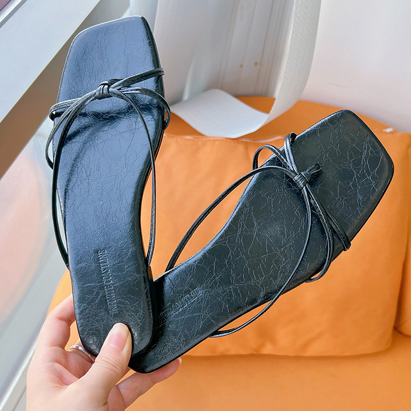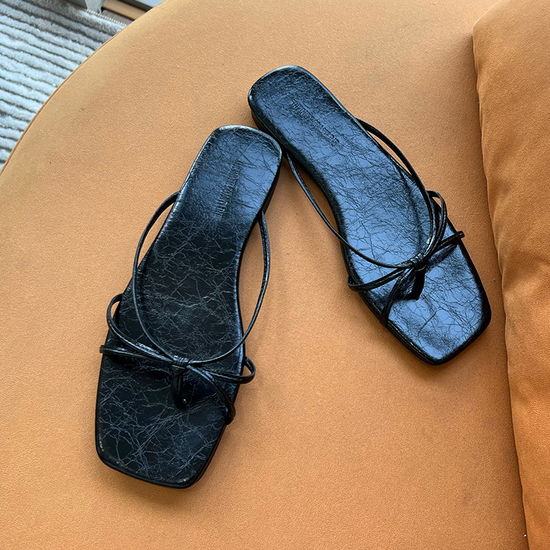 정품 가죽 플립 플롭스 2025 여름 새로운 유행 하이 엔드 아우터웨어 슬리퍼 여성용 캐주얼 올 매치 프랑스 소형 샌들