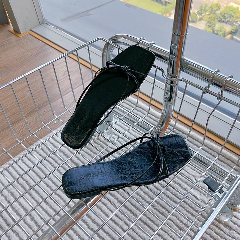 정품 가죽 플립 플롭스 2025 여름 새로운 유행 하이 엔드 아우터웨어 슬리퍼 여성용 캐주얼 올 매치 프랑스 소형 샌들스토어 가기