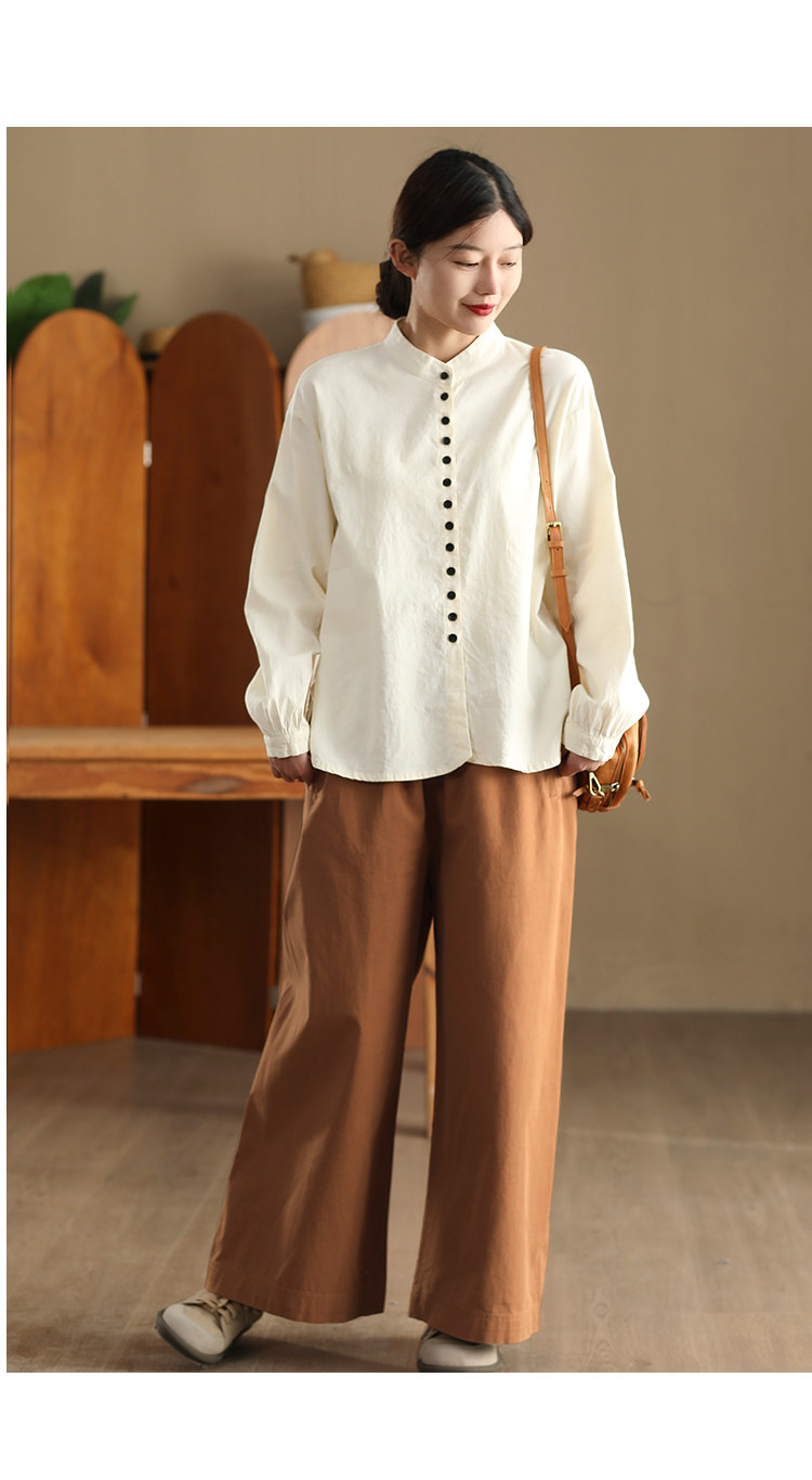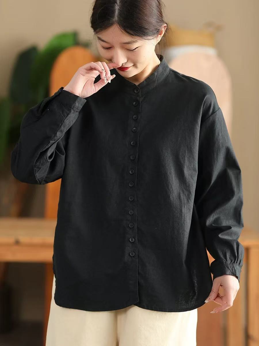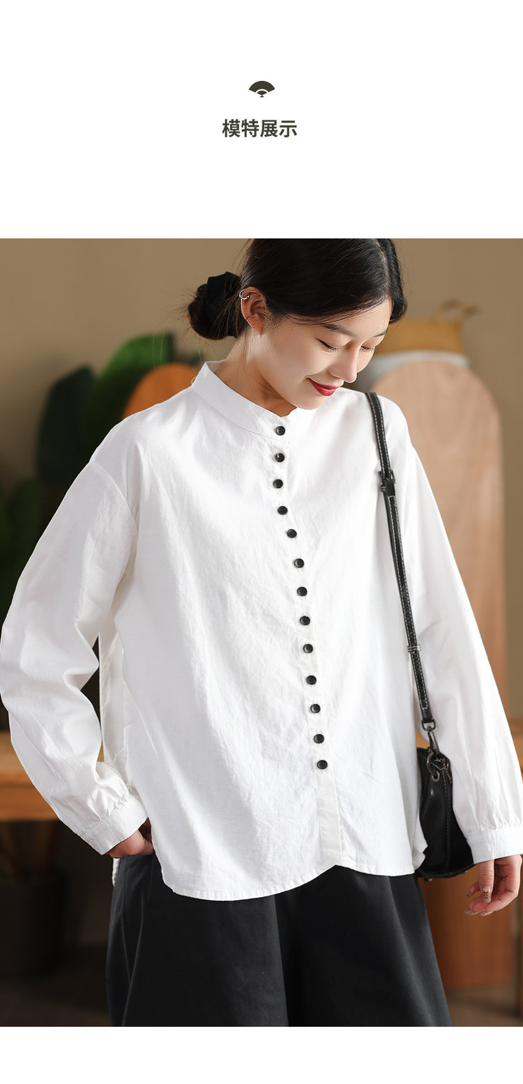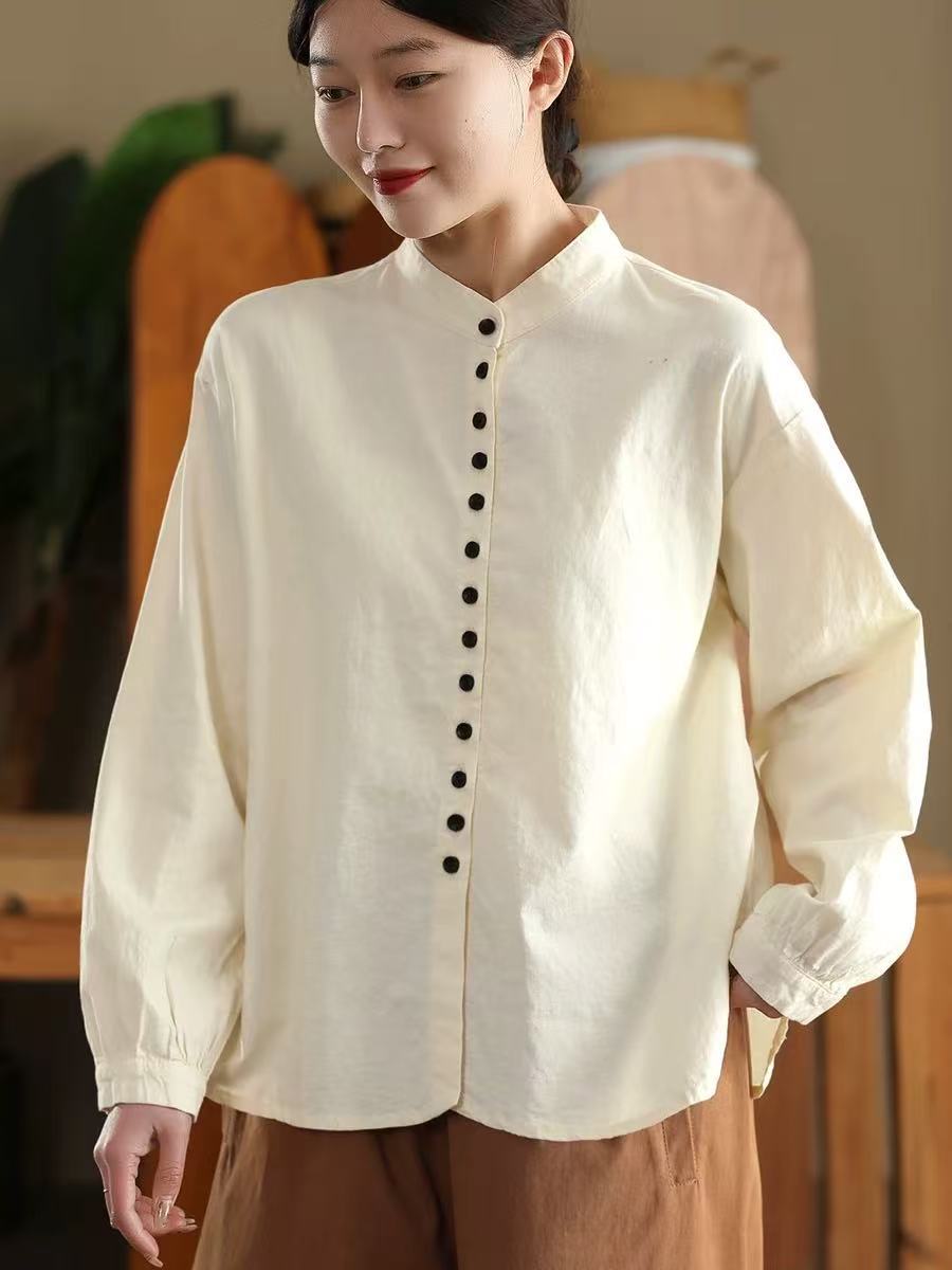 봄 새로운 빈티지 코튼 셔츠 여성용 캐주얼 싱글 브레스트 셔츠 솔리드 컬러 칼라 긴팔 탑 190스토어 가기