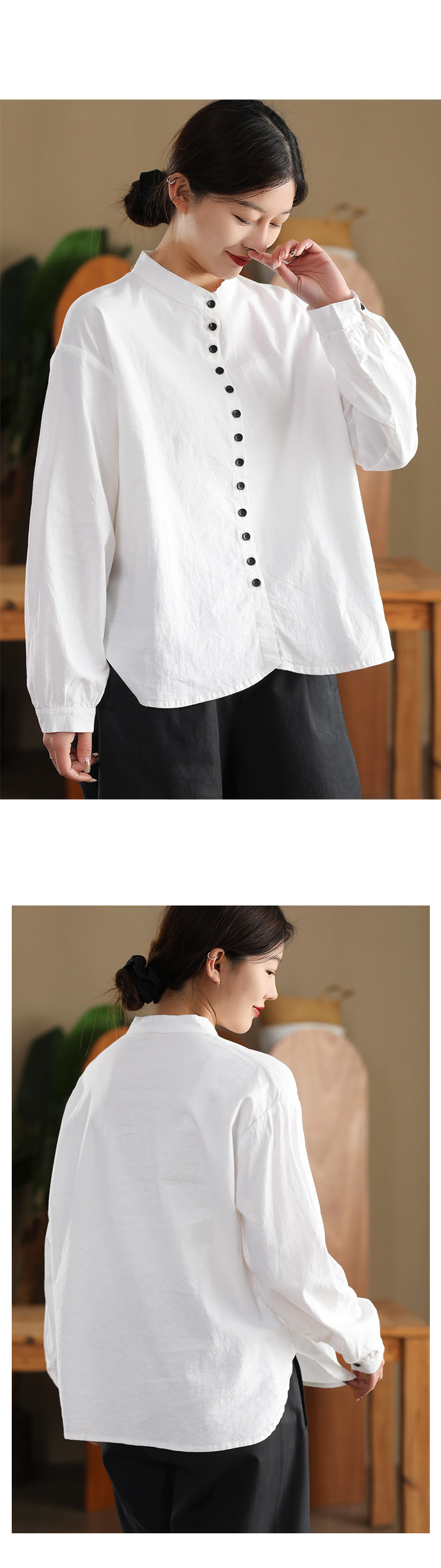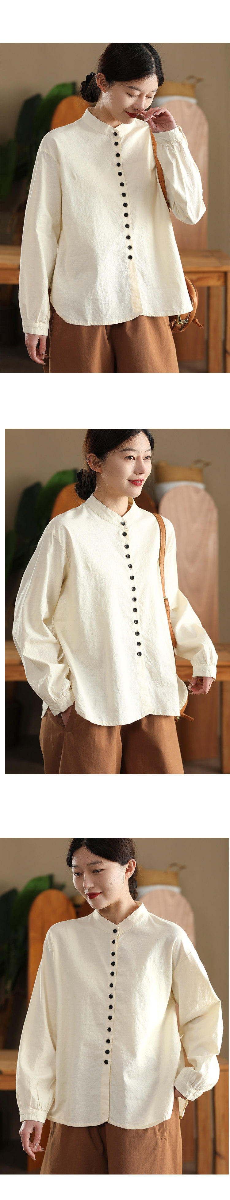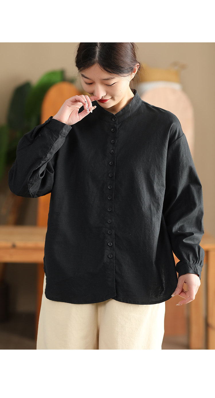 봄 새로운 빈티지 코튼 셔츠 여성용 캐주얼 싱글 브레스트 셔츠 솔리드 컬러 칼라 긴팔 탑 190스토어 가기