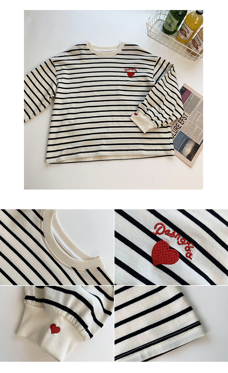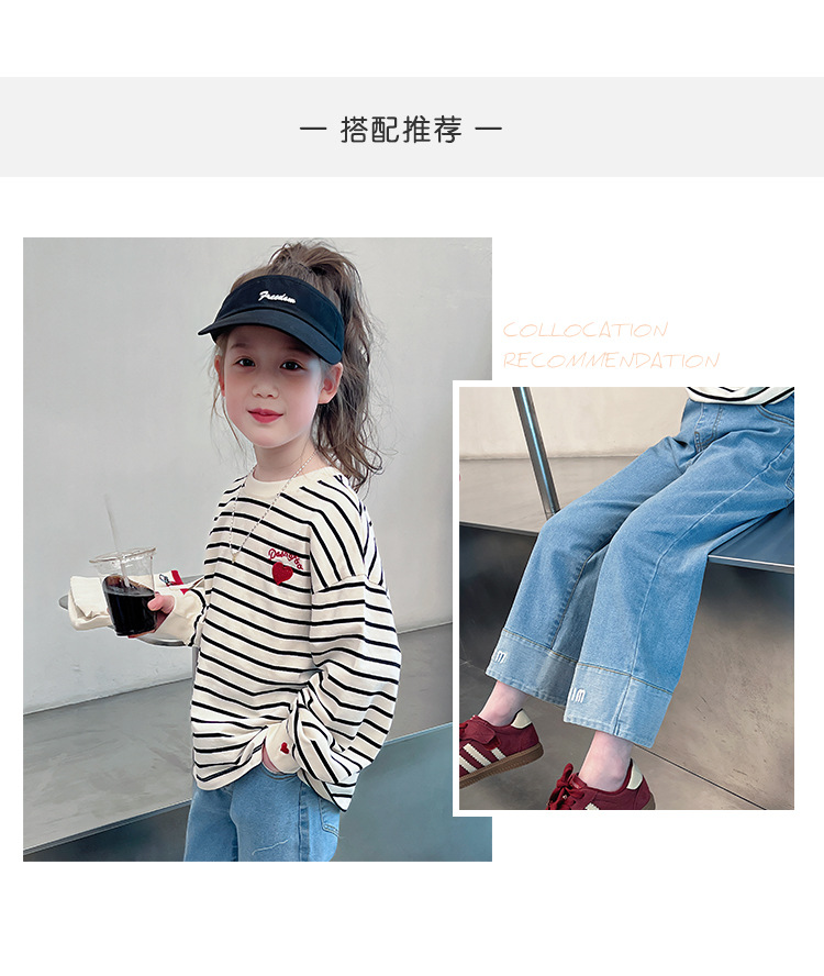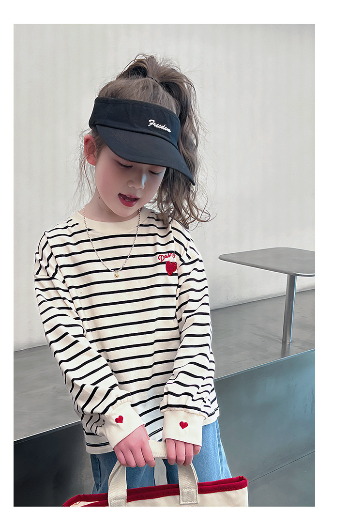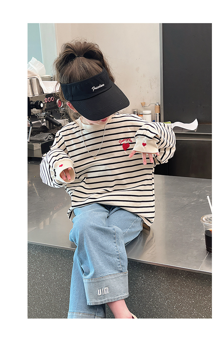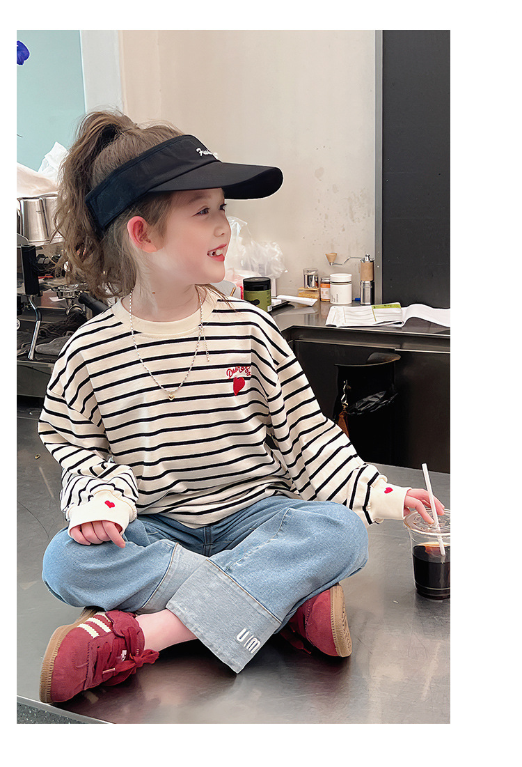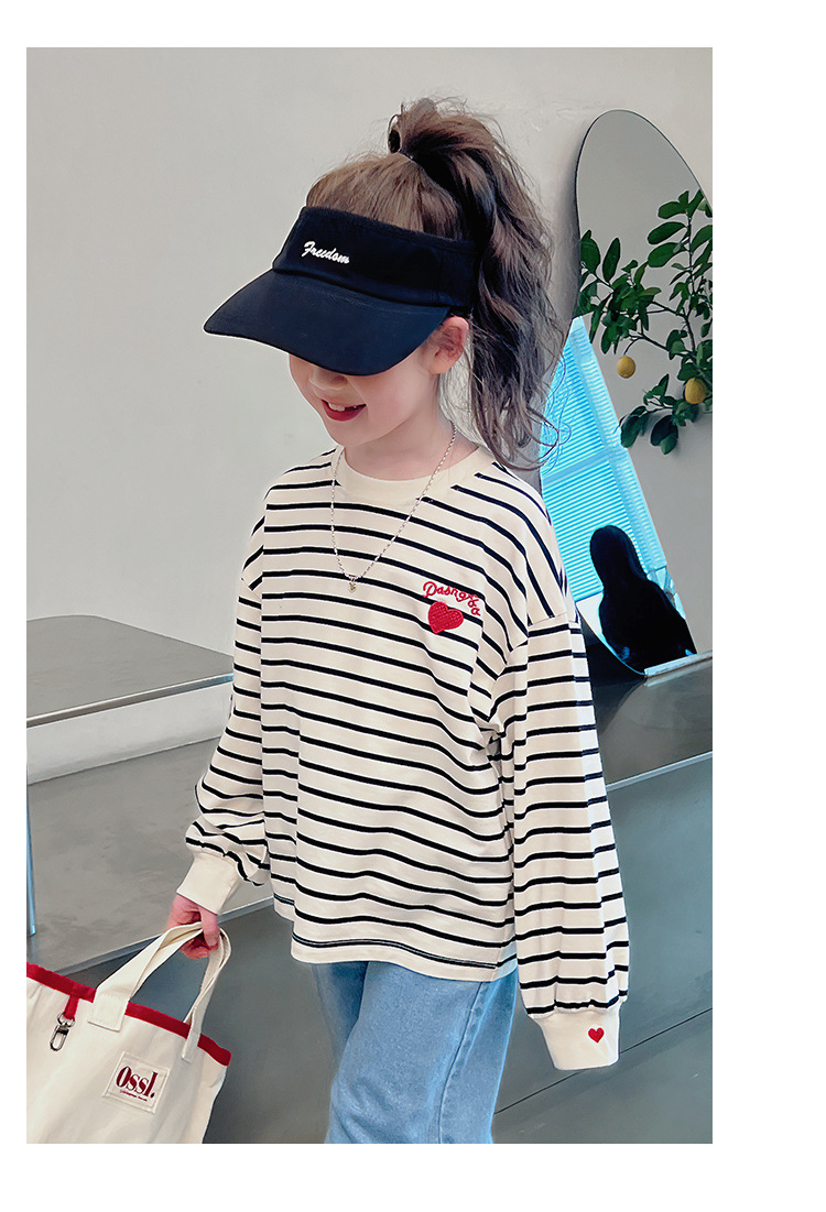 소녀 줄무늬 어깨베이스 셔츠 어린이 서양식 긴 소매 티셔츠 대형 아동복 한국 스타일 톱 2025 봄 새로운 스타일스토어 가기