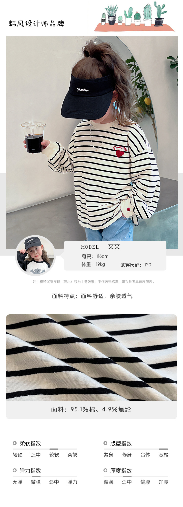 소녀 줄무늬 어깨베이스 셔츠 어린이 서양식 긴 소매 티셔츠 대형 아동복 한국 스타일 톱 2025 봄 새로운 스타일