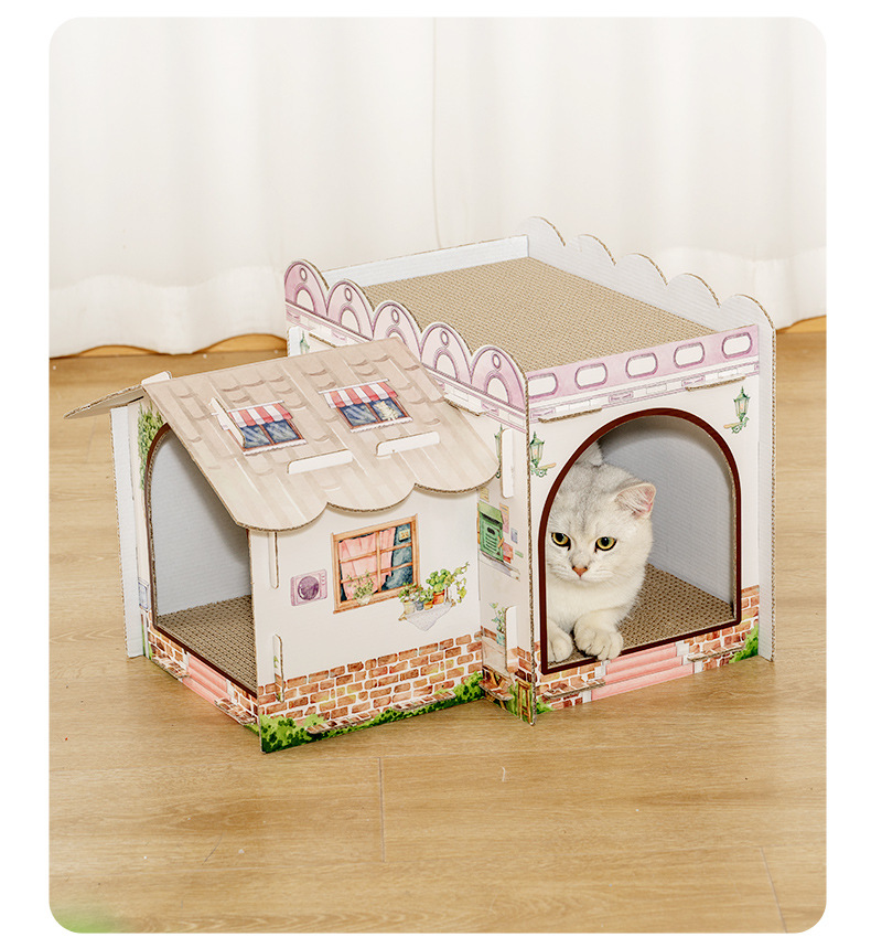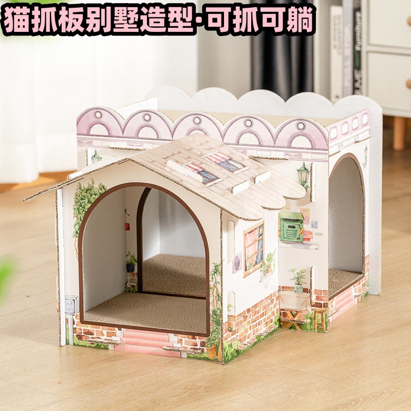 고양이 스크래치 보드 잡고 누워있는 골판지 고양이 집 빌라 더블 레이어 통합 이동식 사계절 고양이 둥지스토어 가기