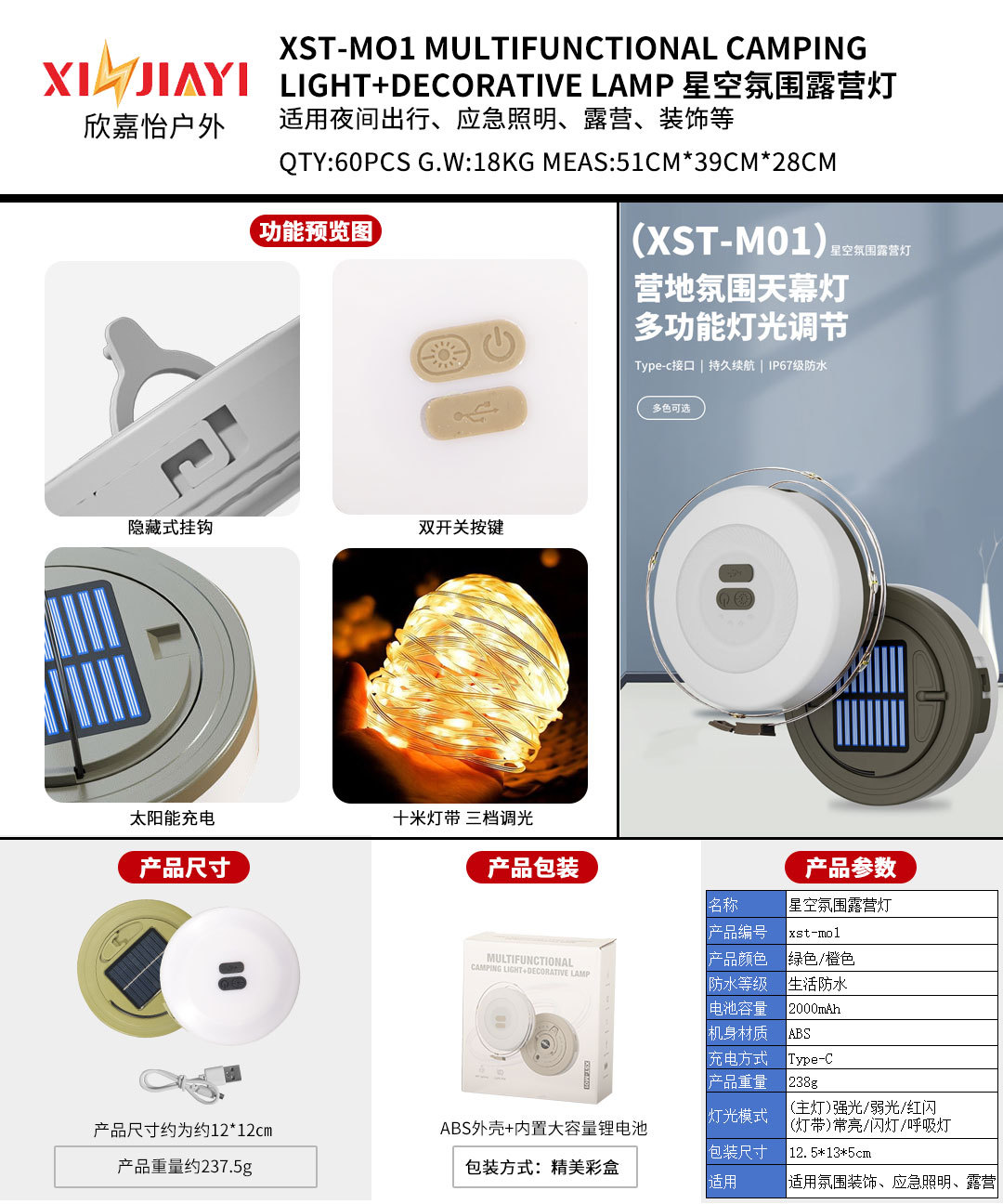 새로운 야외 캠핑 분위기 빛 LED 문자열 캠핑 문자열 빛 장식 조명 태양 캐노피 문자열