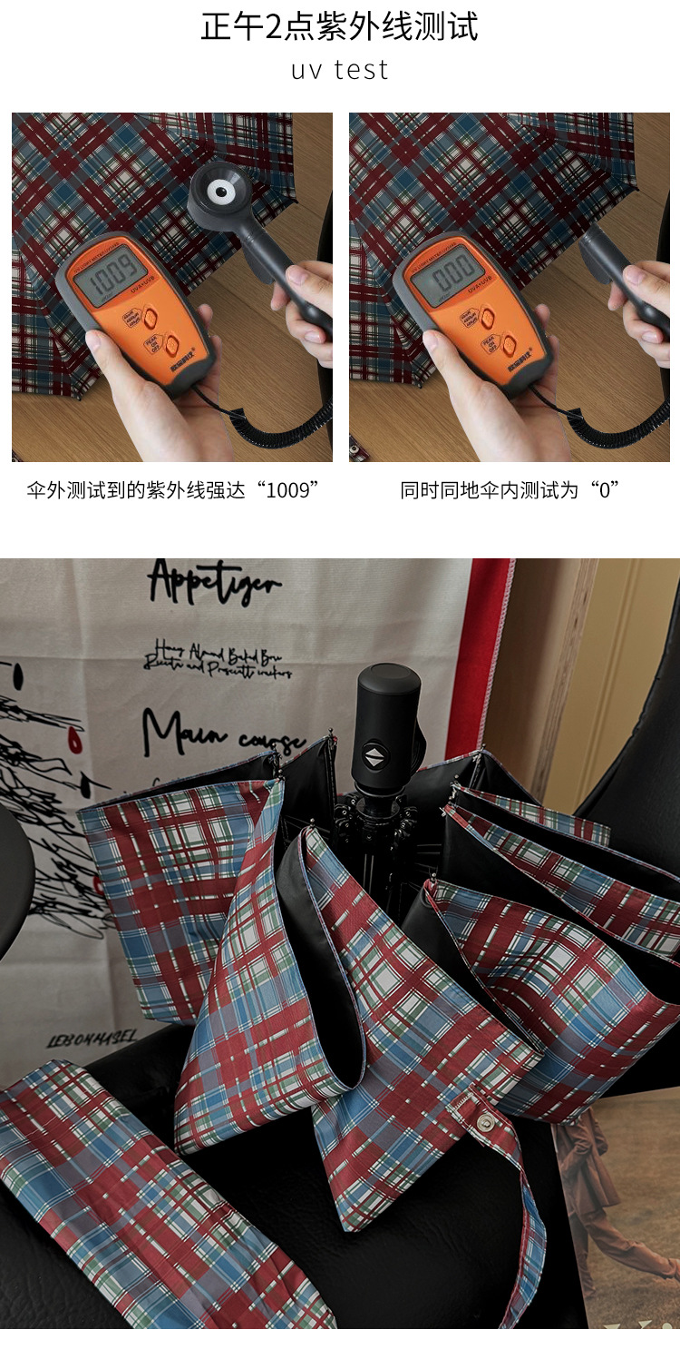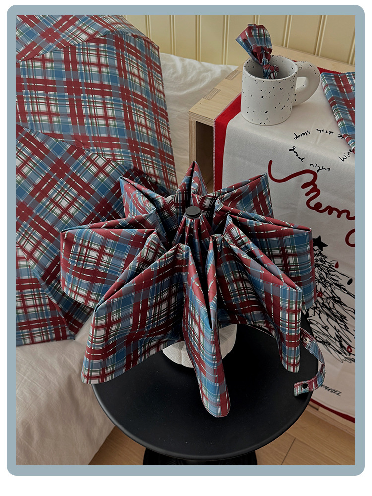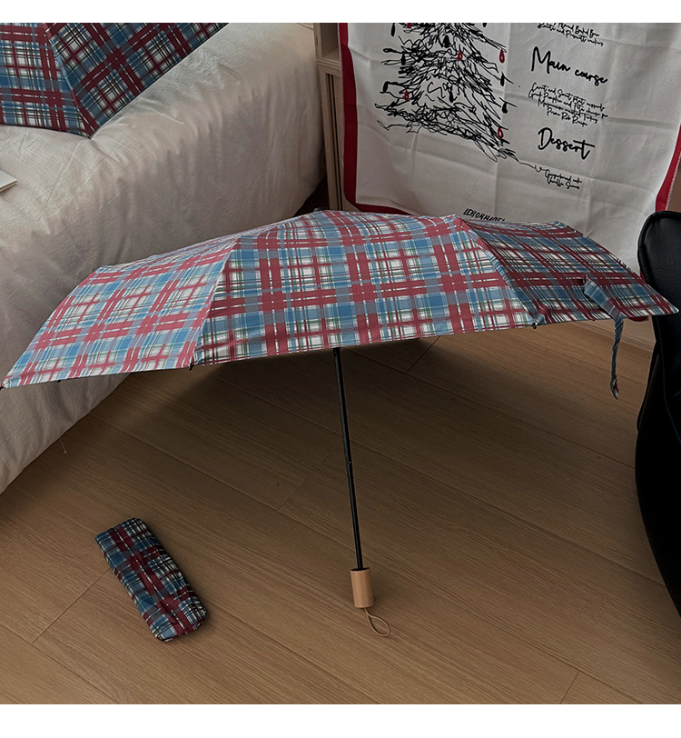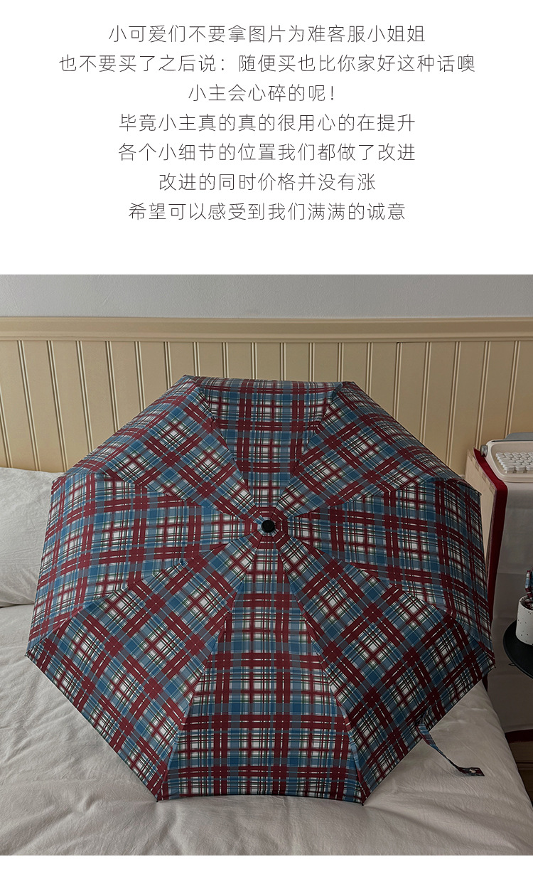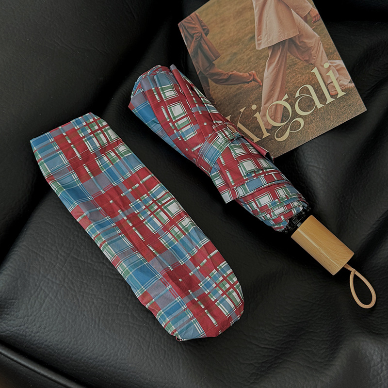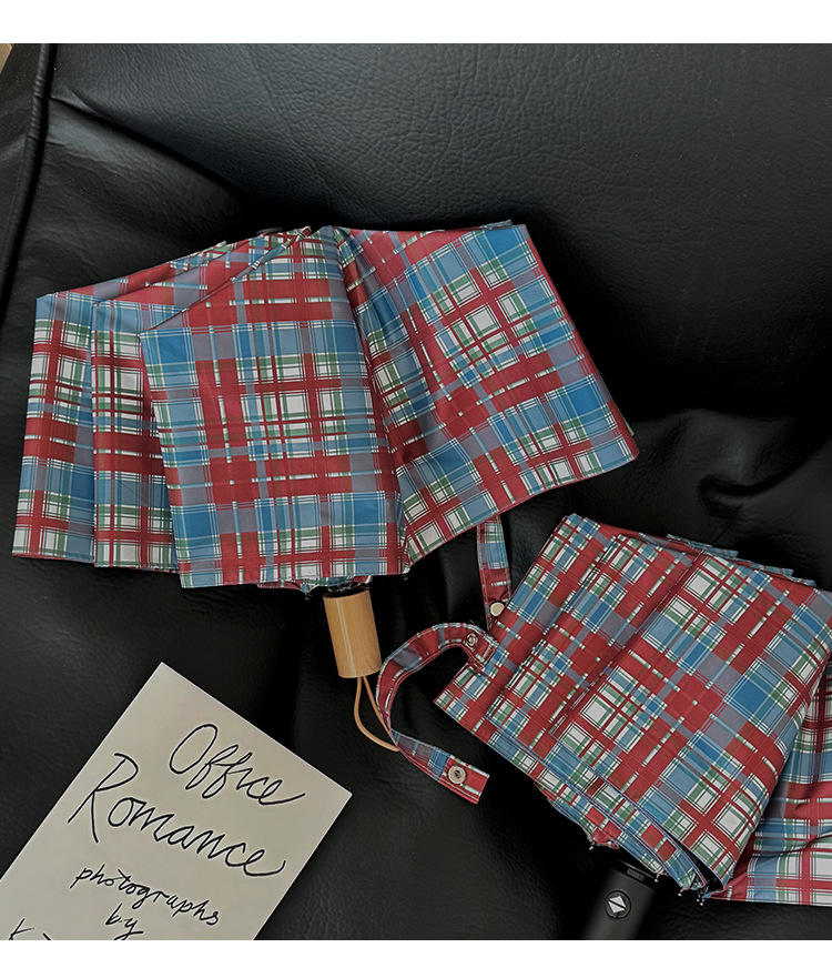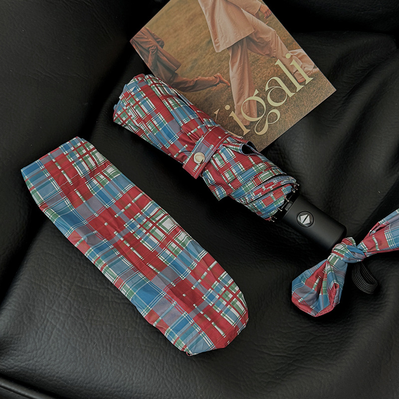 빈티지 빨간 격자 무늬 우산 맑고 비오는 이중 목적 자동 태양 우산 여성의 태양 보호 자외선 보호 접히는 햇빛 우산