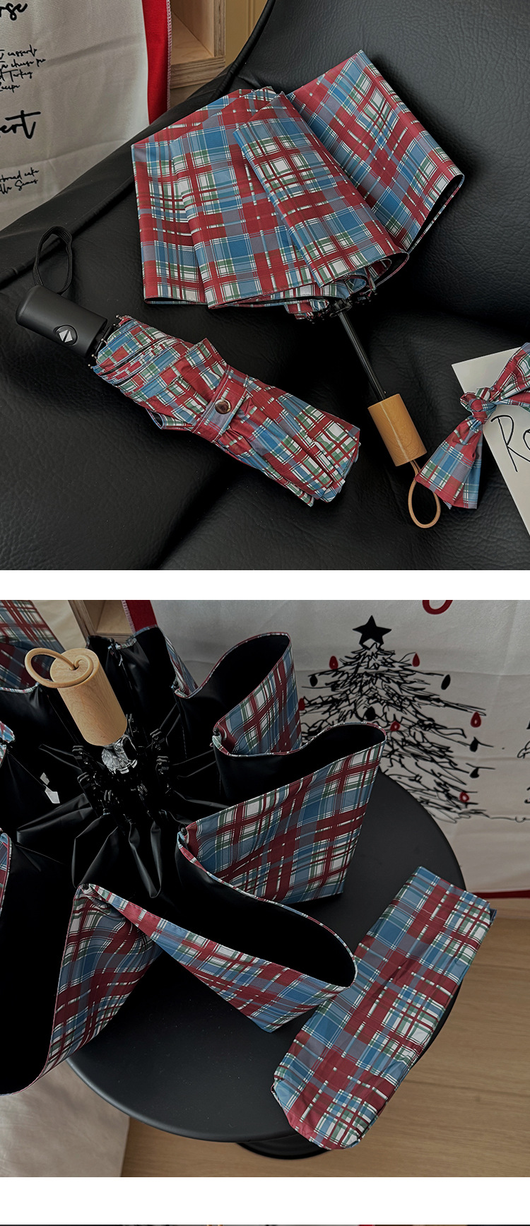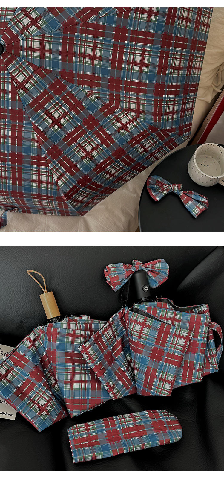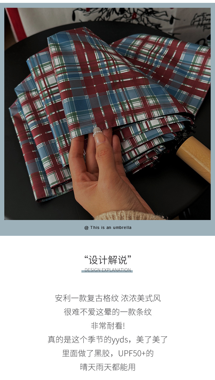 빈티지 빨간 격자 무늬 우산 맑고 비오는 이중 목적 자동 태양 우산 여성의 태양 보호 자외선 보호 접히는 햇빛 우산스토어 가기
