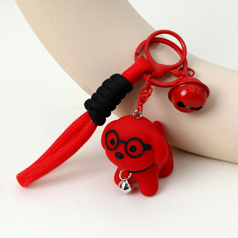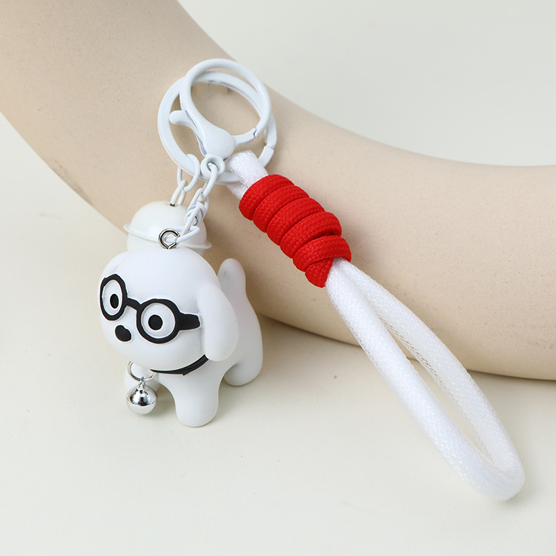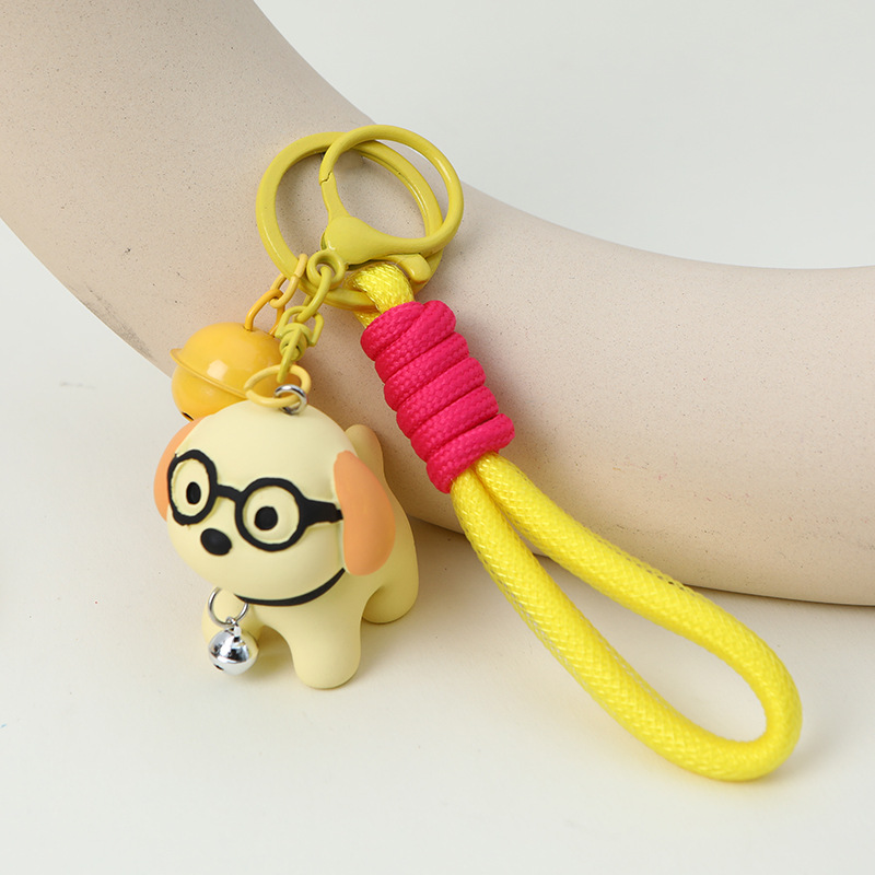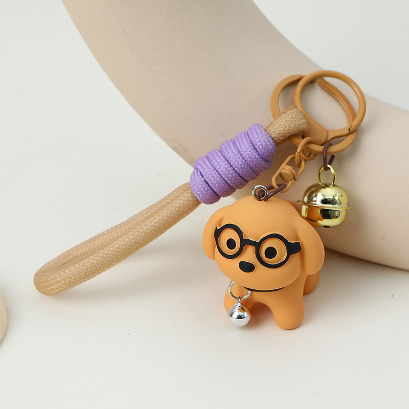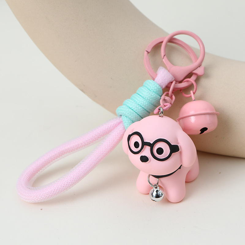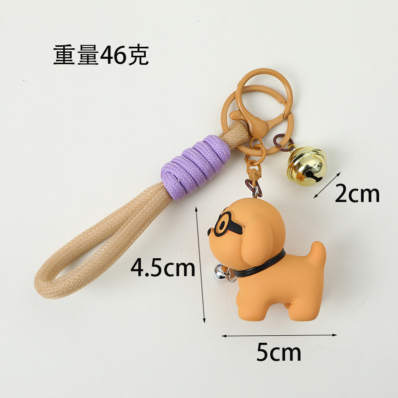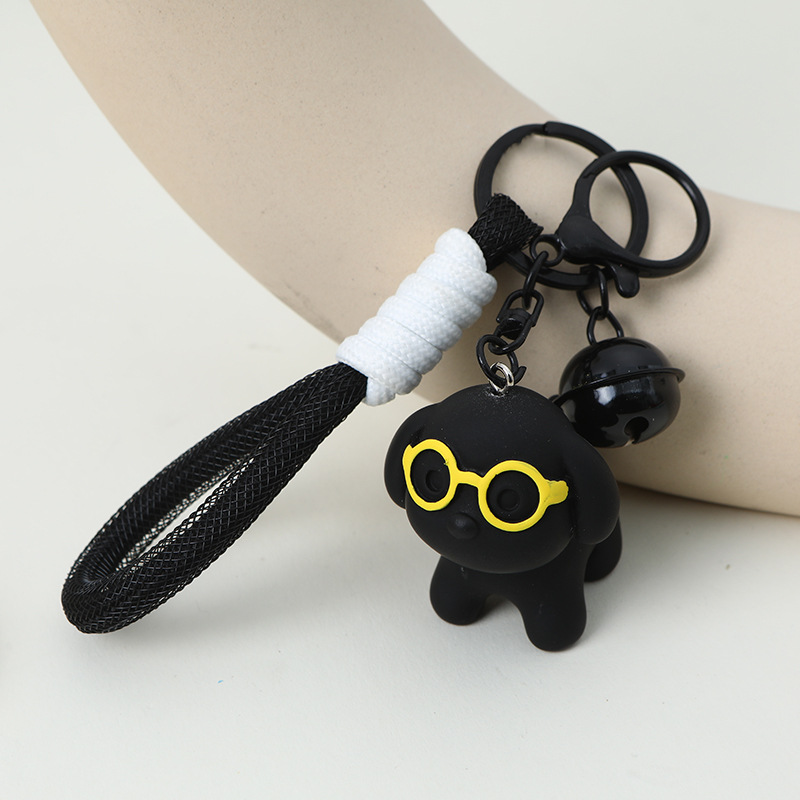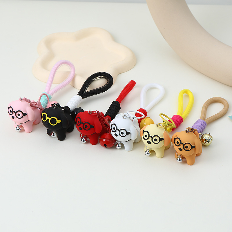 귀여운 만화 벨 안경 강아지 키 체인 펜던트 창조적 인 수지 강아지 인형 책가방 펜던트 도매