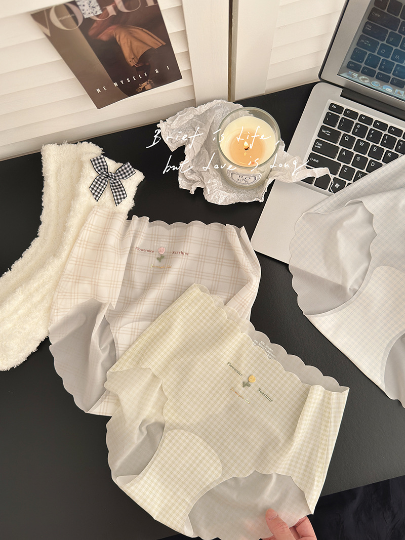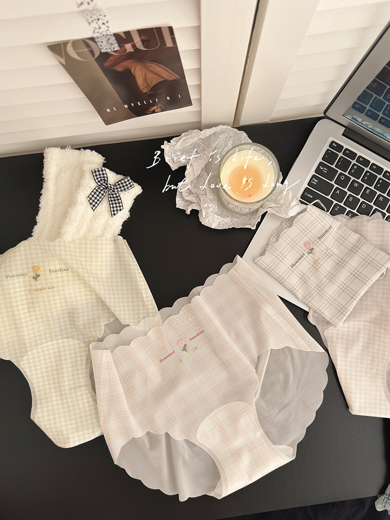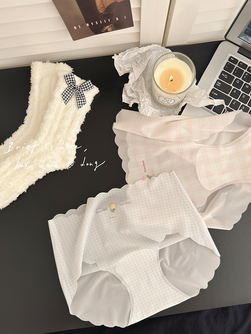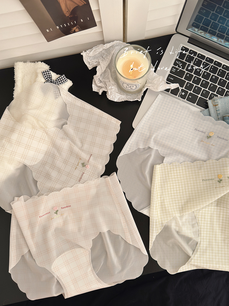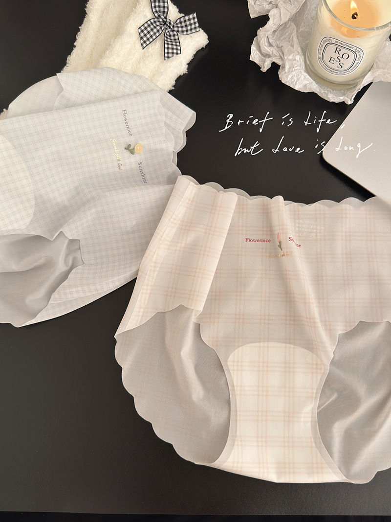 첸의 동반자 아이스 실크 속옷 소녀의 달콤한 추적없는 여름 얇은 꽃은 7A 항균 바닥 중간 허리 반바지