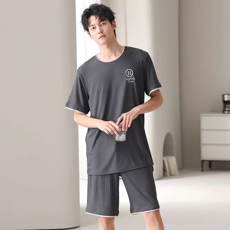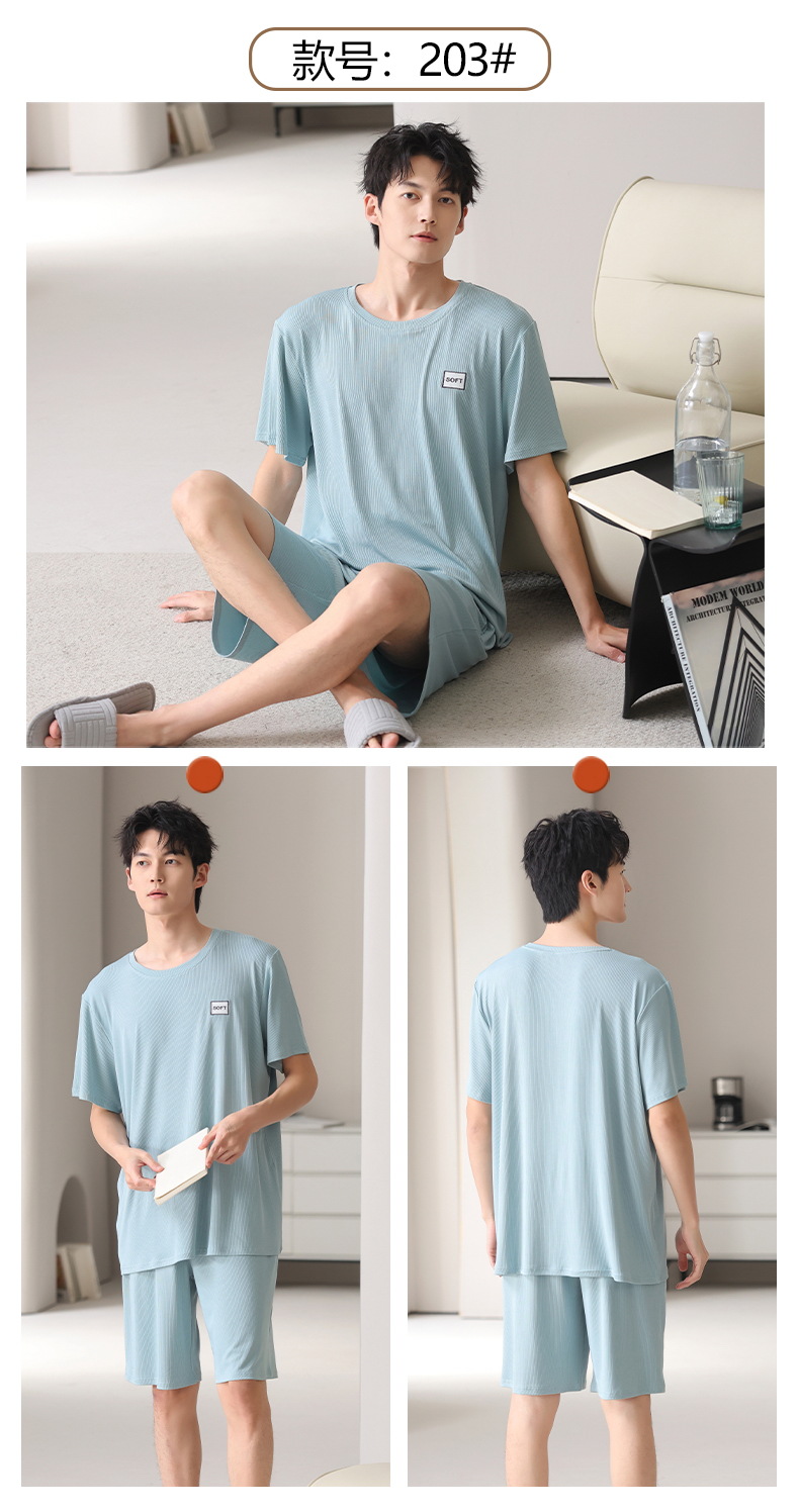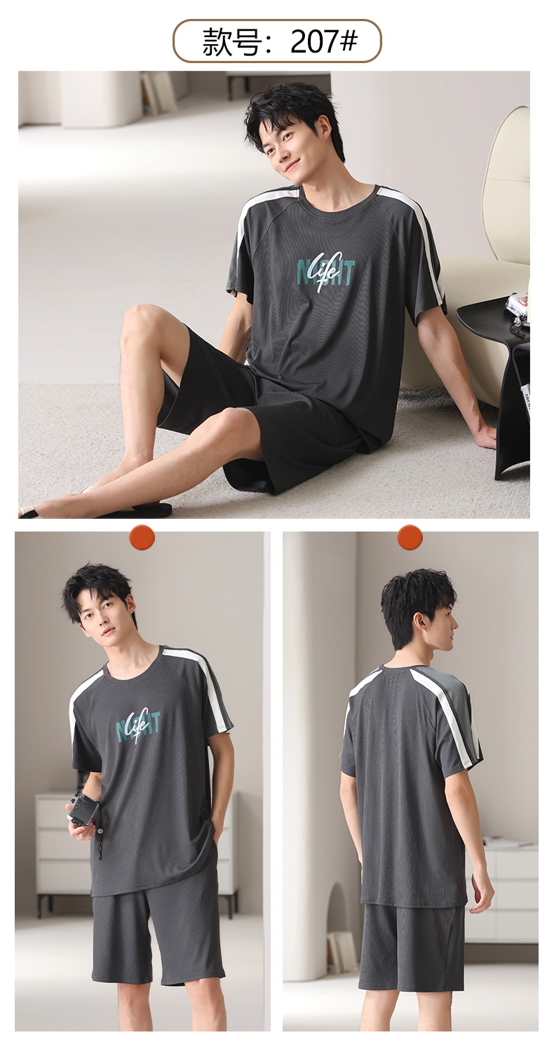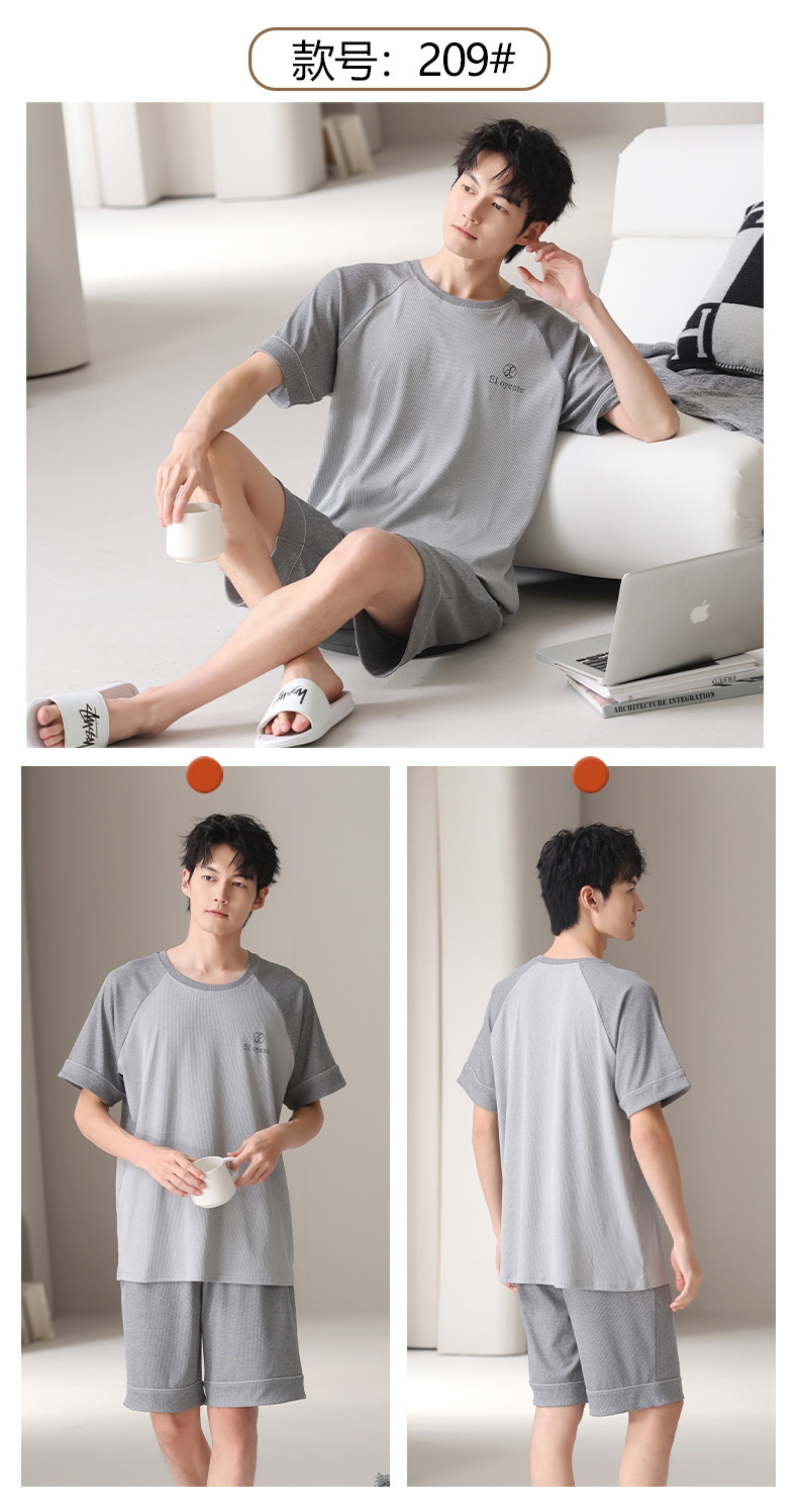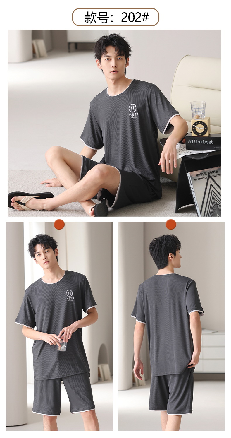 스레드 아이스 실크 파자마 남자 여름 반팔 반바지 홈 의류 남성 캐주얼 tracless 세트 얇은 플러스 사이즈스토어 가기