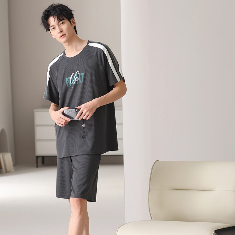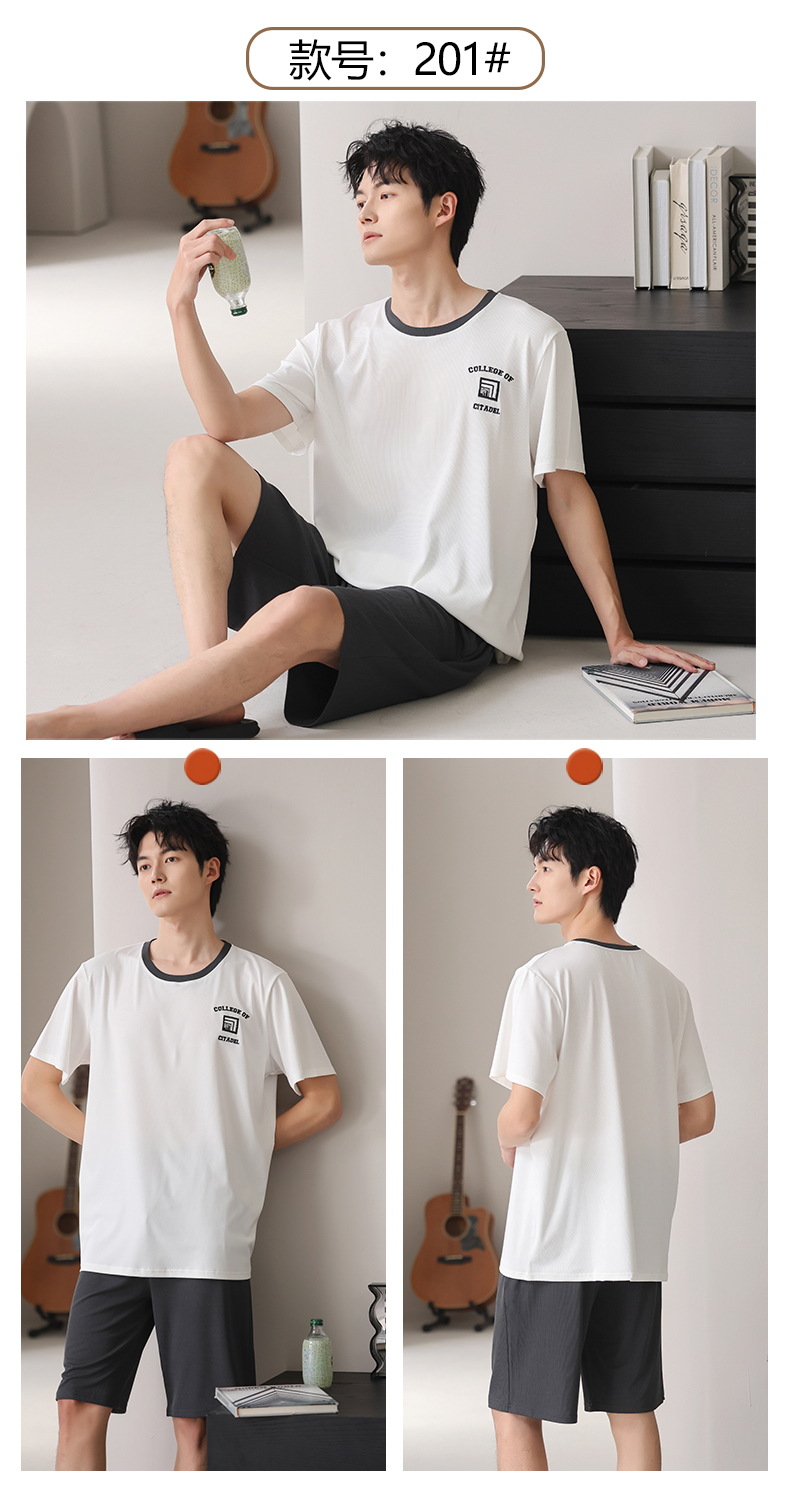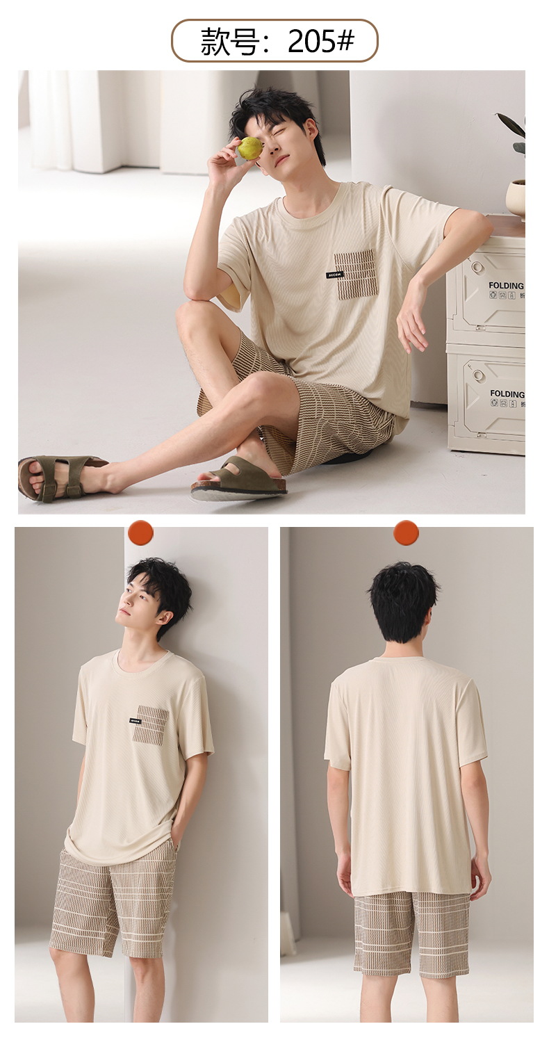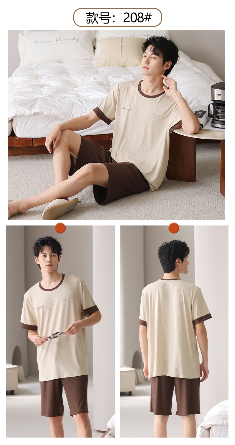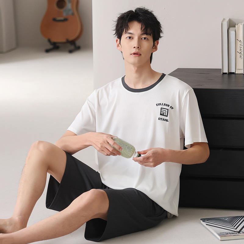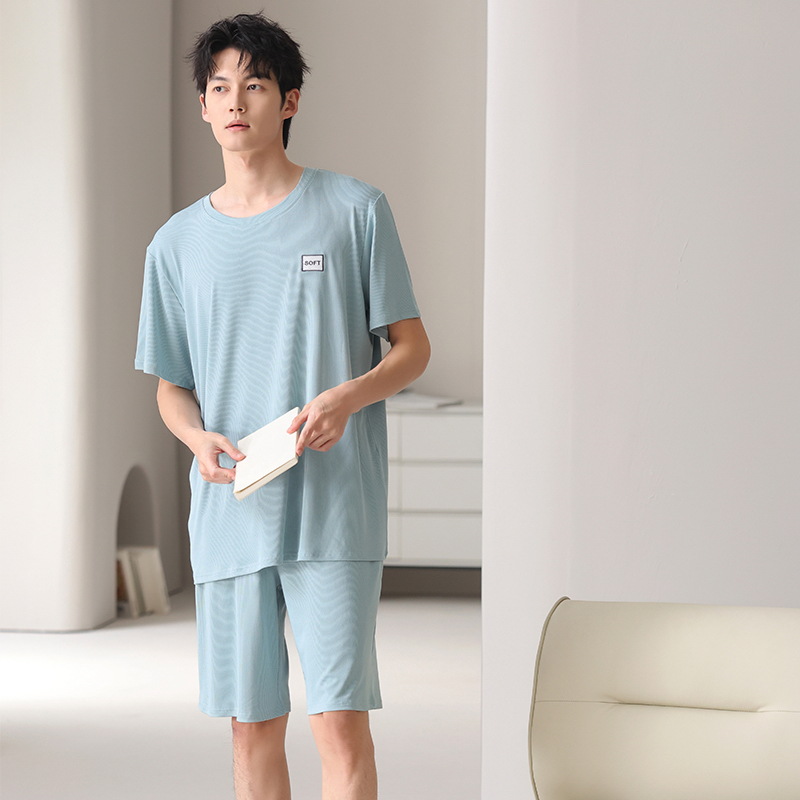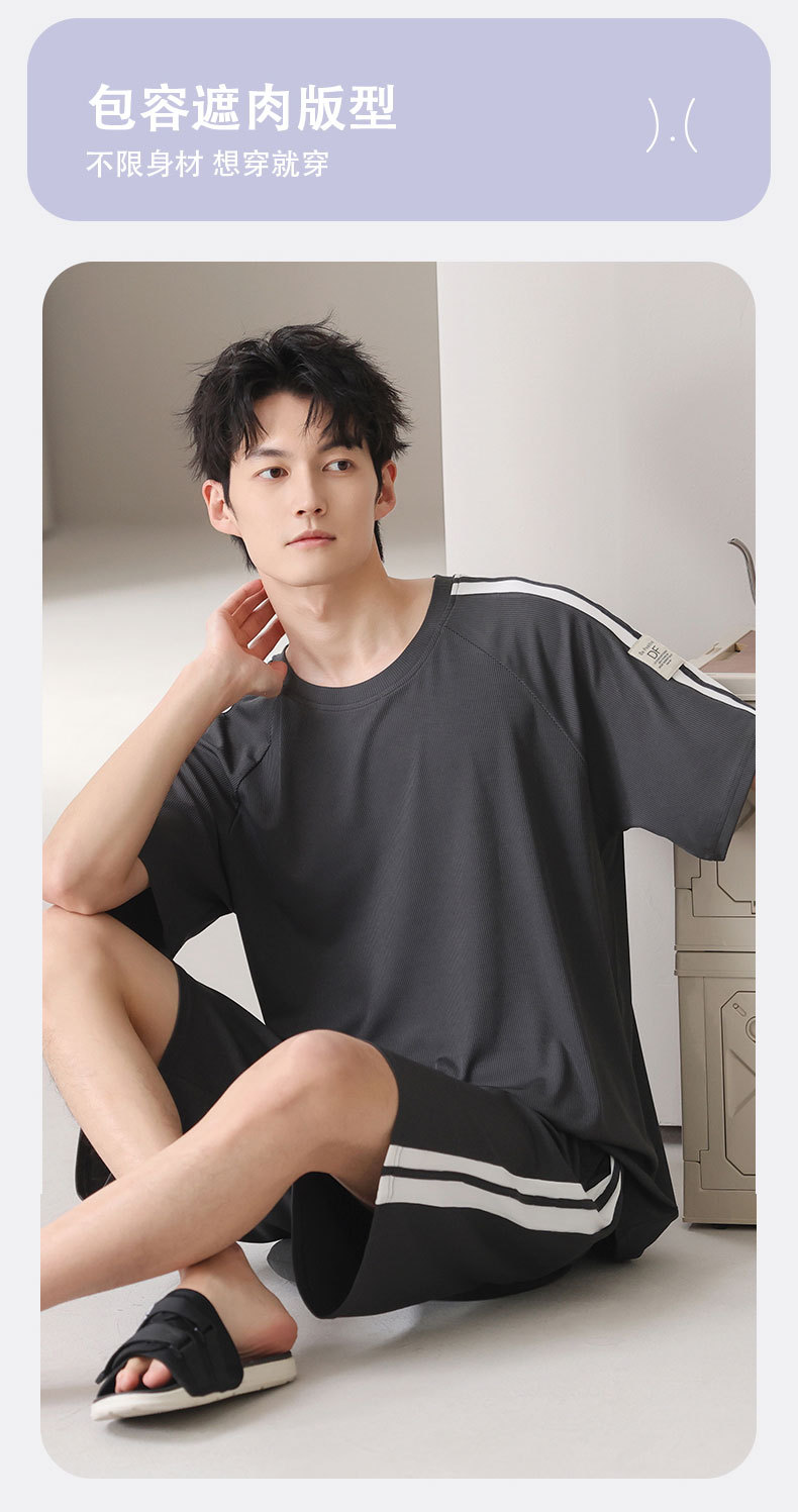 스레드 아이스 실크 파자마 남자 여름 반팔 반바지 홈 의류 남성 캐주얼 tracless 세트 얇은 플러스 사이즈스토어 가기