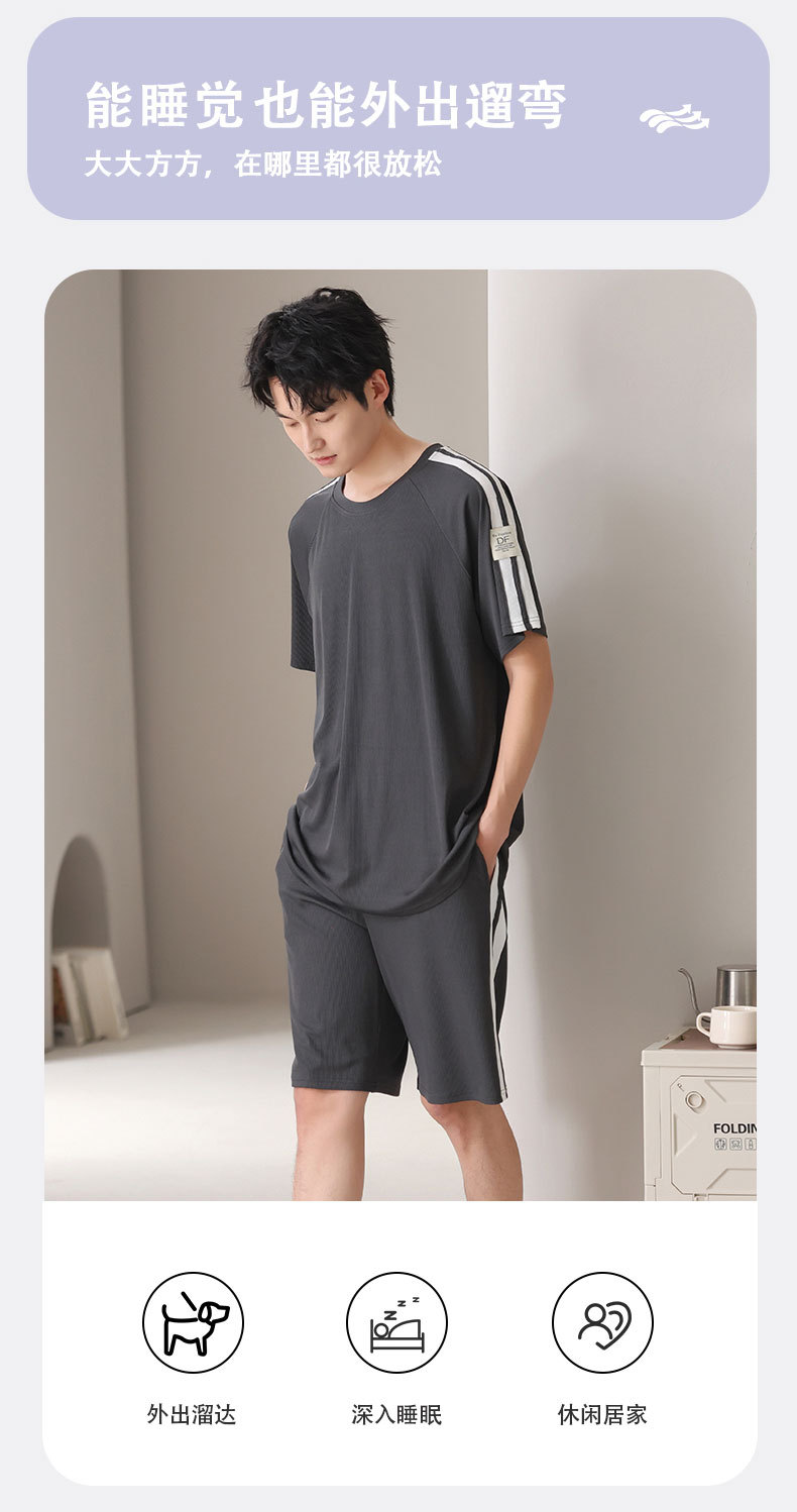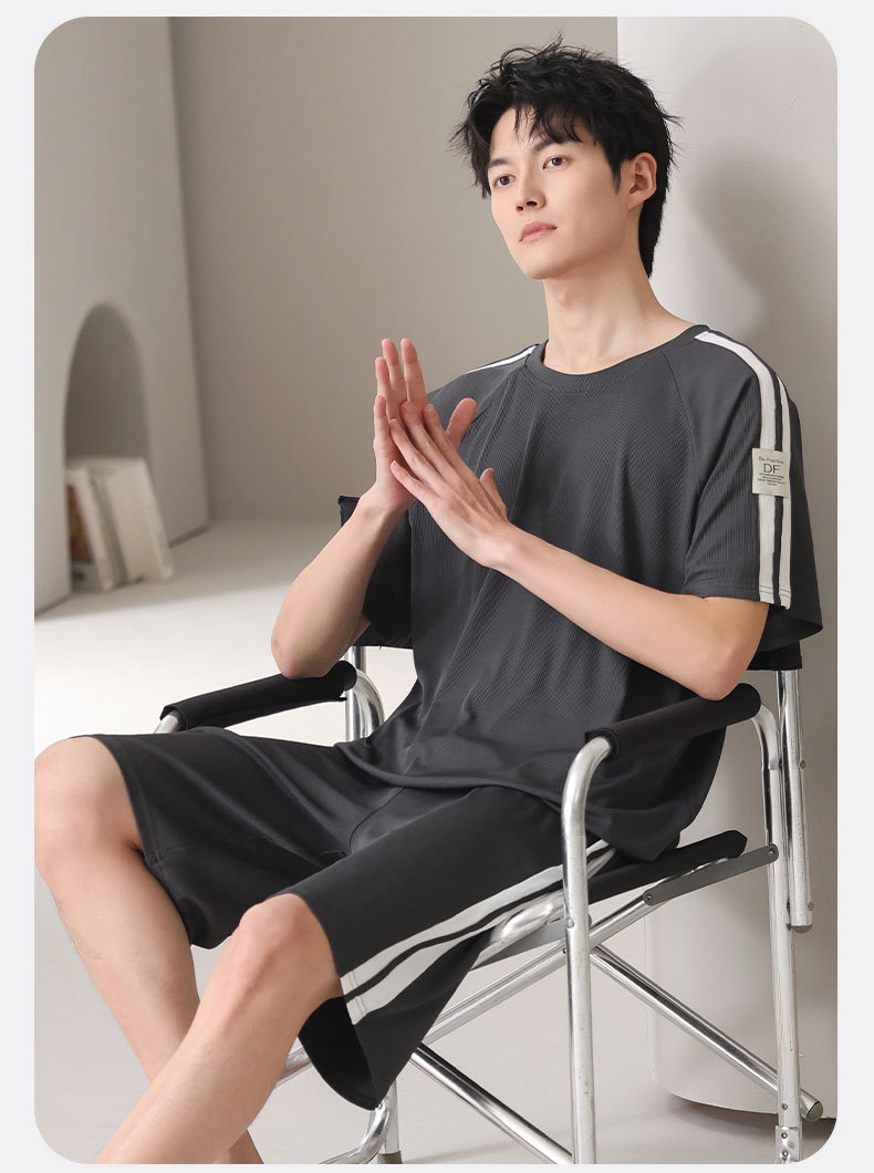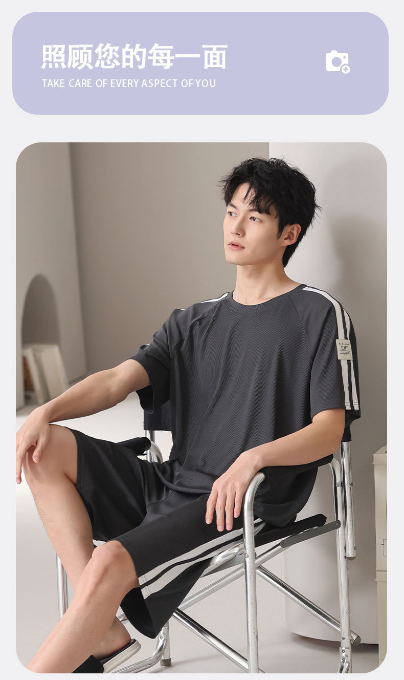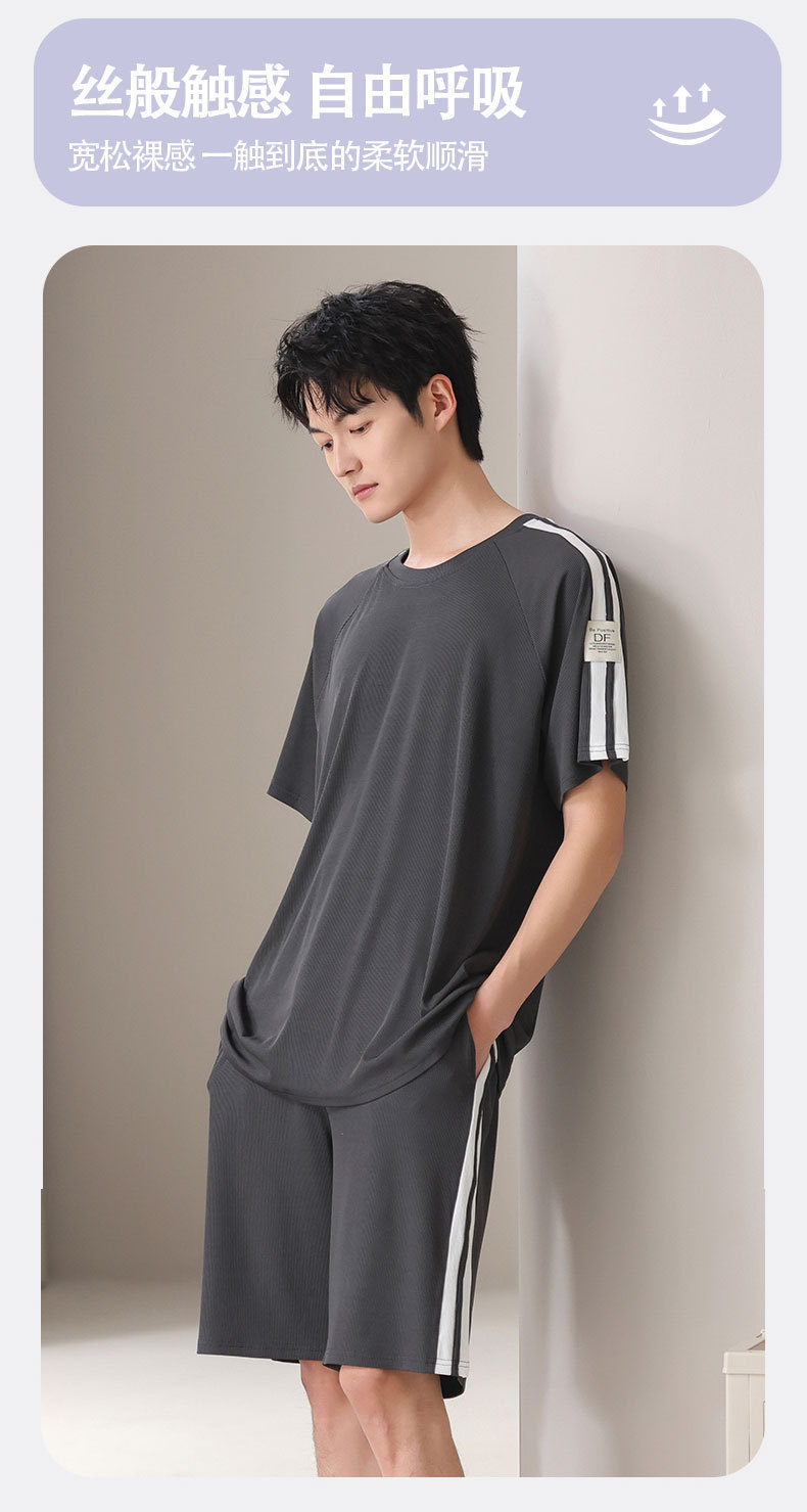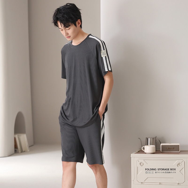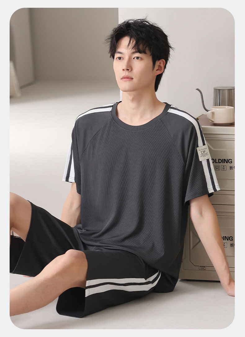 스레드 아이스 실크 파자마 남자 여름 반팔 반바지 홈 의류 남성 캐주얼 tracless 세트 얇은 플러스 사이즈스토어 가기