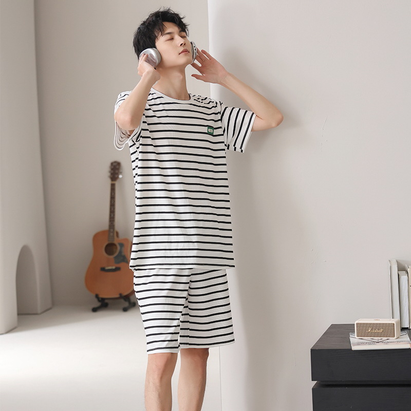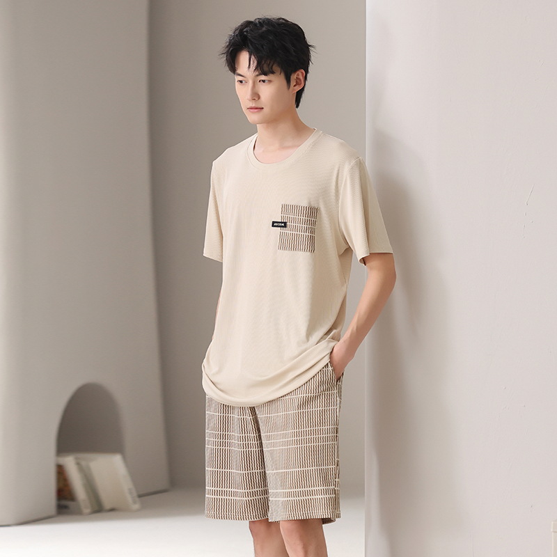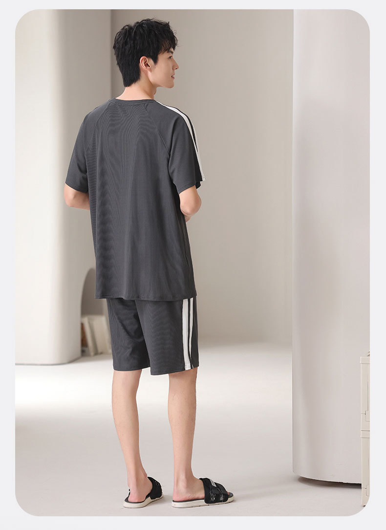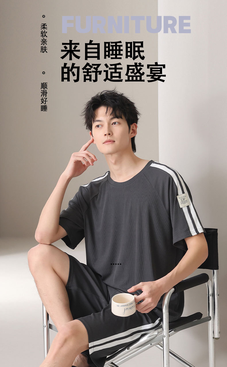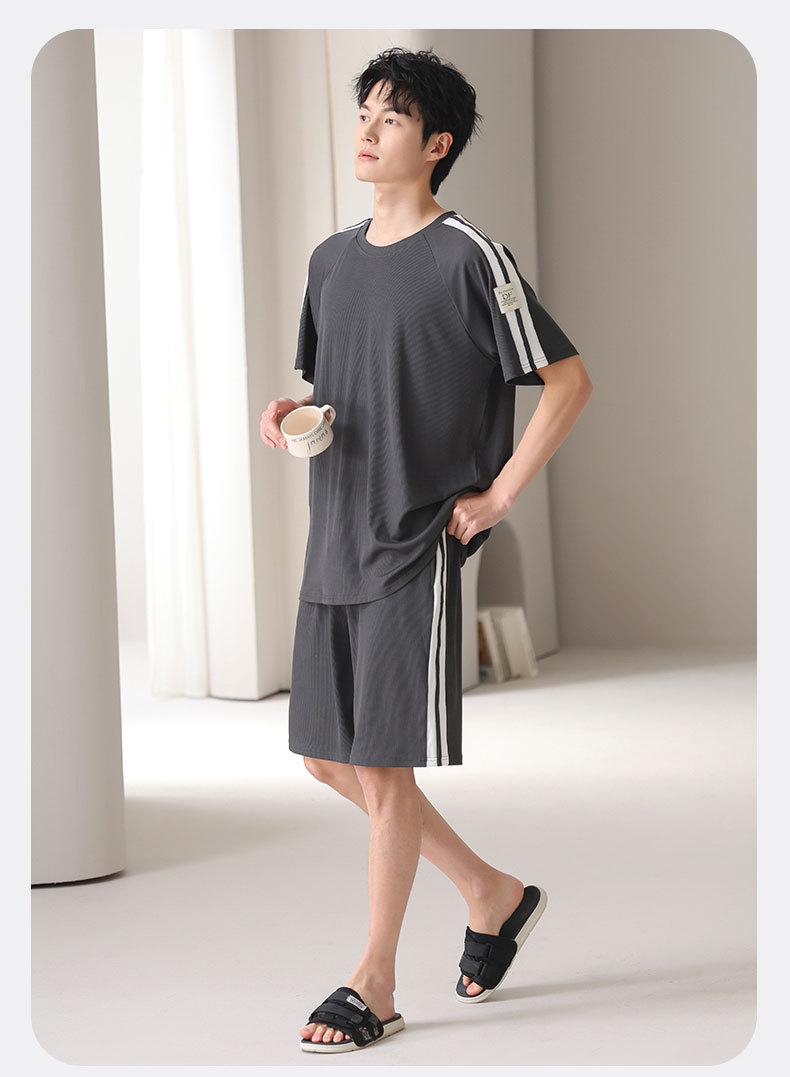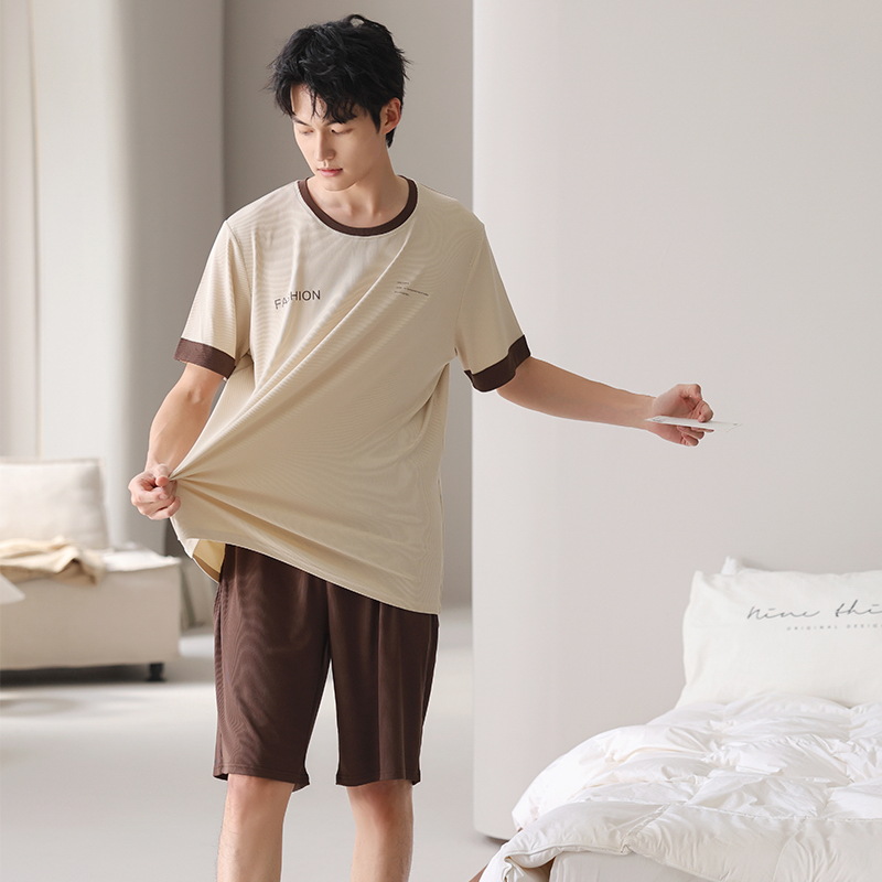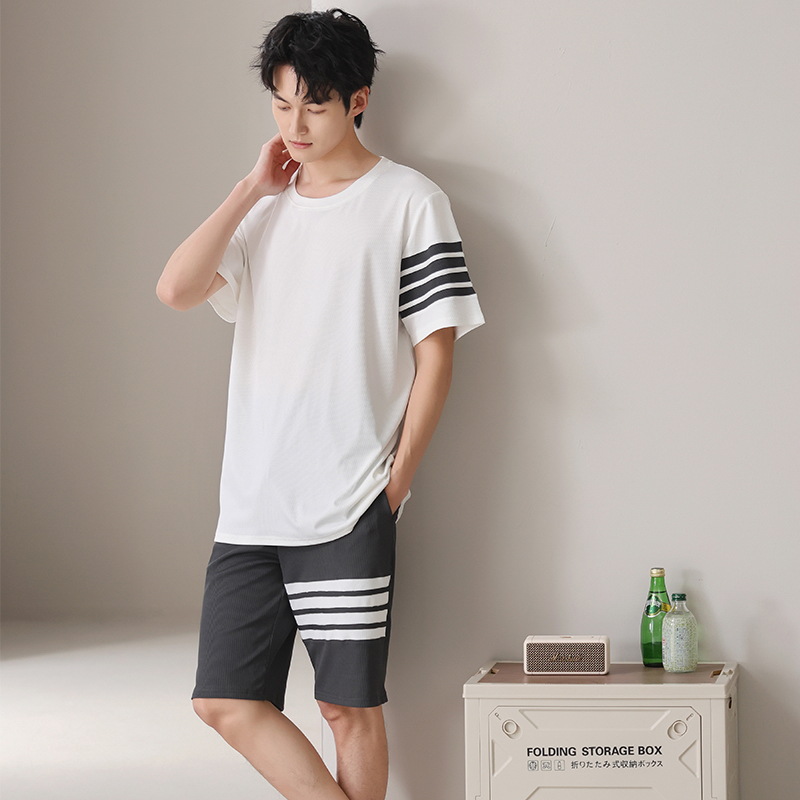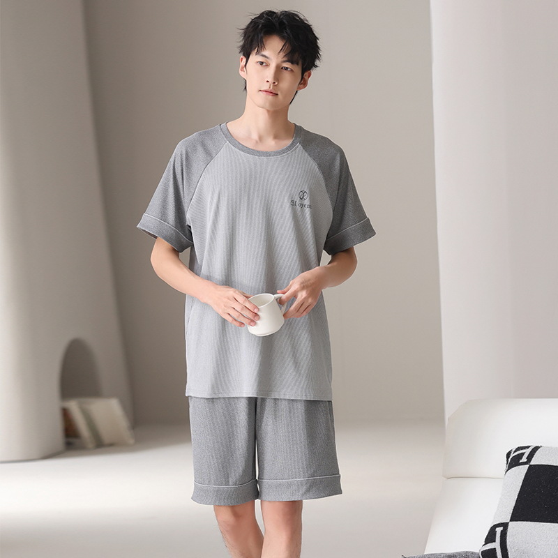 스레드 아이스 실크 파자마 남자 여름 반팔 반바지 홈 의류 남성 캐주얼 tracless 세트 얇은 플러스 사이즈스토어 가기