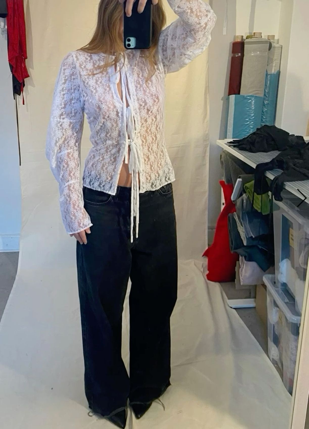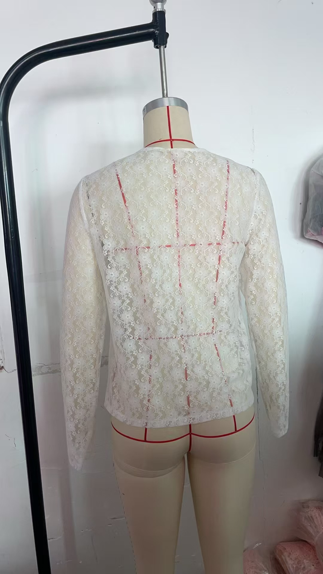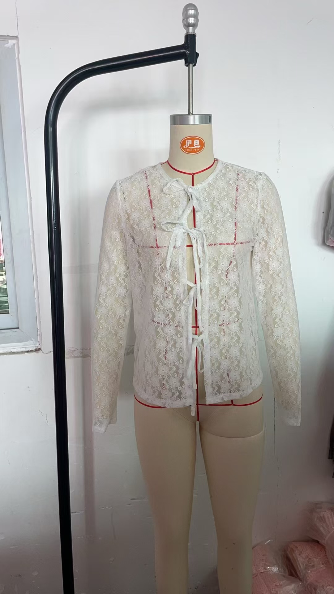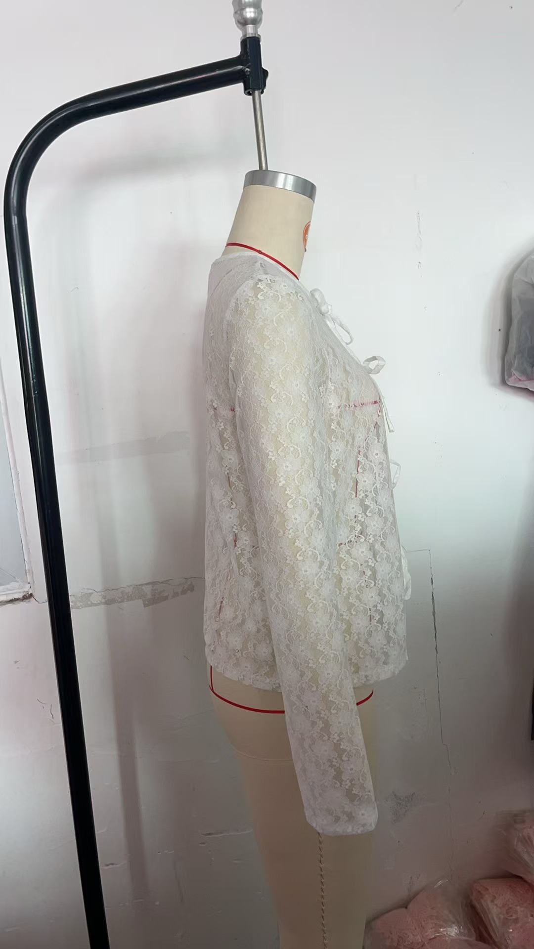 유럽과 미국의 Ins 인터넷 연예인 대외 무역 관점 레이스 솔리드 컬러 서양식 섹시한 긴 소매 셔츠 탑 베이스 셔츠스토어 가기