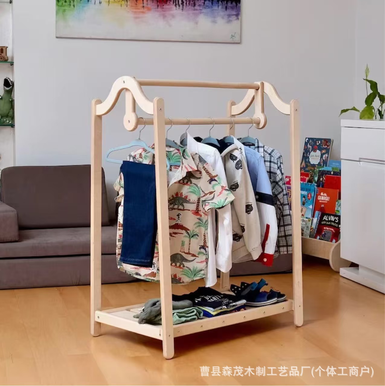 몬테소리 나무 어린이 옷걸이 어린이 옷장 단단한 나무 가르치는 원조 건조 랙 가구 수건 보관 랙 어린이 옷걸이