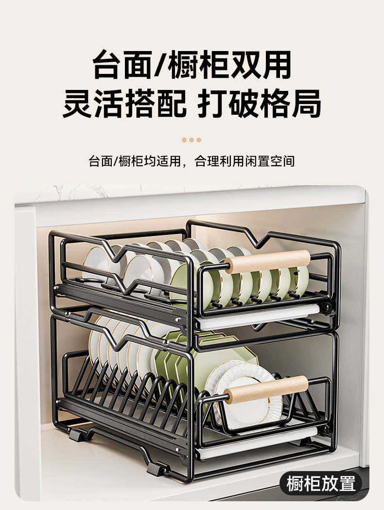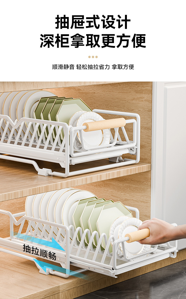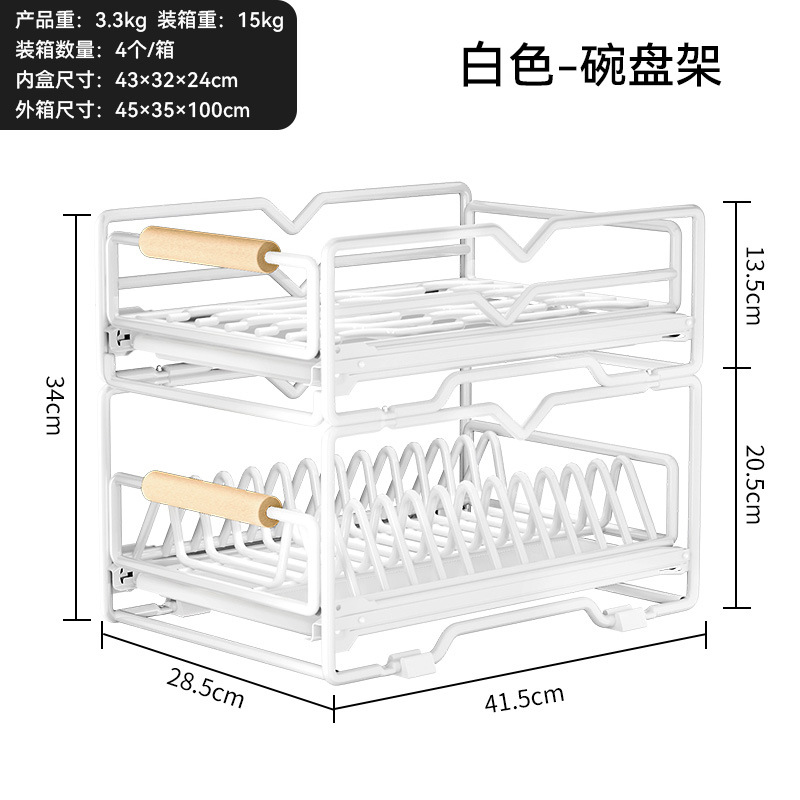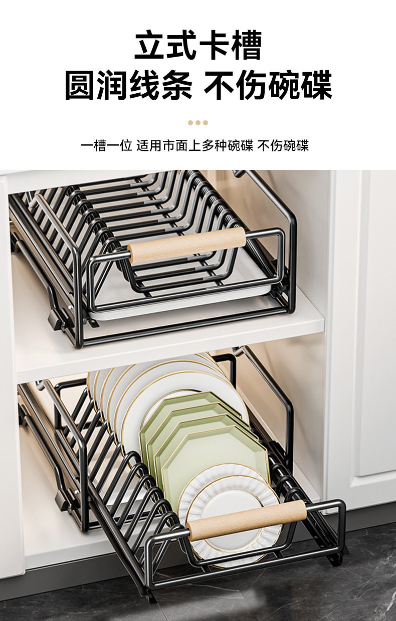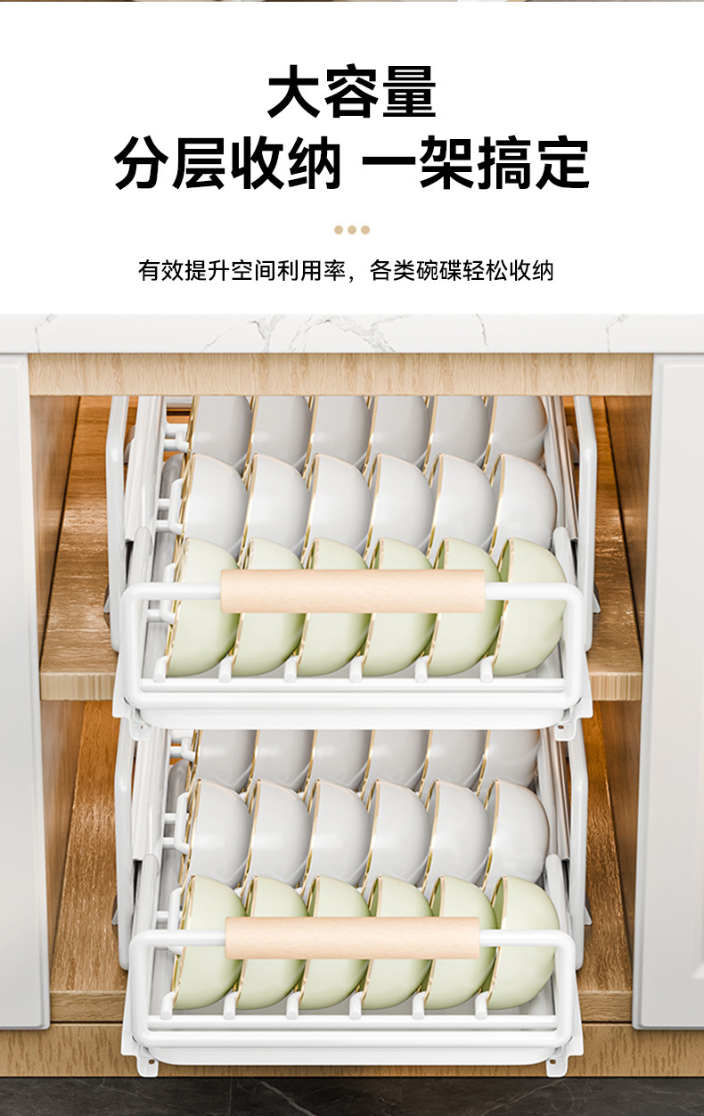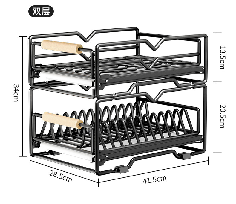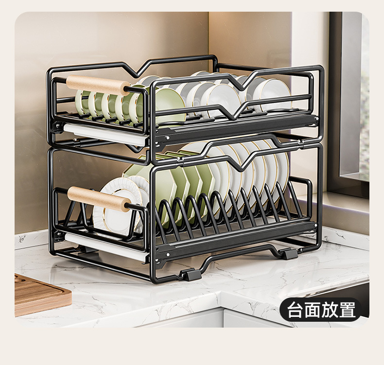 싱크대 아래 캐비닛에 내장된 풀아웃 식기 보관 배수 바구니가 있는 공장 맞춤형 주방 이중층 접시 보관함스토어 가기