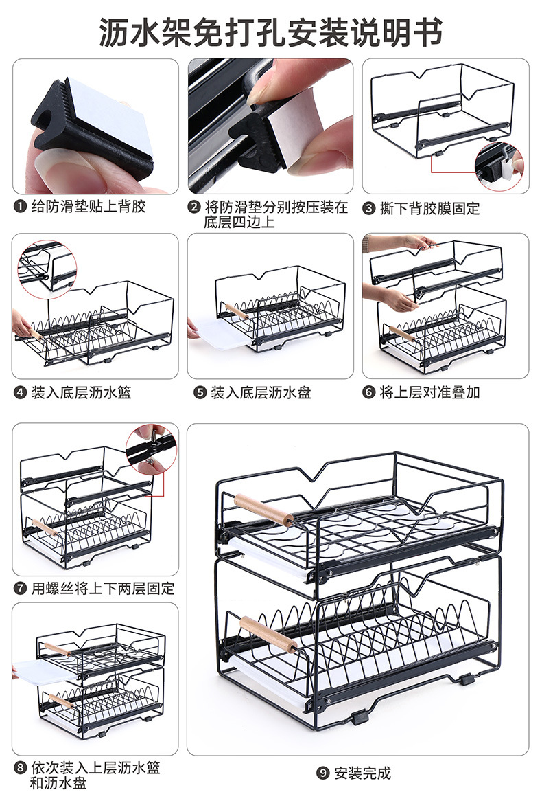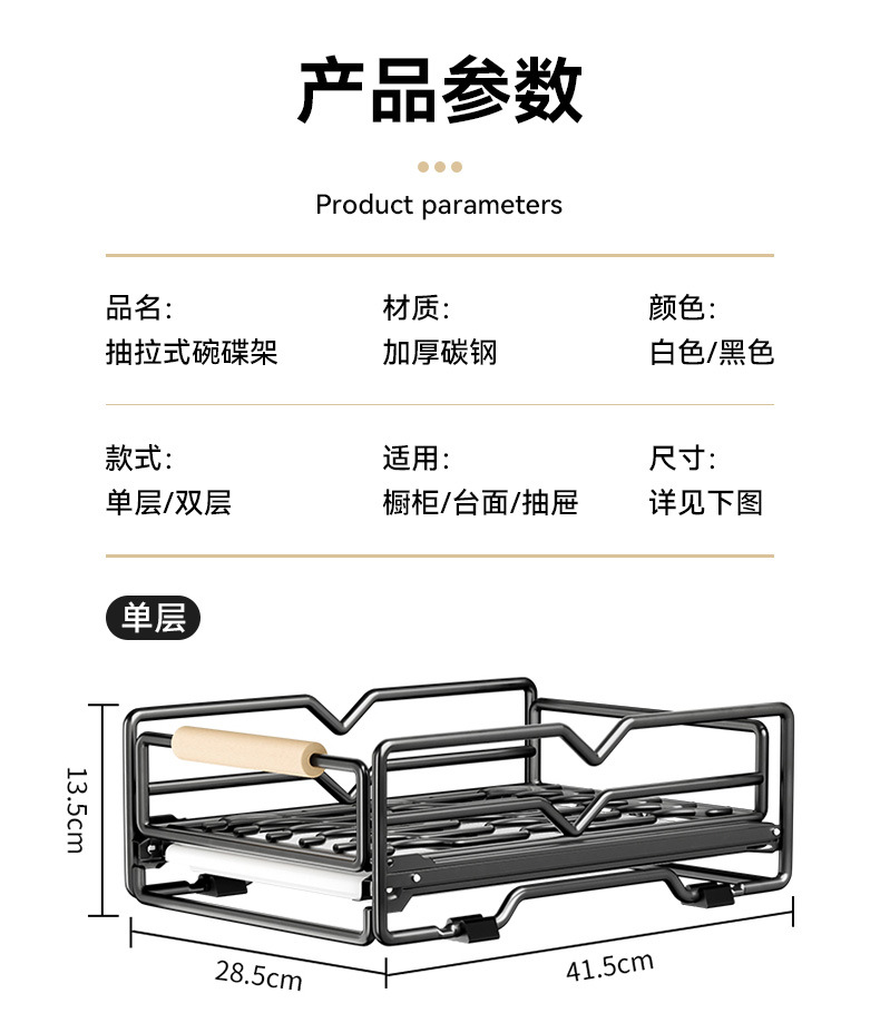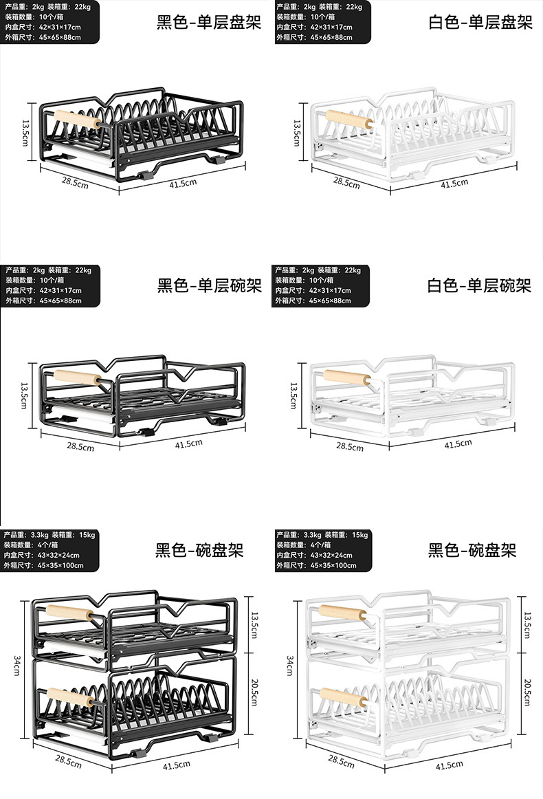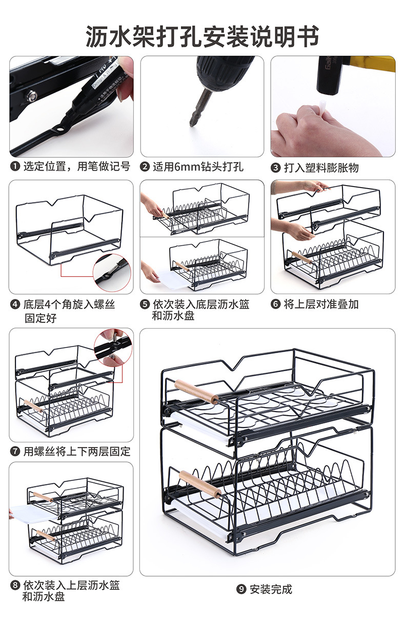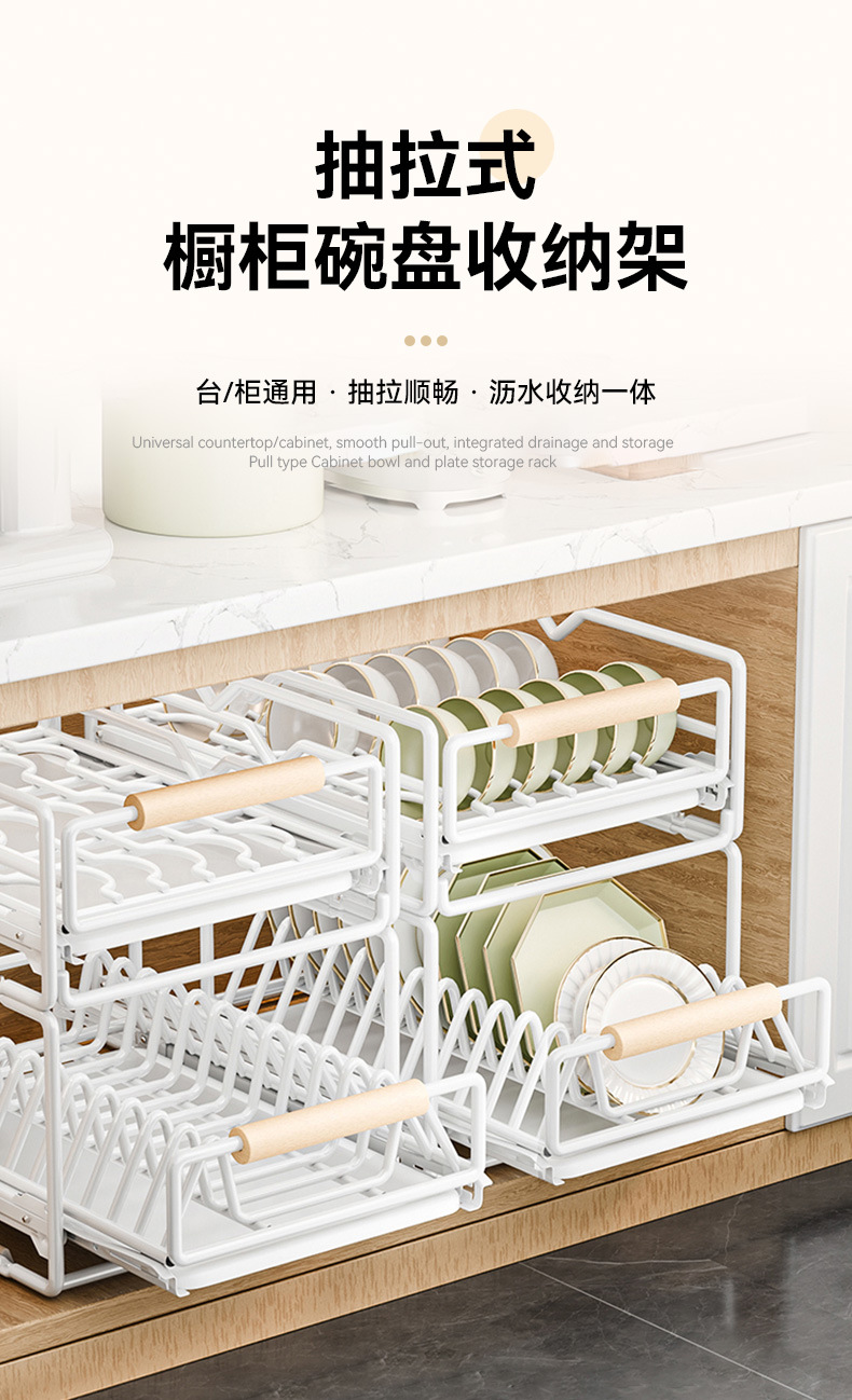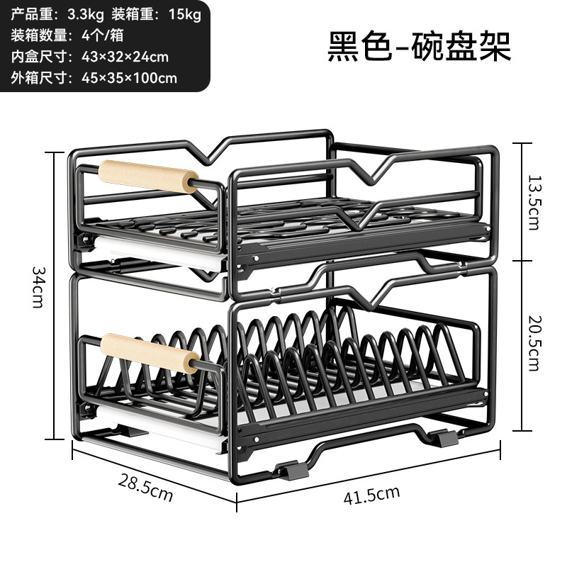 싱크대 아래 캐비닛에 내장된 풀아웃 식기 보관 배수 바구니가 있는 공장 맞춤형 주방 이중층 접시 보관함스토어 가기