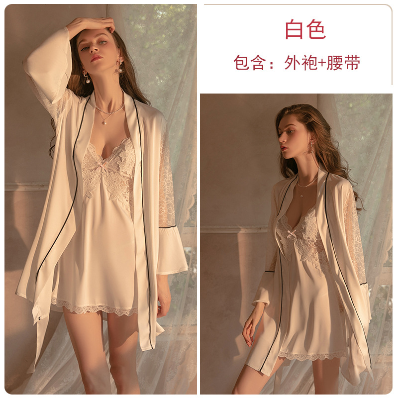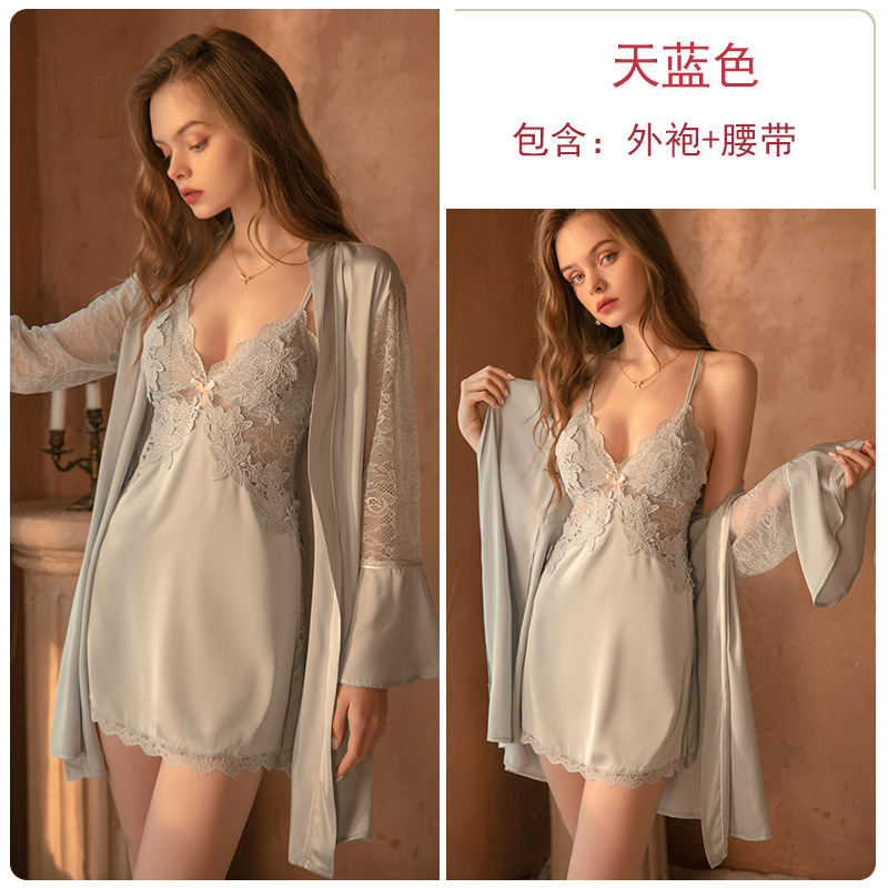 DZ Guiruo 섹시한 크로스 백리스 자수 레이스와 가슴 패드 새틴 나이트 드레스 가운 여자 홈 세트 1170