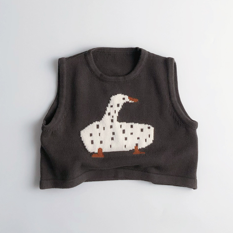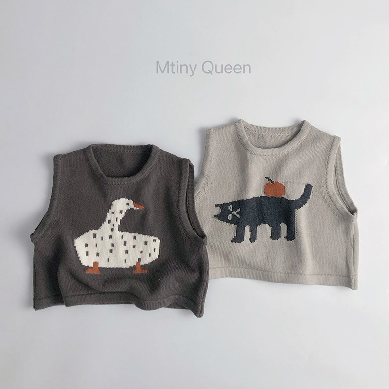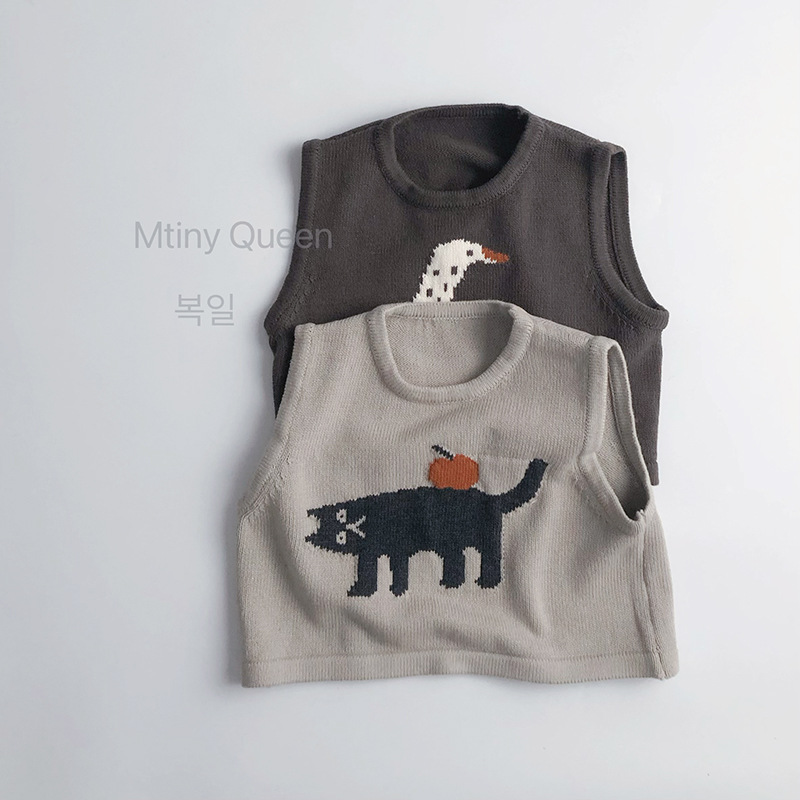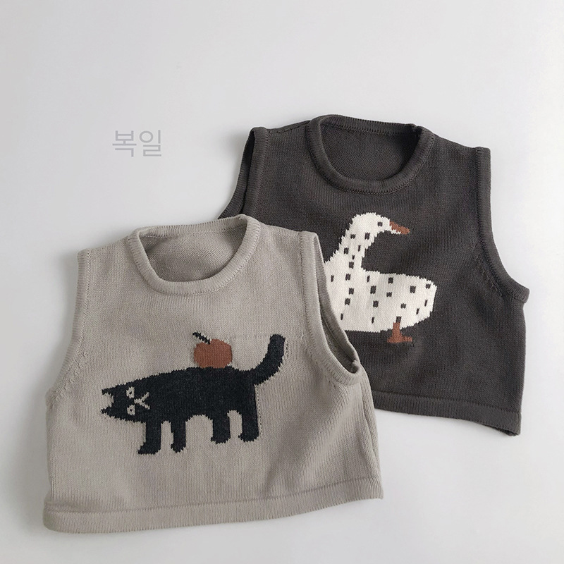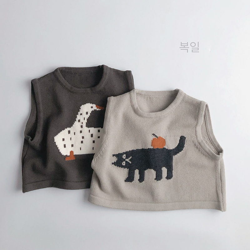 일러스트레이션 ~ 코튼 봄 한국 아동복 남녀 모리 동물 조끼 봄 가을 조끼 민소매 자카드 니트 코튼스토어 가기