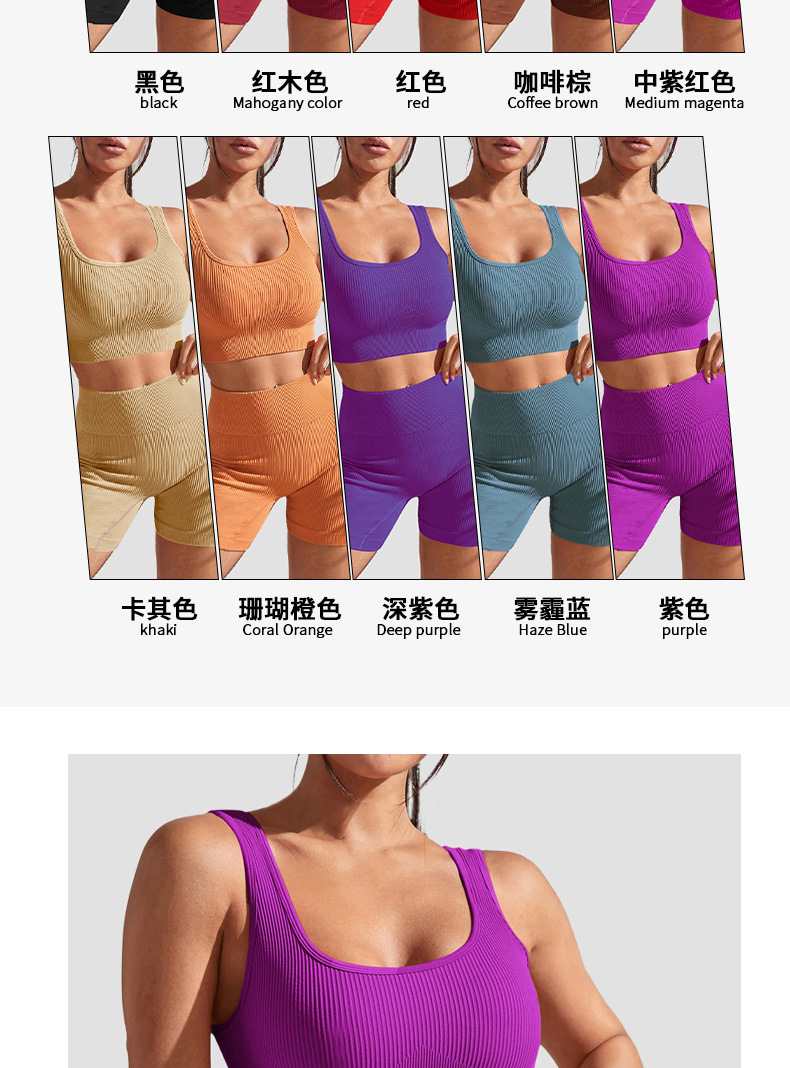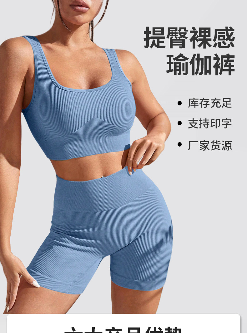 새로운 스포츠웨어 여성 피트니스복 타이트 섹시 반팔 반바지 요가복 가슴 패드 브라 세트 도매스토어 가기