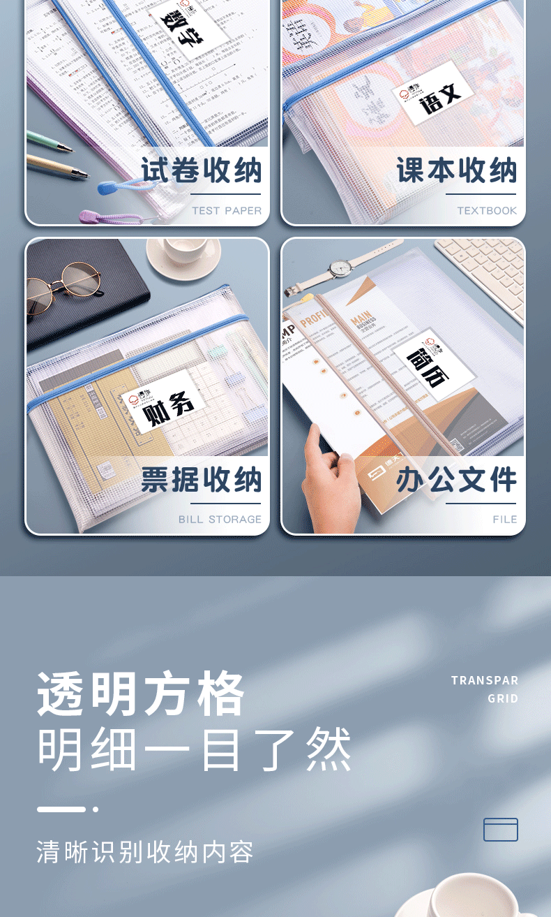 A4 지퍼 파일 가방 투명 파일 저장 가방 핸드백 초등학생을위한 특수 가방 시험 대상 포인트