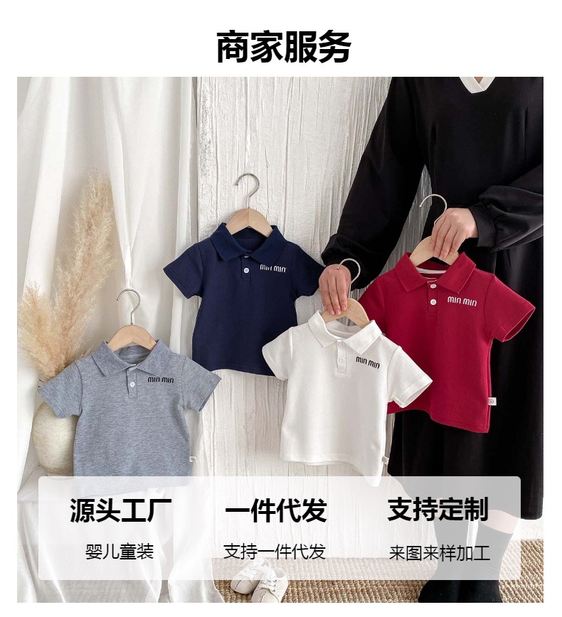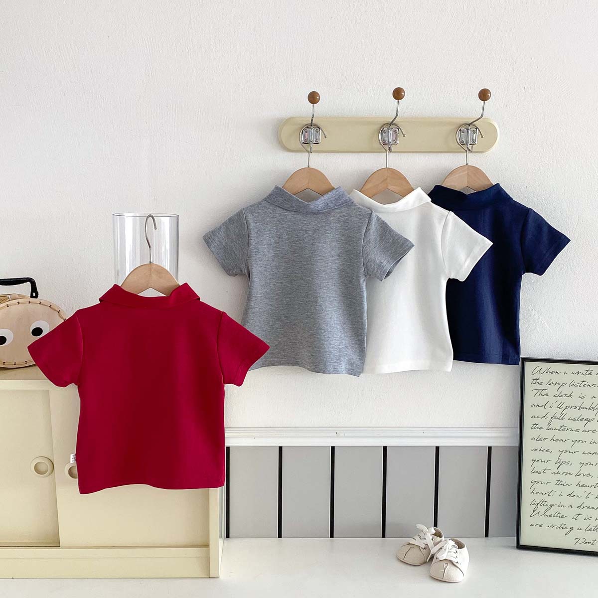 여름 새 어린이 POLO 셔츠 소년의 한국식 얇은 순수 티셔츠 어린이 캐주얼 자수 편지 탑 올매치스토어 가기