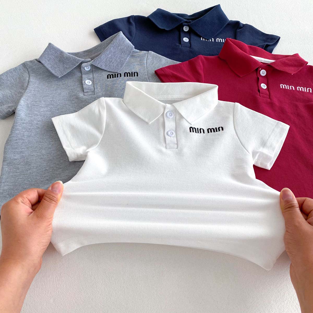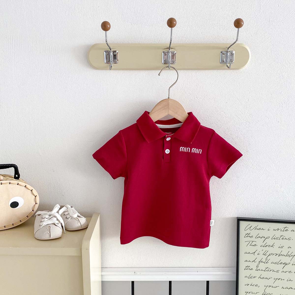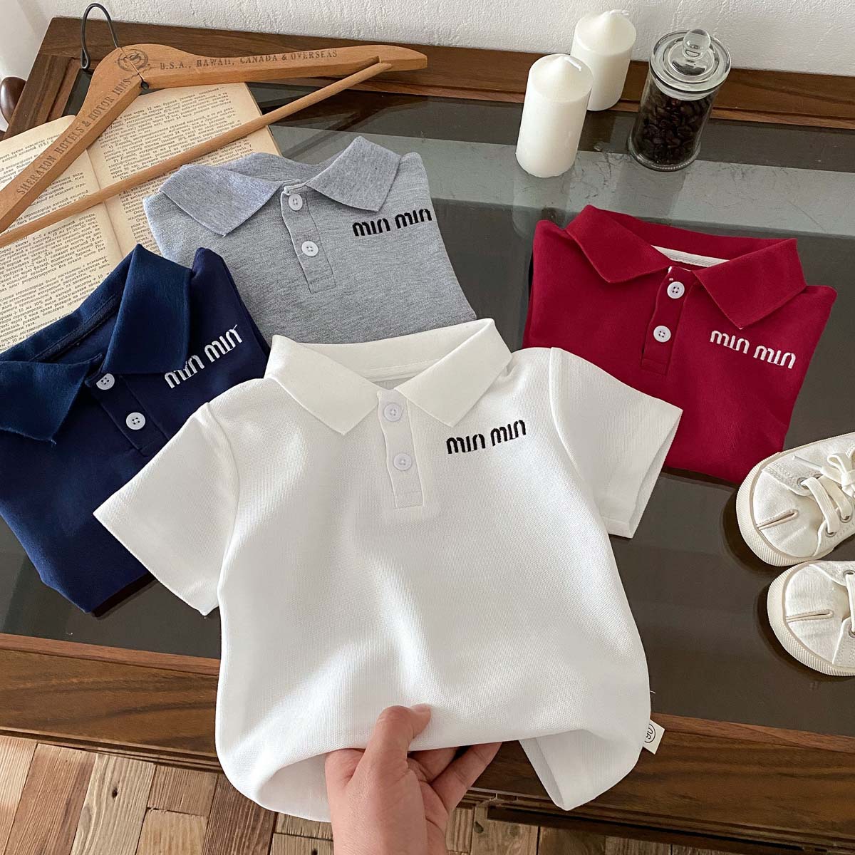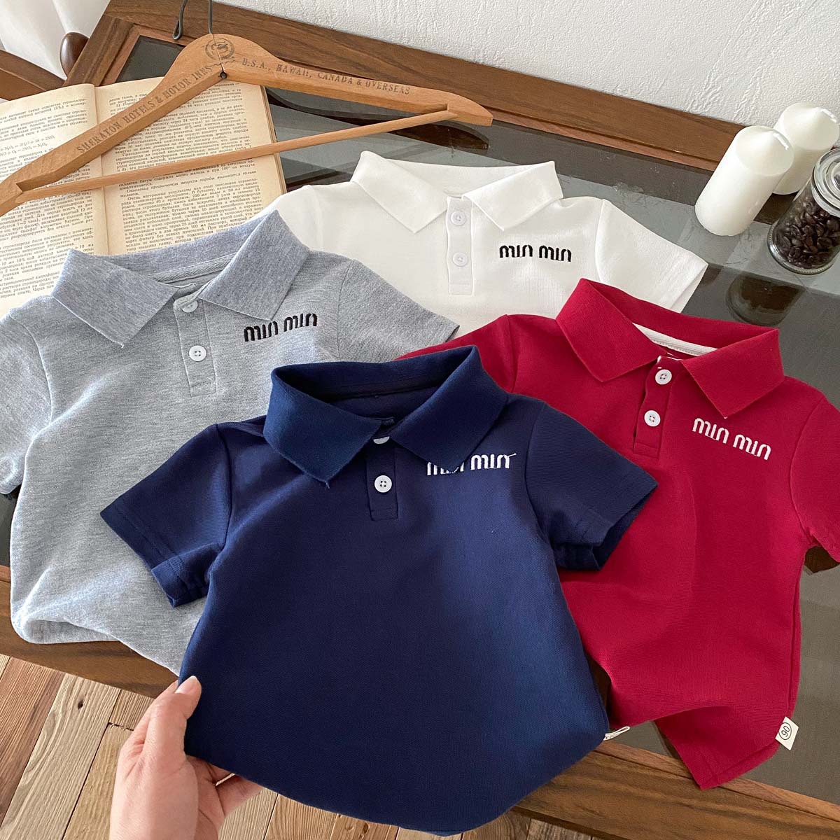 여름 새 어린이 POLO 셔츠 소년의 한국식 얇은 순수 티셔츠 어린이 캐주얼 자수 편지 탑 올매치