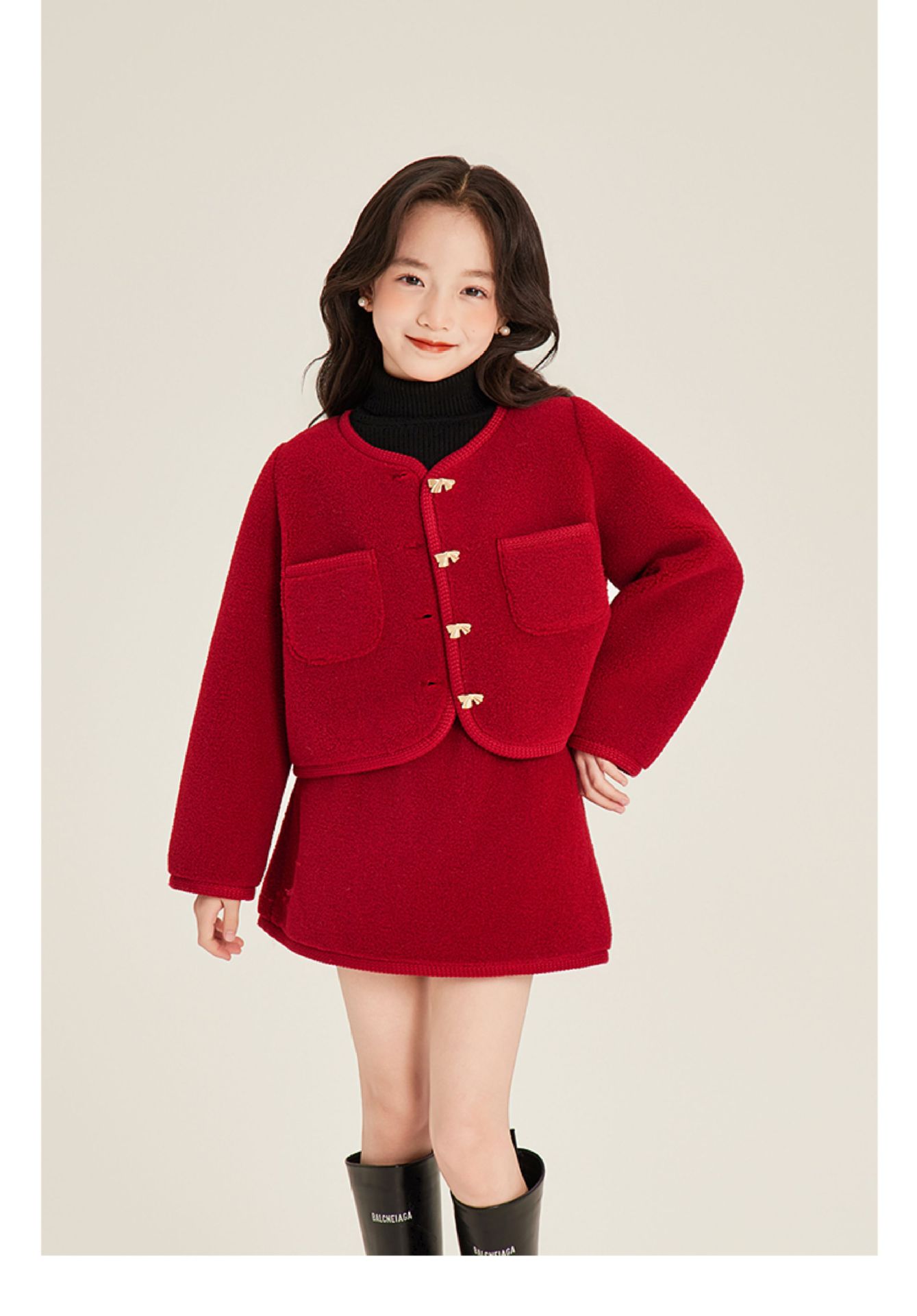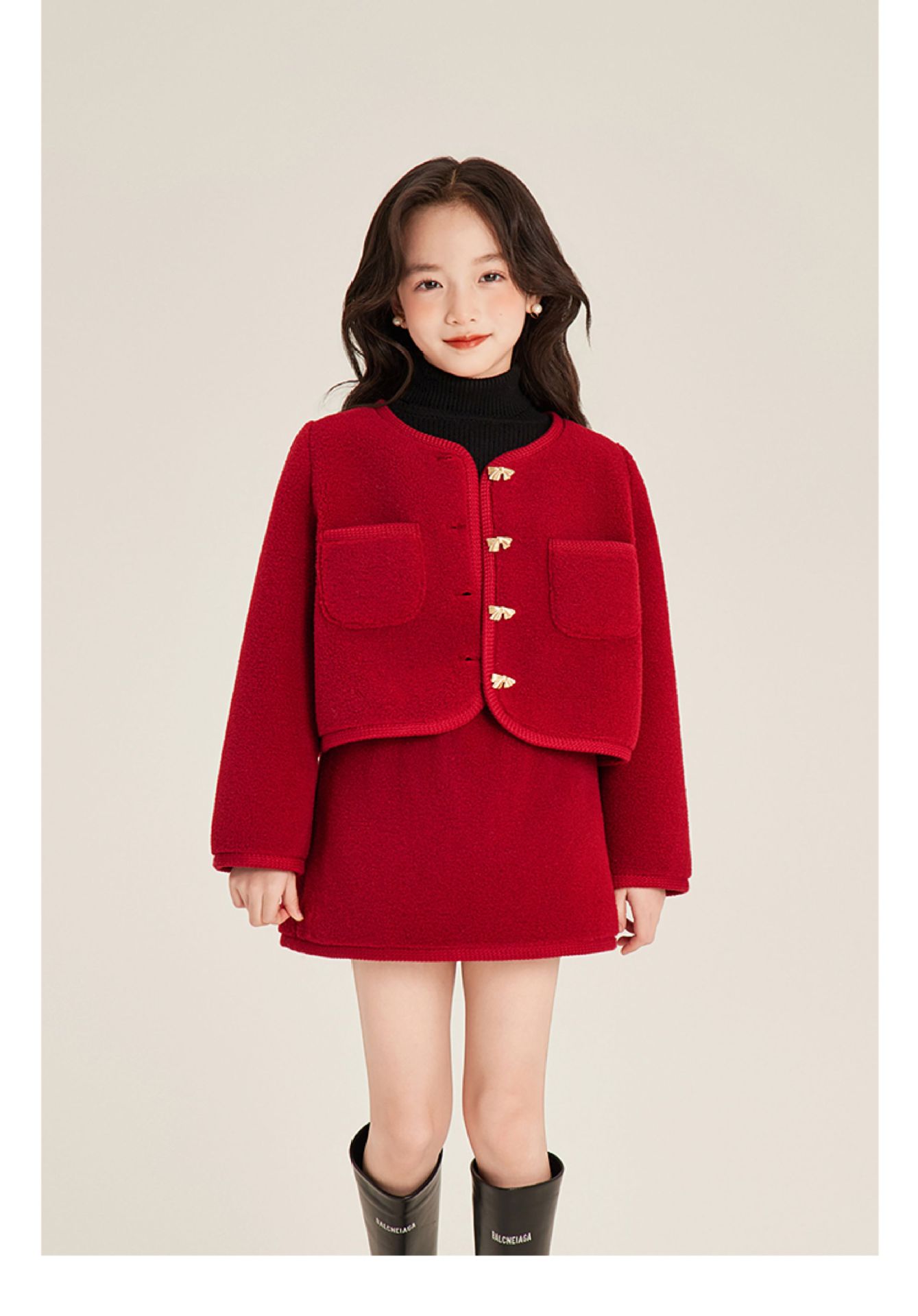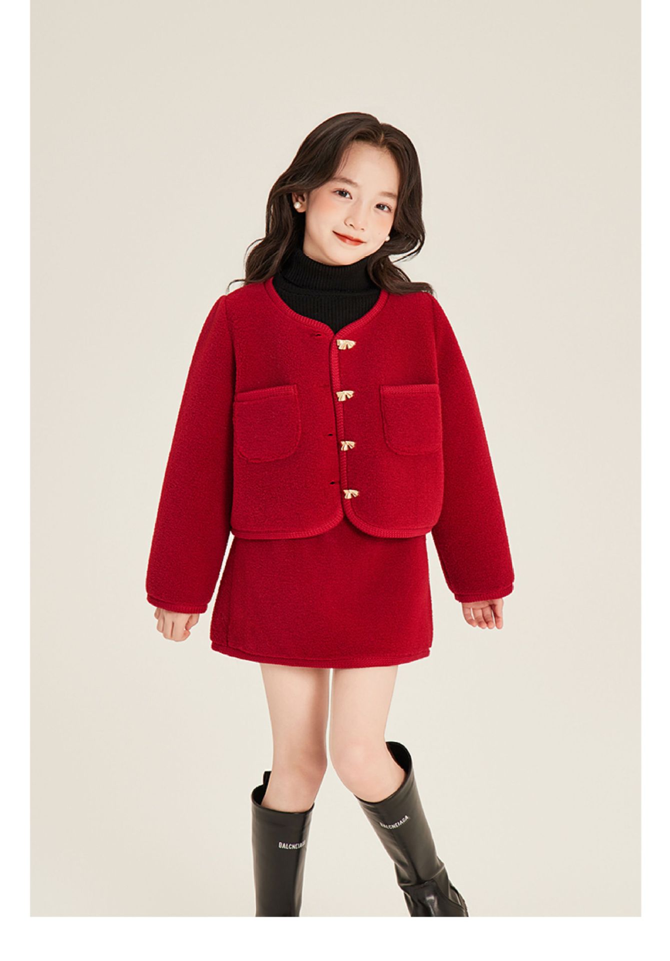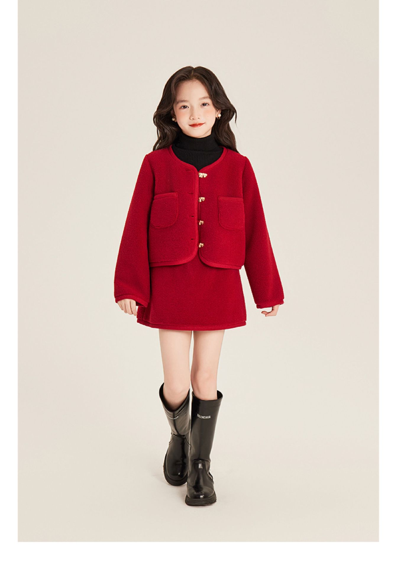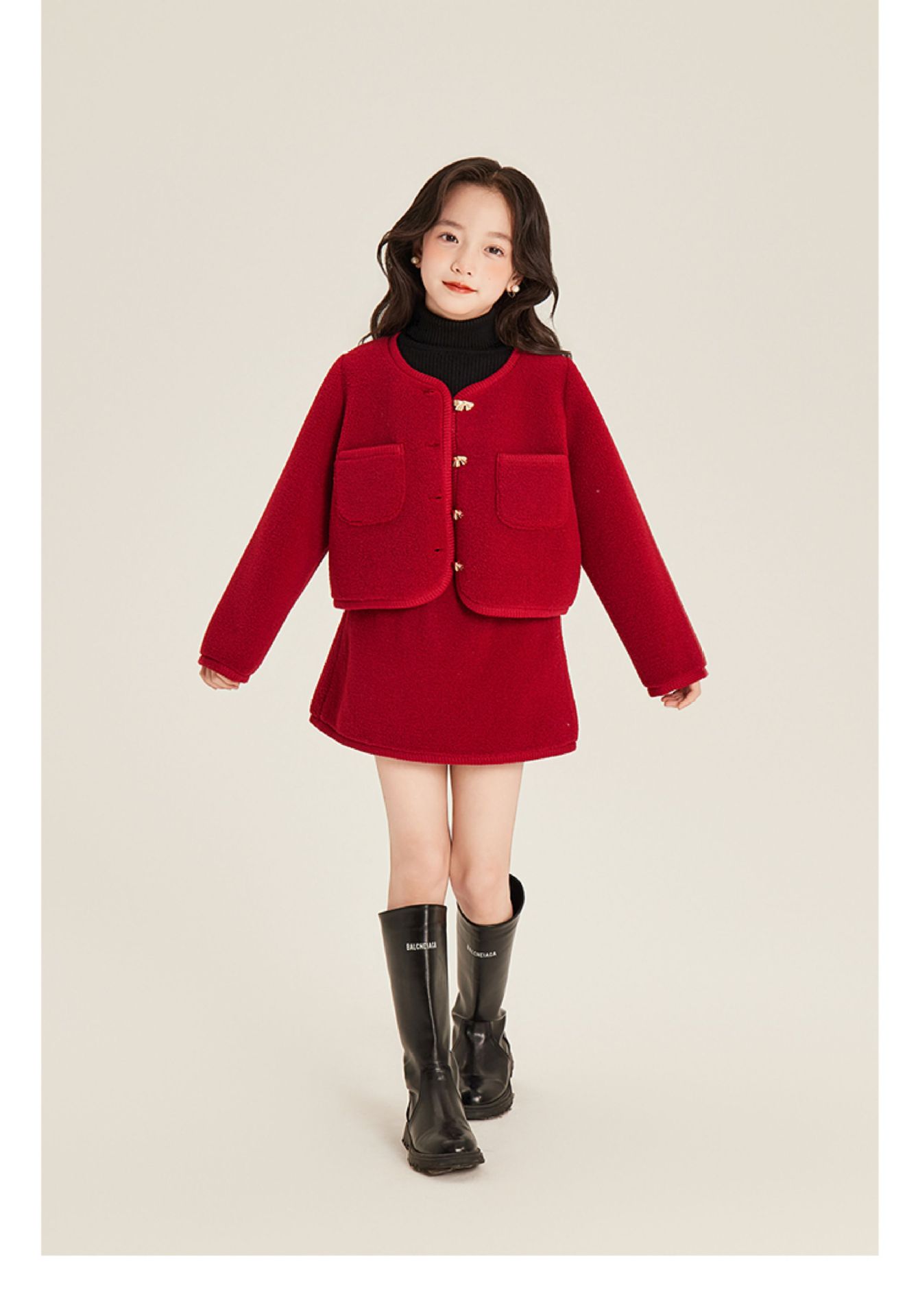 Amybaby 소녀 세트 겨울 2024 새로운 우아한 서양 스타일 유행 원피스 벨벳 레드 재킷 힙합 스커트스토어 가기