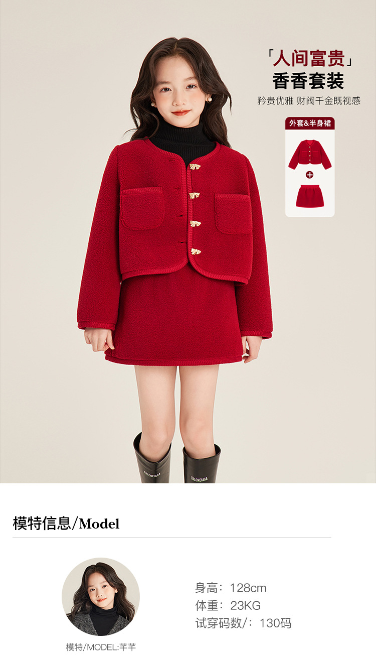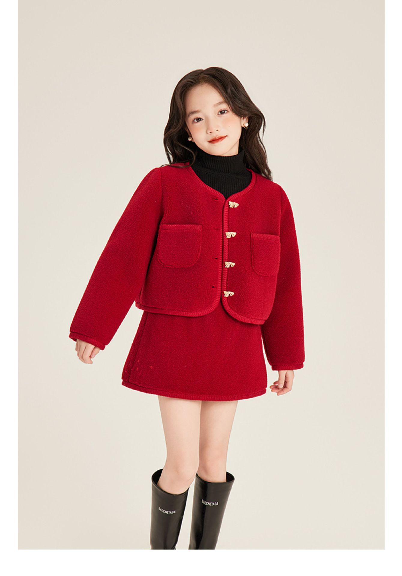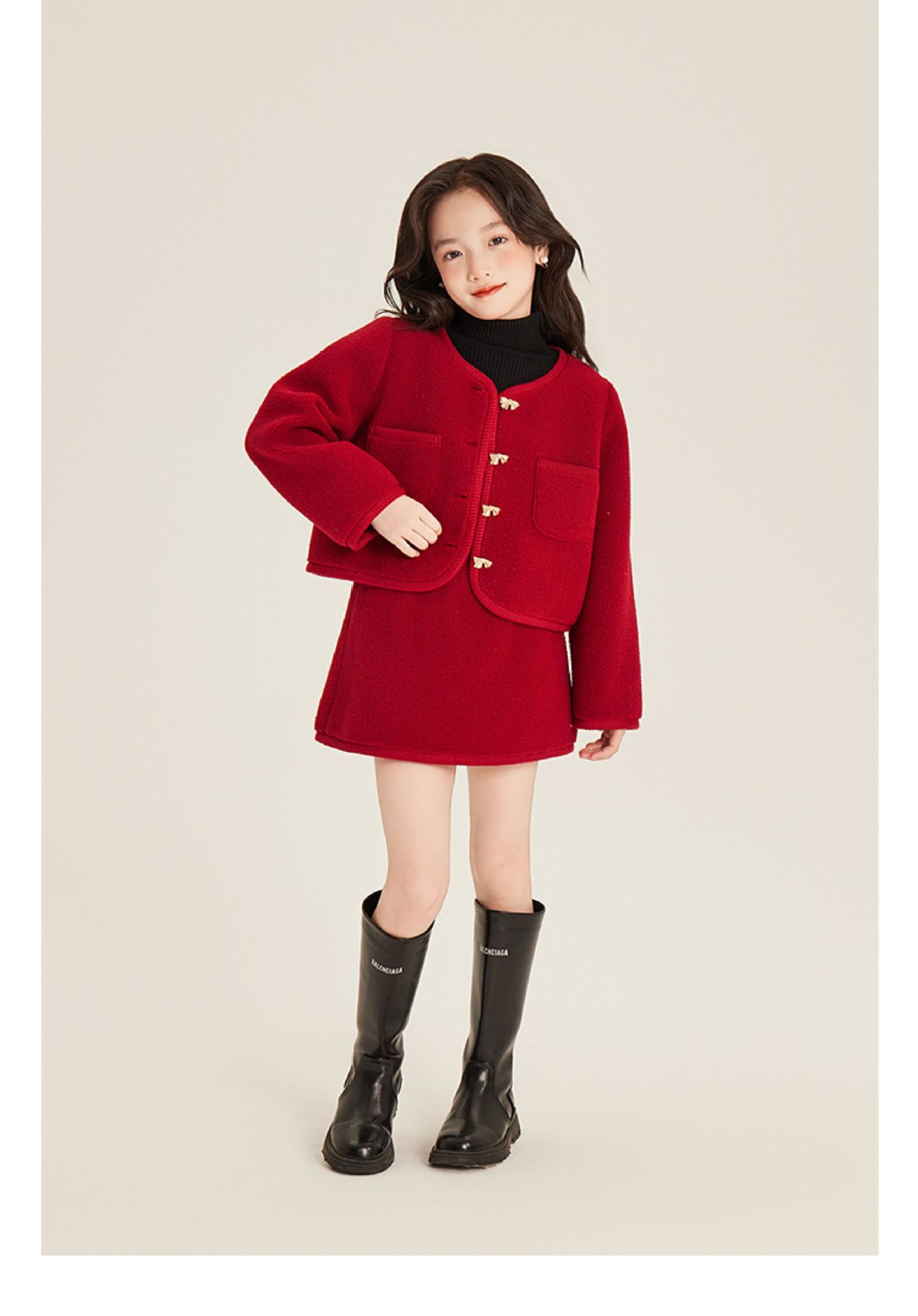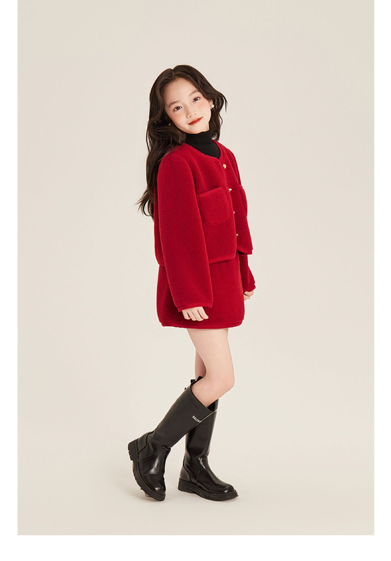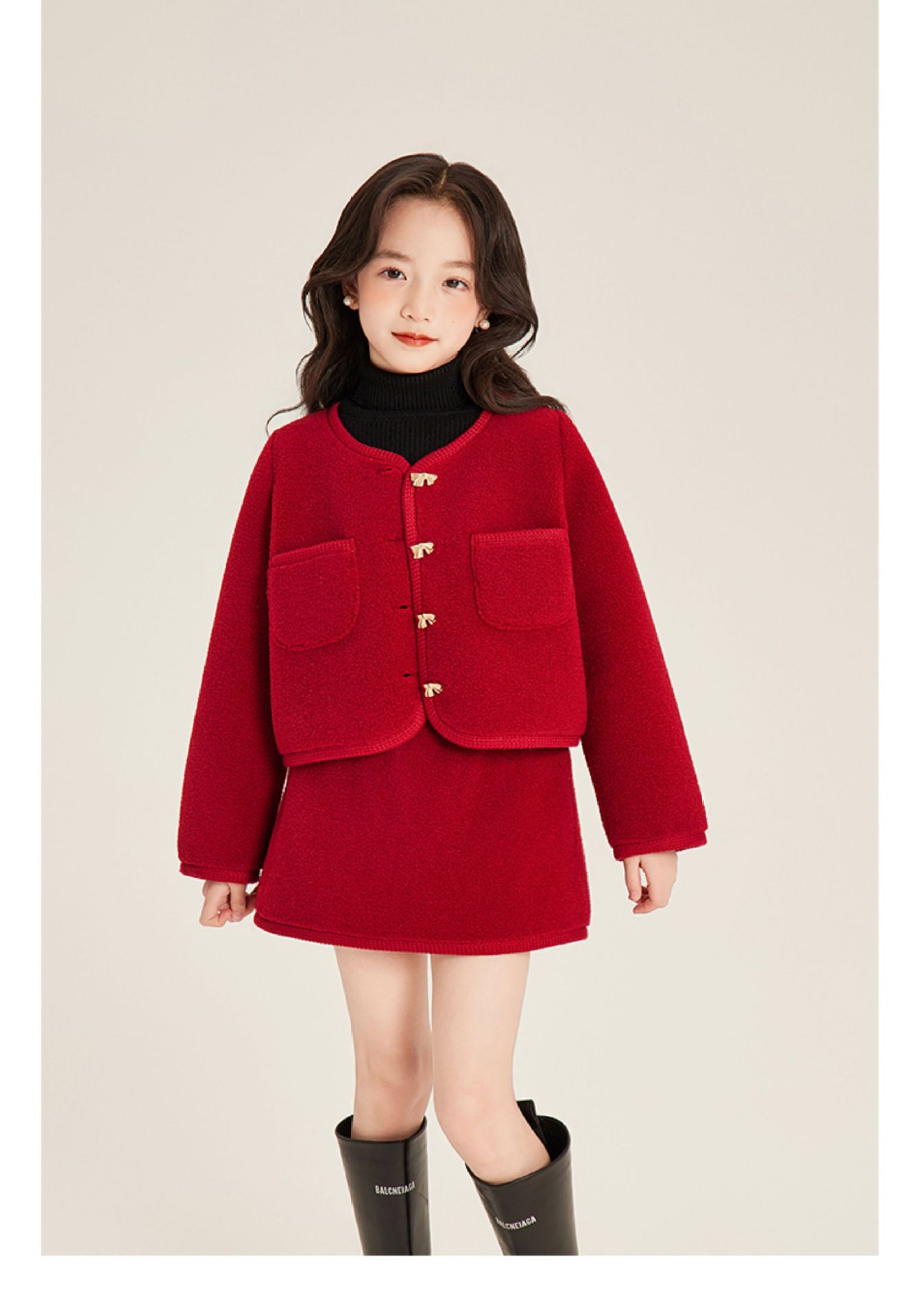Amybaby 소녀 세트 겨울 2024 새로운 우아한 서양 스타일 유행 원피스 벨벳 레드 재킷 힙합 스커트스토어 가기