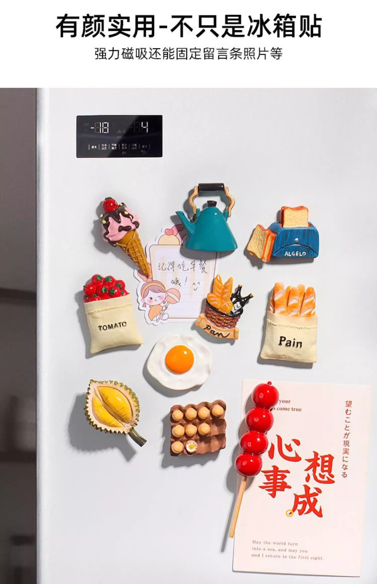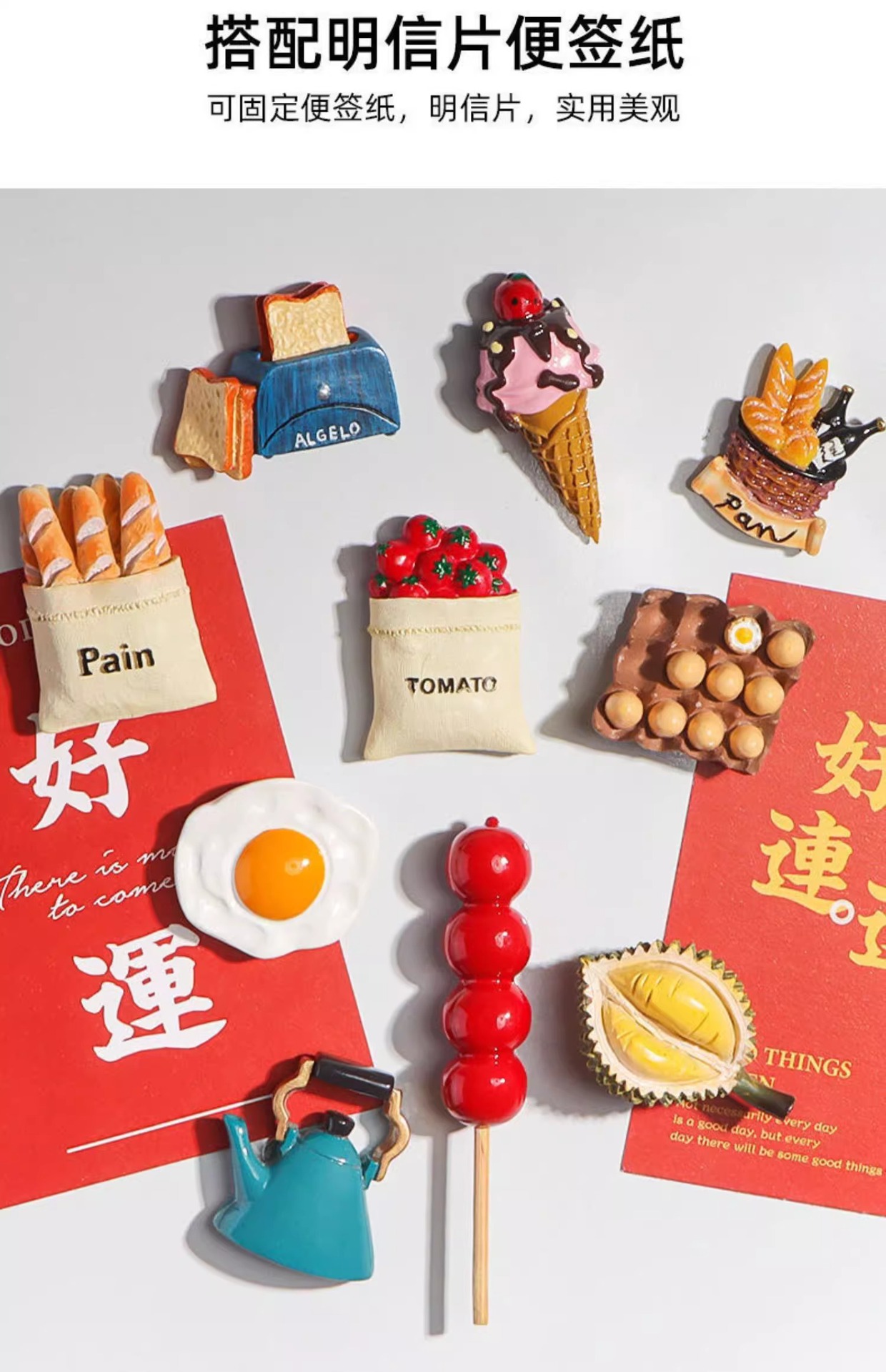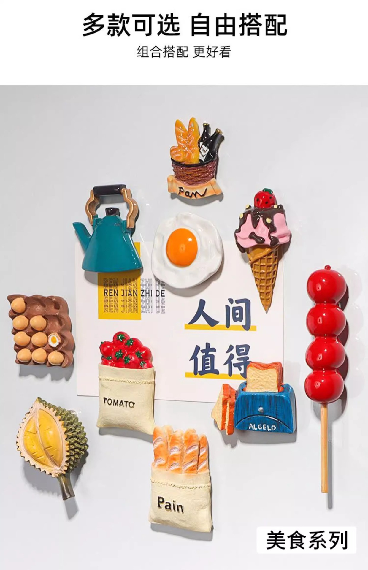 • 오믈렛 + 두리안 + 뜨거운 물 주전자 + 토마토 가방 + 설탕에 절인 산사나무 + 토스터