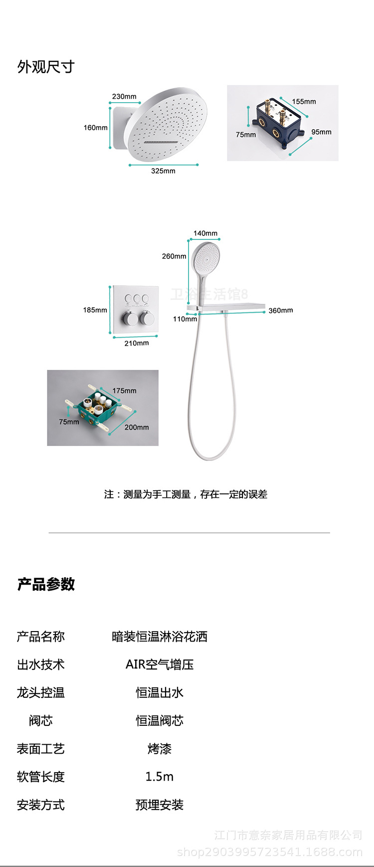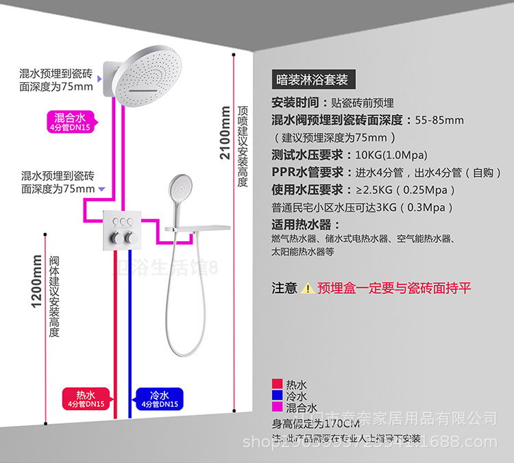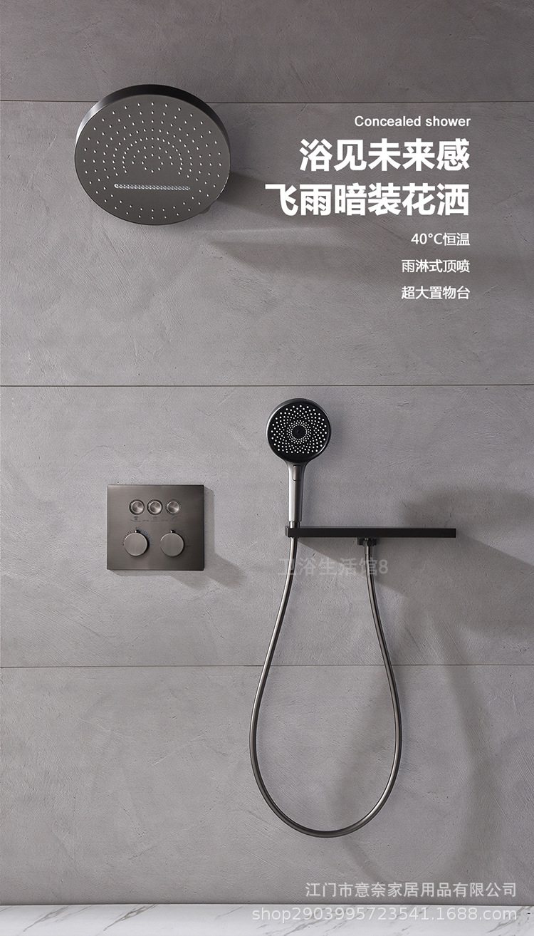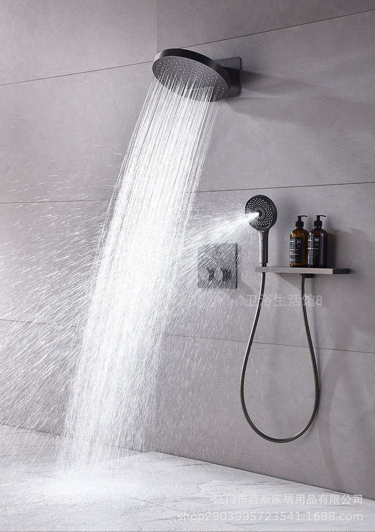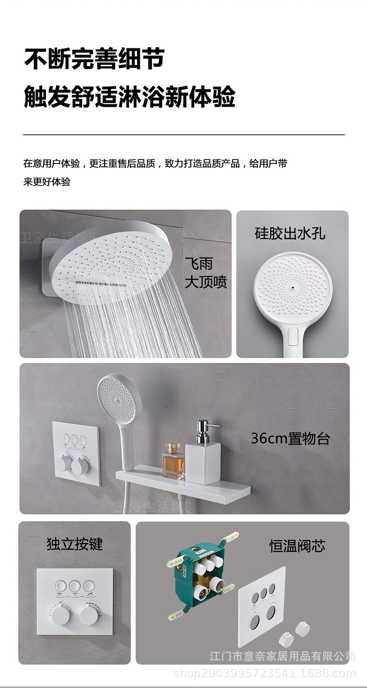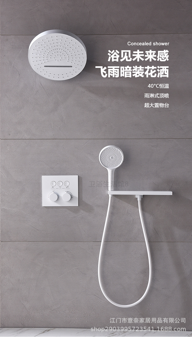 하이 엔드 흰 벽 형 일정한 온도 샤워 모든 구리 내장 숨겨진 내장 내장 비 폭포 샤워 세트스토어 가기